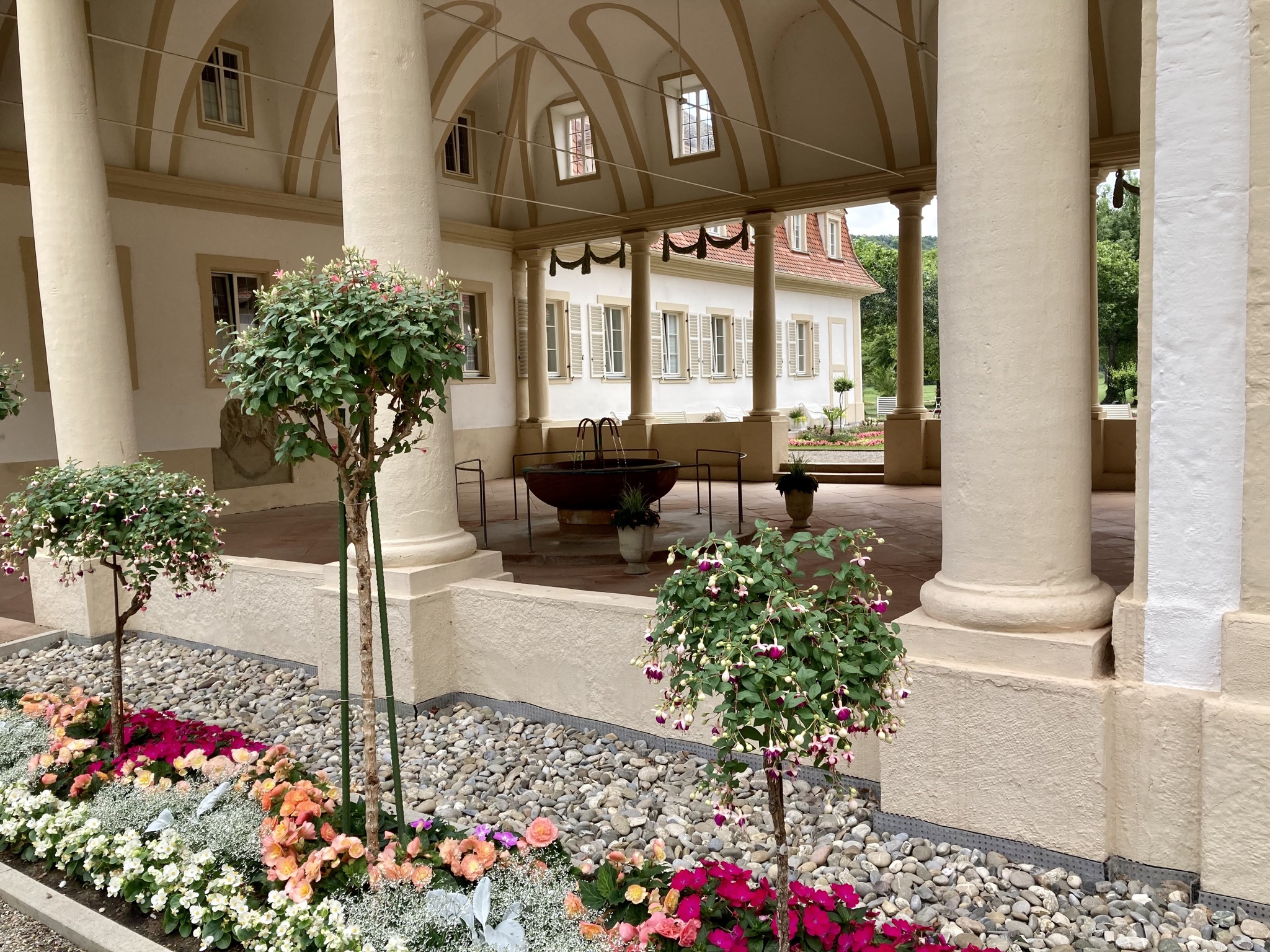 Der idyllische an den Saaleauen gelegene Biedermeier - Kurpark mit erfrischenden Kneippbecken, seiner Heilquelle, Cafe`s, Minigolfanlage und eine Vielzahl von blühenden Pflanzen, Palmen...