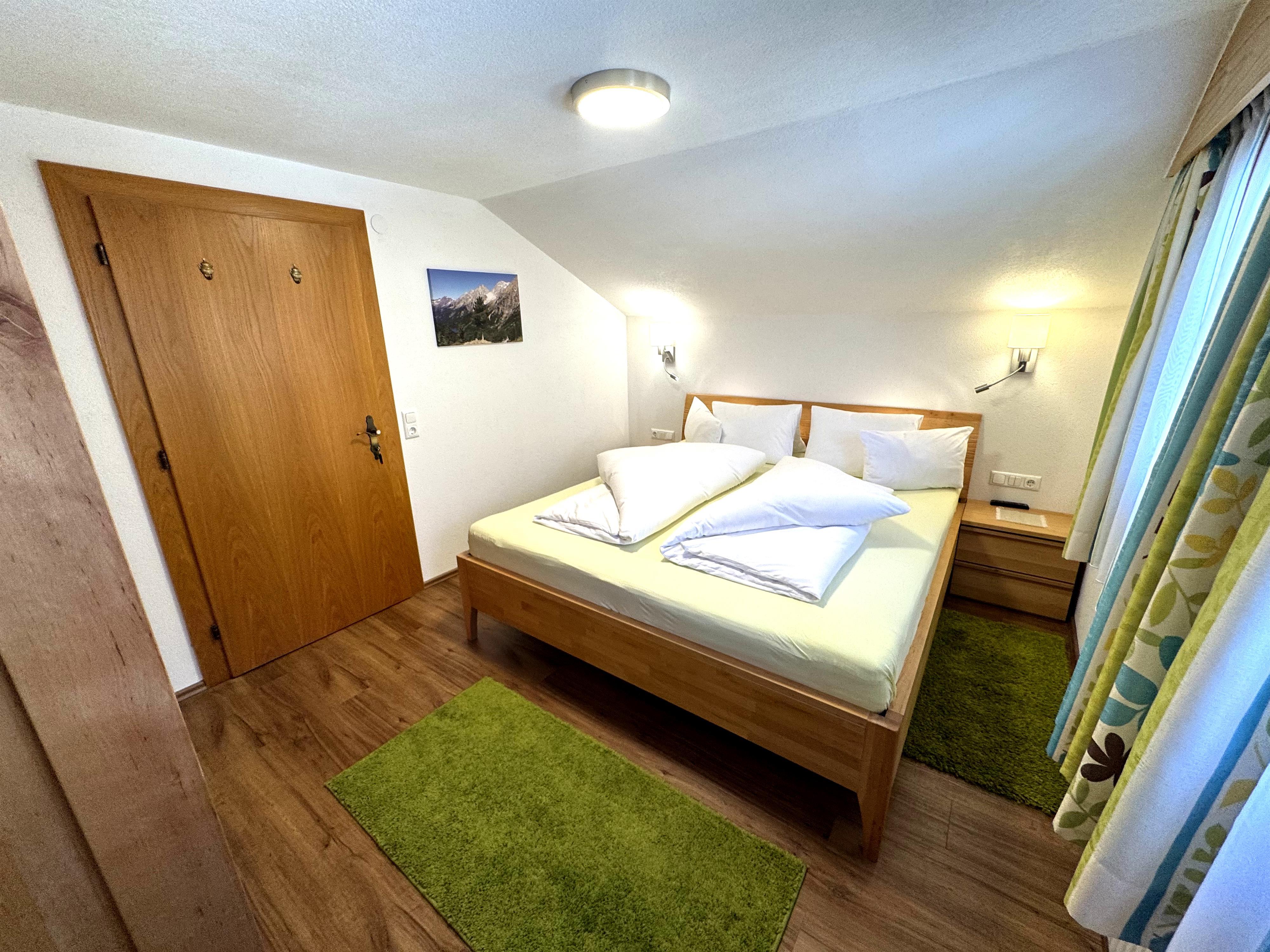 Unser Appartement Gipfelblick (65 m2) verfügt über zwei getrennte Schlafzimmer mit eigenem Dusch- und Waschbereich und umfasst das gesamte 1. Stockwerk mit Ost- Süd- und Westseitigem Balkon.