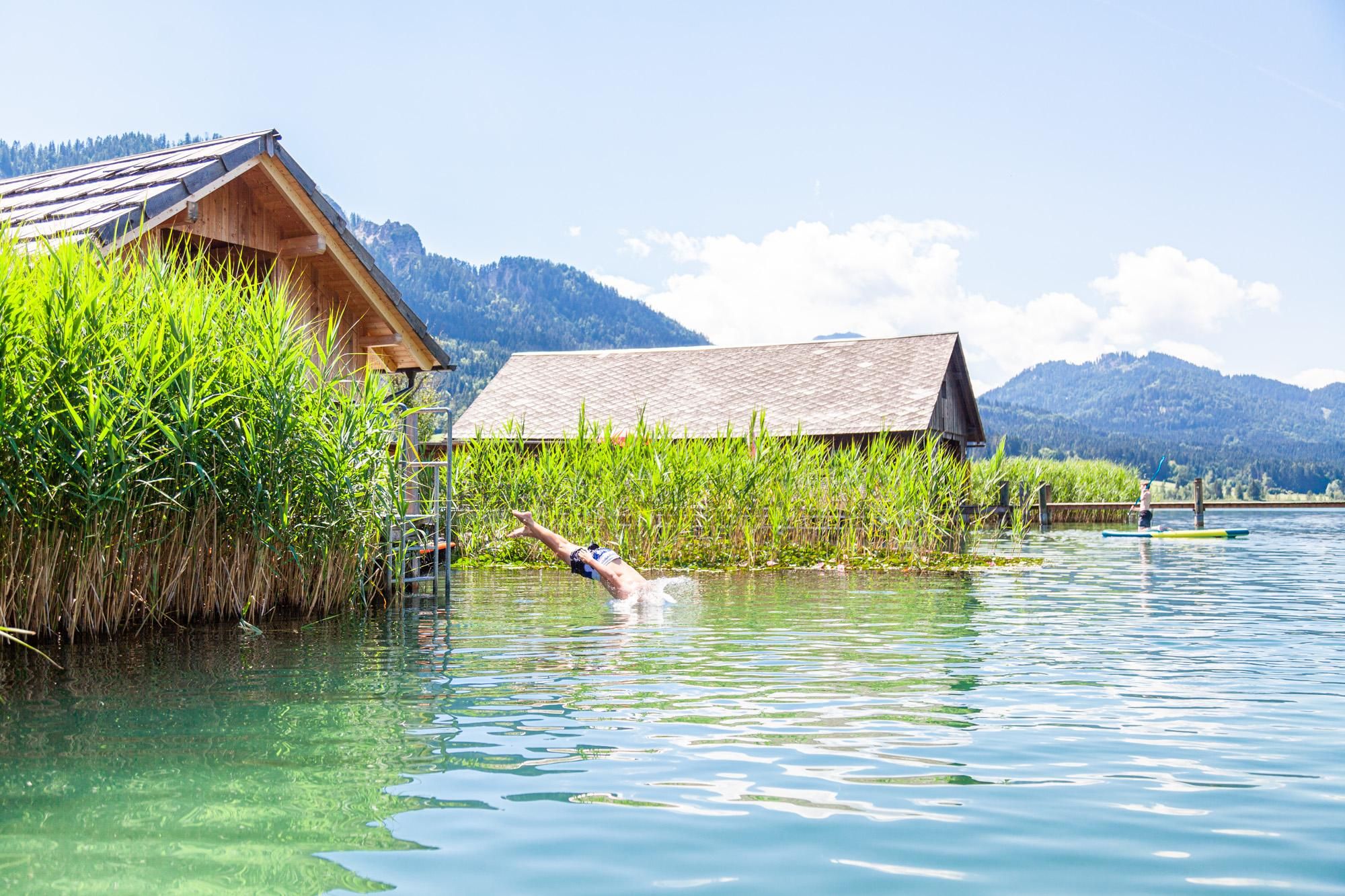 Unsere Häuser liegen direkt am Südufer des Weissensees - sehr ruhig und doch zentral, nur durch die große Liegewiese vom Wasser getrennt. Es wird Ihnen gefallen!