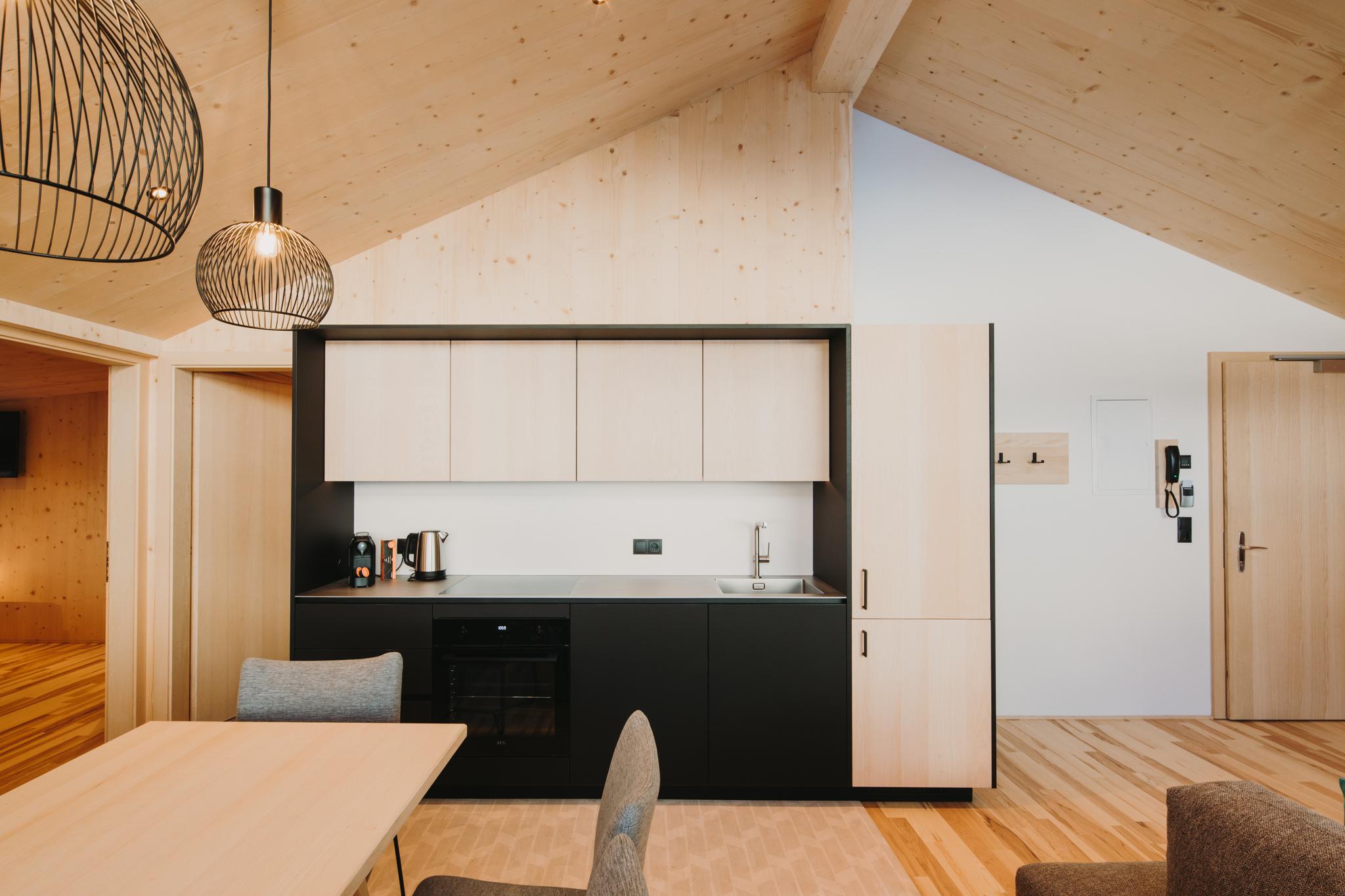In den Sommermonaten 2020 & 2021 hat sich viel getan, denn unser ehemaliges und beliebtes Kleine Alpin***Hotel garni wurde von grundauf saniert. „Vieles können, nichts müssen“ lautet die Devise in unserem neuen Alpin und soll Euch als Gast vermitteln, dass es bei uns ziemlich unkompliziert und easy abläuft. Die neuen Doppel- und Familienstudios, ausgestattet mit Kitchenetten, laden dazu ein, kleine Gerichte zu kochen oder Speisen aus unserem Genusskühlschrank zu erwärmen. Bei der Einrichtung unserer Studios & Suites haben wir viel Wert auf Natürlichkeit sowie den Baustoff Holz gelegt. Gemütlichkeit gepaart mit Funktionalität war uns wichtig, das helle Eschenholz sorgt sogleich für eine freundliche Atmosphäre. Highlight ist unser neuer Wellnessbereich mit einem Indoor-Erlebnispool mit Liegebereich, einem neuen Saunabereich mit finnischer Sauna, Infrarotkabine und Kräuterdampfbad sowie einem Ruheraum und Frischluftbereich.