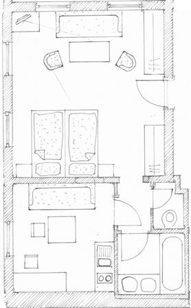 schönes Appartement für 2-3 Personen mit einem geräumigen Doppelzimmer, Schlafcouch und separater Küche, Badezimmer mit komfortabler Bad/Duschkombination und separatem WC, inkl. Endreinigung.