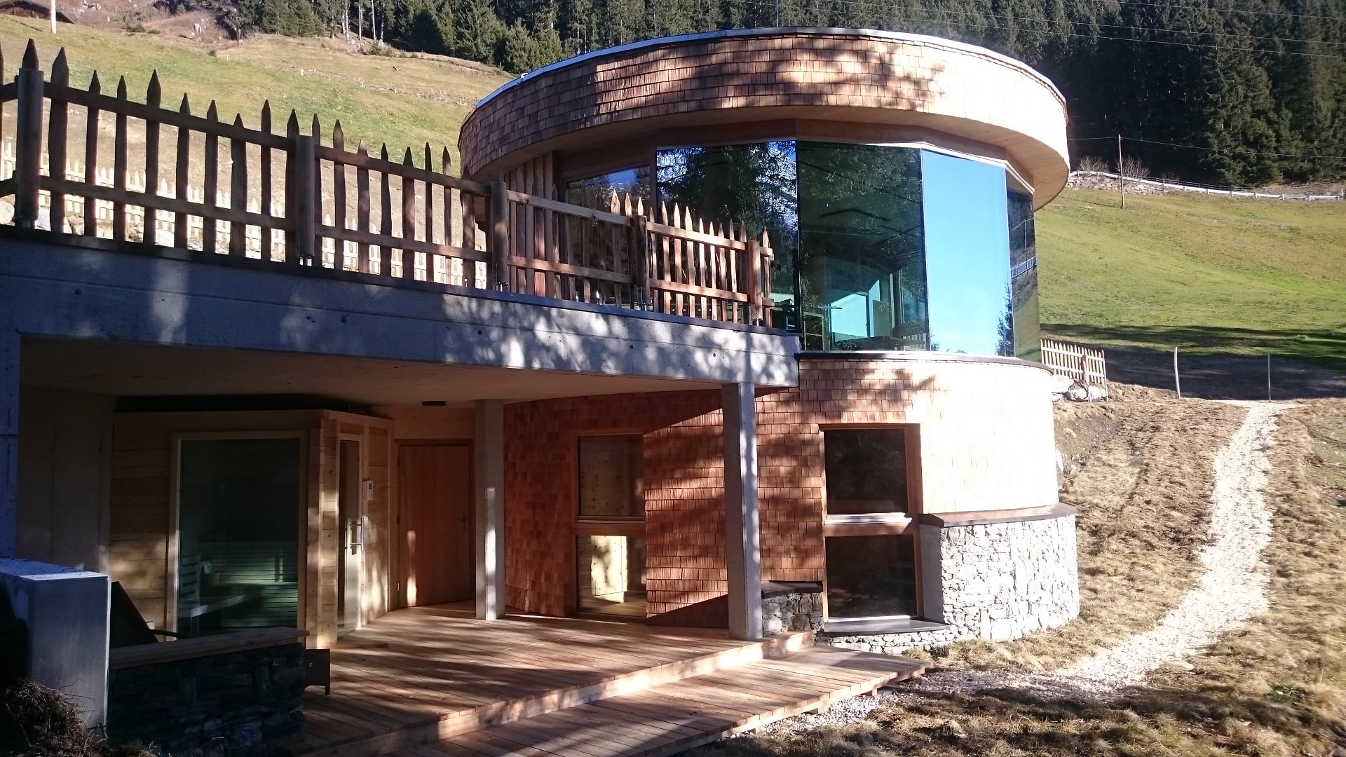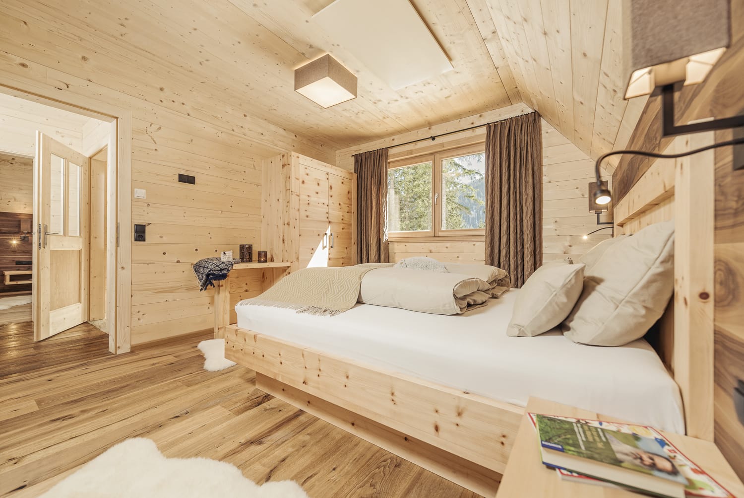 Fünf individuell gestaltete Chalets mit herrlichem Ausblick, bis 85m², Vollholz, Zirbenmöbel, Naturstein, offener Wohn- und Essbereich, komplette Küche, getrennte Schlafräume, Bad, separates WC, Kamin, Weinkühler, Sauna, Terrassen und Vitalfrühstück inklusive.
