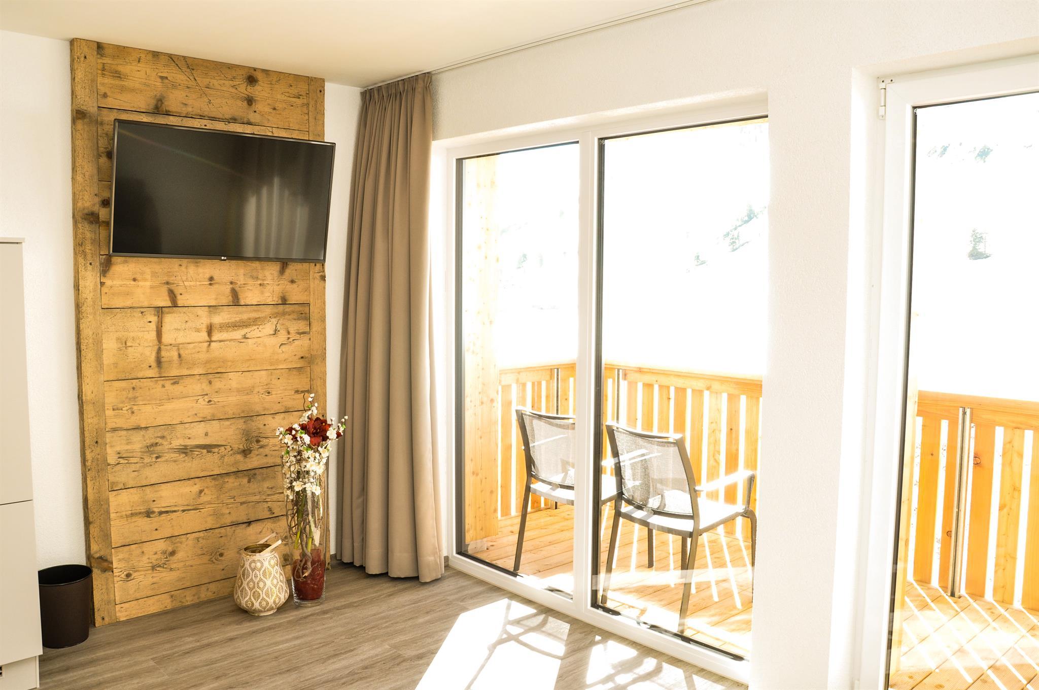 Entspannen Sie sich in unserem Panorama Wellnessbereich. Finnische Sauna und ein herrlicher Ausblick aus der verglasten Sauna in die Bergwelt. Abkühlung ermöglicht der direkte Ausgang auf die Sonnenterrasse oder unsere Erlebnisduschen.