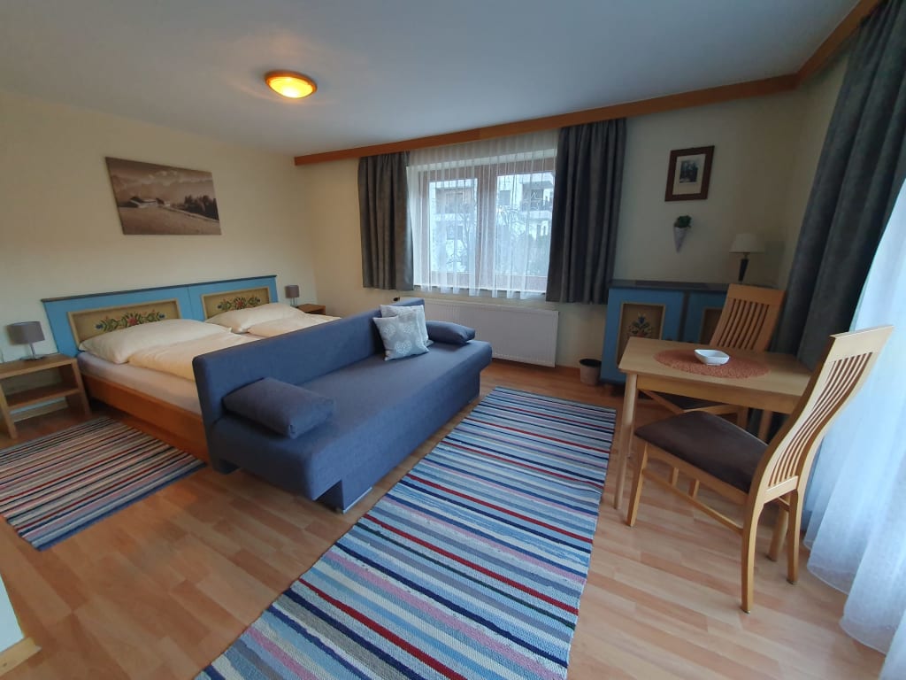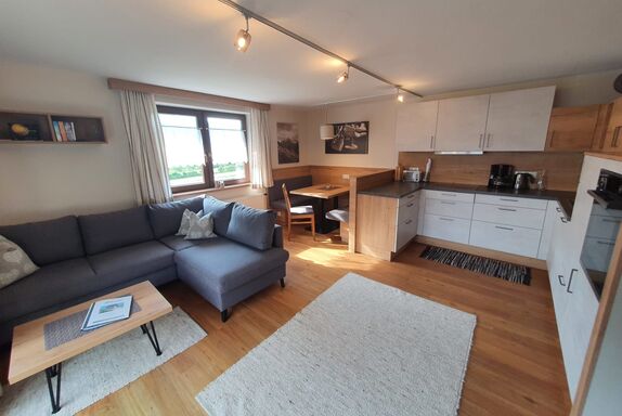 Ferienwohnung Top 1 im 1. Stock (50 m²) verfügt über 1 Schlafzimmer und eine großzügige Wohnküche. Sie eignet sich perfekt für Familien und bietet Platz für 2 - 4 Personen.