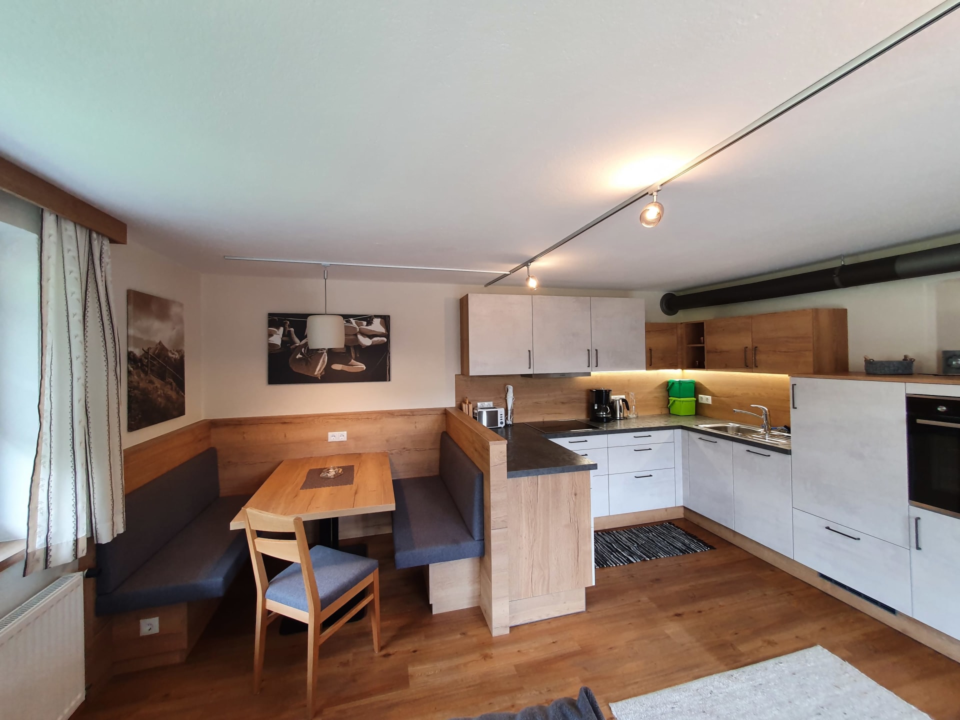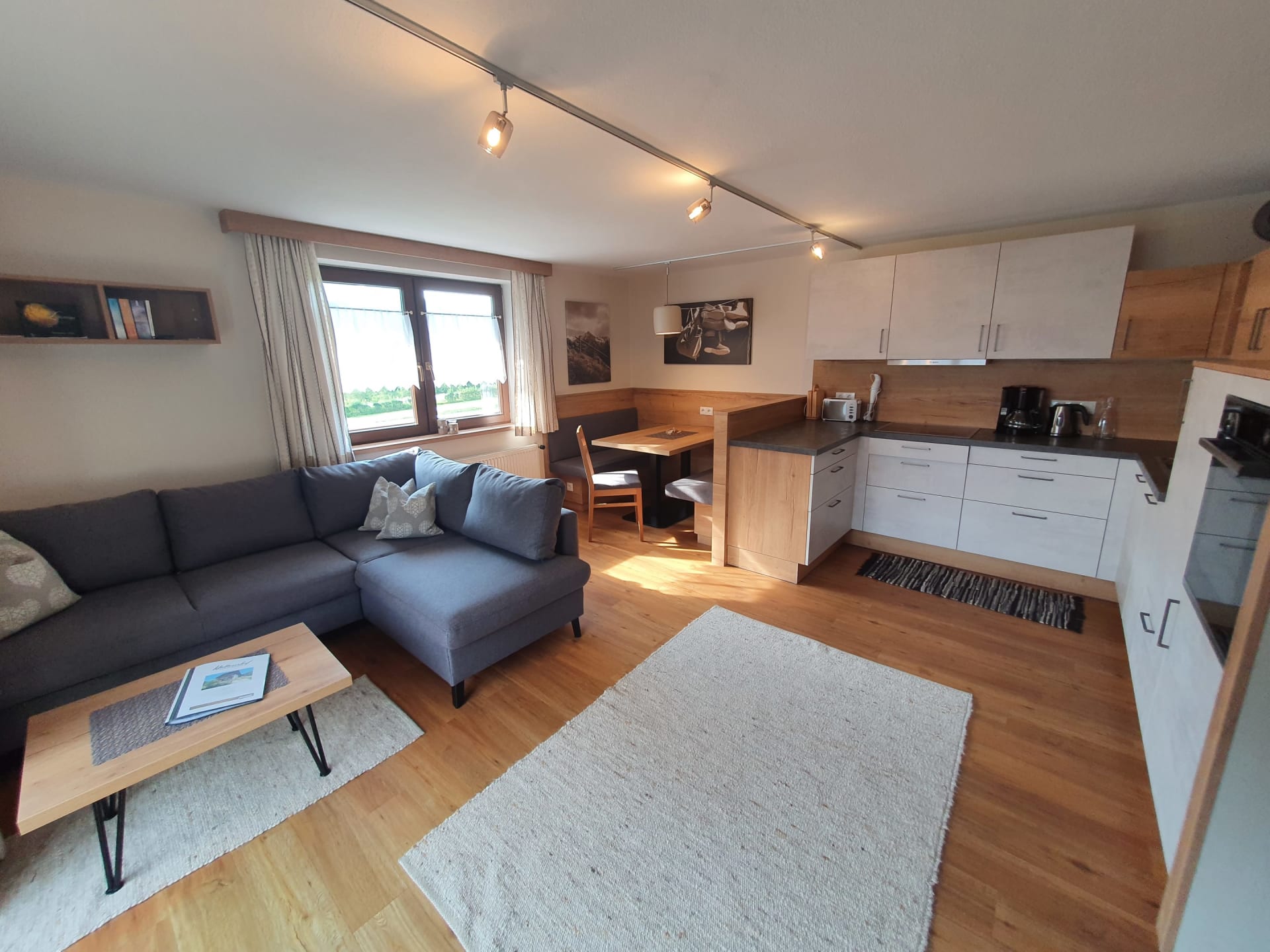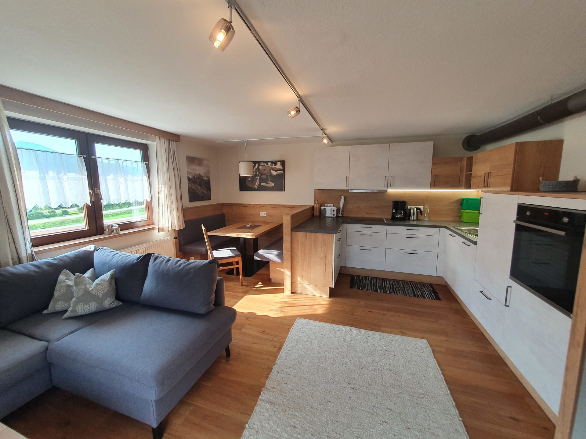 Je nach Wunsch kann die Couch in der Wohnküche oder im Schlafzimmer als Schlafcouch verwendet werden. Die Wohnküche ist ausgestattet mit Sat-TV, E-Herd, Backrohr, Geschirrspüler, Kühlschrank mit Tiefkühlfach, Kaffeemaschine, Wasserkocher, Toaster. Bettwäsche und Handtücher sind vorhanden und im Mietpreis inkludiert.