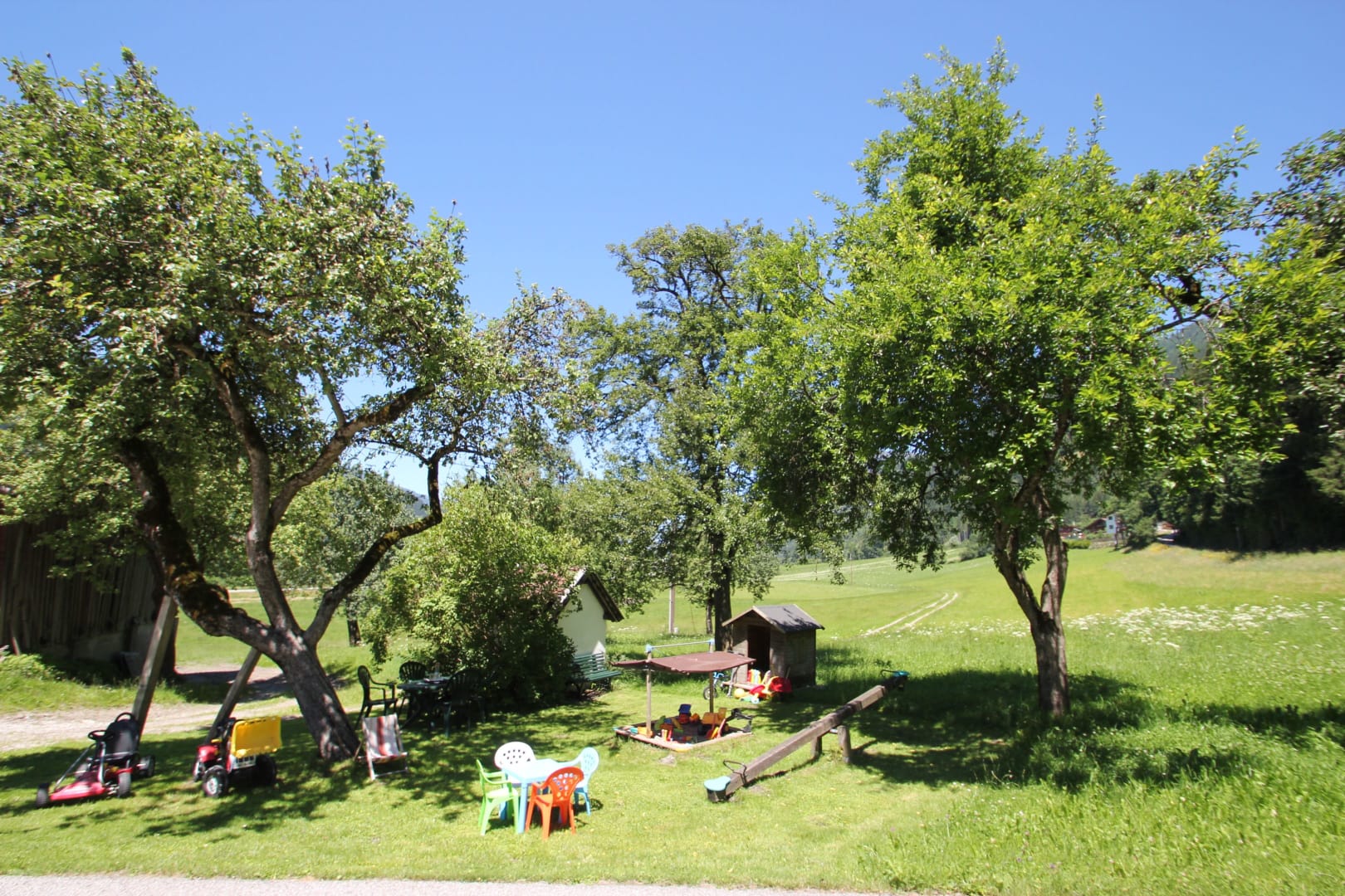 Ruhige Liegewiese mitten in unserem schattigen Obstgarten.