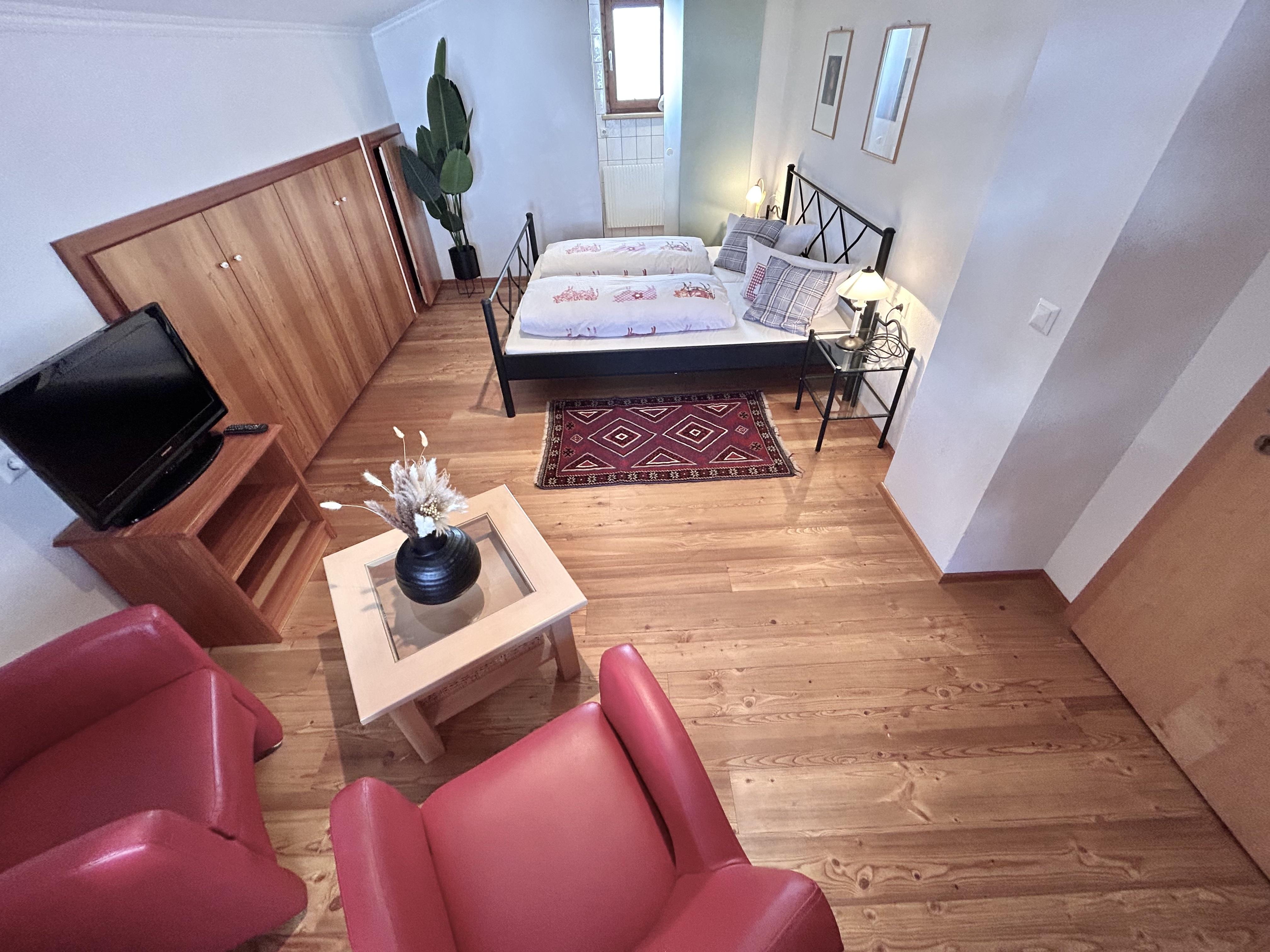 ABRAKADABRA ist unser Kuscheldoppelzimmer und liegt unter der Dachschräge mit Blick aufs Wartherhorn. Das ABRAKADABRA ist mit Doppelbett - Couchtisch und -stühlen, sowie Sat-TV eingerichtet. Es gibt einen Balkon.