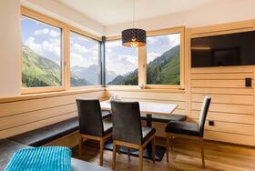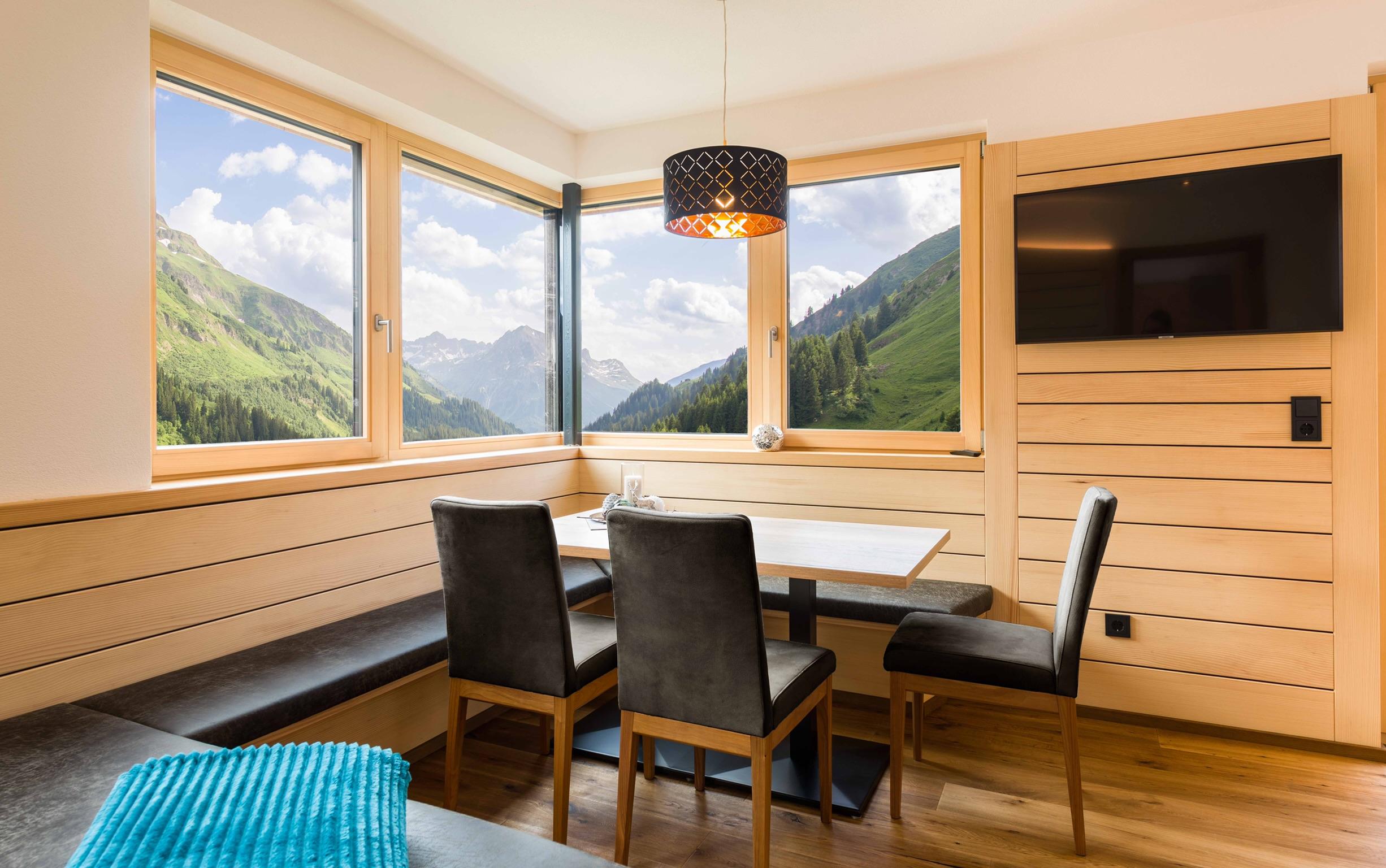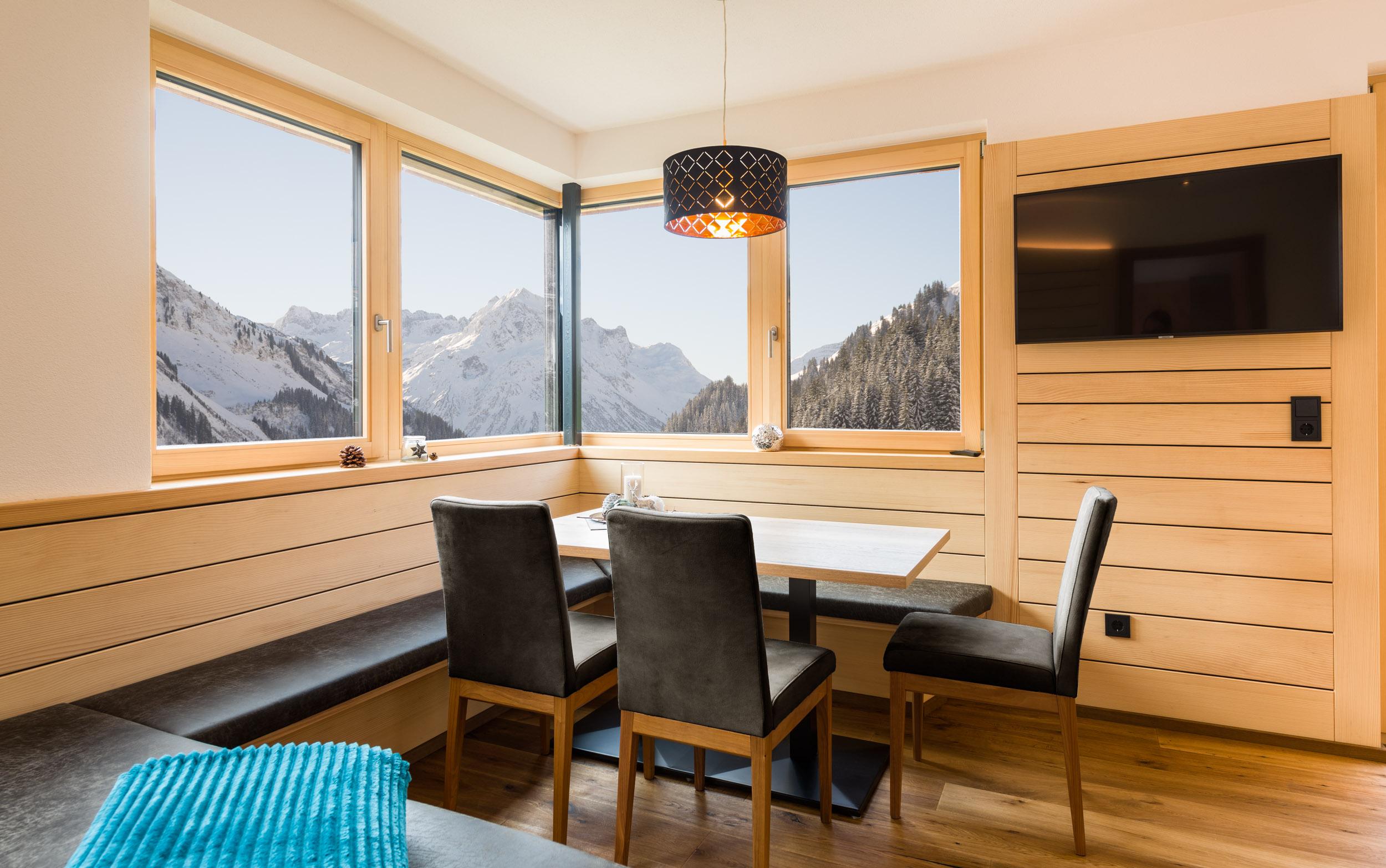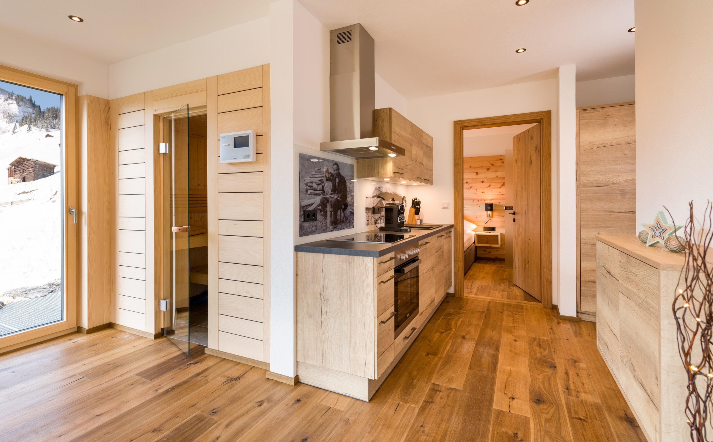Unser modern eingerichtetes, neu eröffnetes Haus liegt mitten im Skigebiet Warth-Schröcken. Zentral aber in ruhiger Lage können Sie hier ausgiebig die Seele baumeln lassen und sind gleichzeitig nah dran an Natur, Action und Tradition. Jedes der drei Appartements hat zwei Schlafzimmer mit jeweils separatem Badezimmer. Sie eignen sich daher perfekt sowohl für junge Familien als auch für befreundete Paare, die zusammen reisen. Die großzügig geschnittenen Wohnungen verfügen außerdem über eine moderne, komplett ausgestattete Küche, eine große Terrasse mit Traumblick-Garantie und einen eigenen Wellnessbereich mit privater Sauna und Liegewiese mit Panoramafenster.