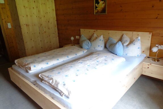 Unsere Ferienwohnung befindet sich im Dachgeschoss. Sie verfügt über eine Wohnküche, 3 Schlafzimmer, Dusche/WC, TV.