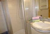 Das BADEZIMMER hat eine Dusche und ein Waschbecken