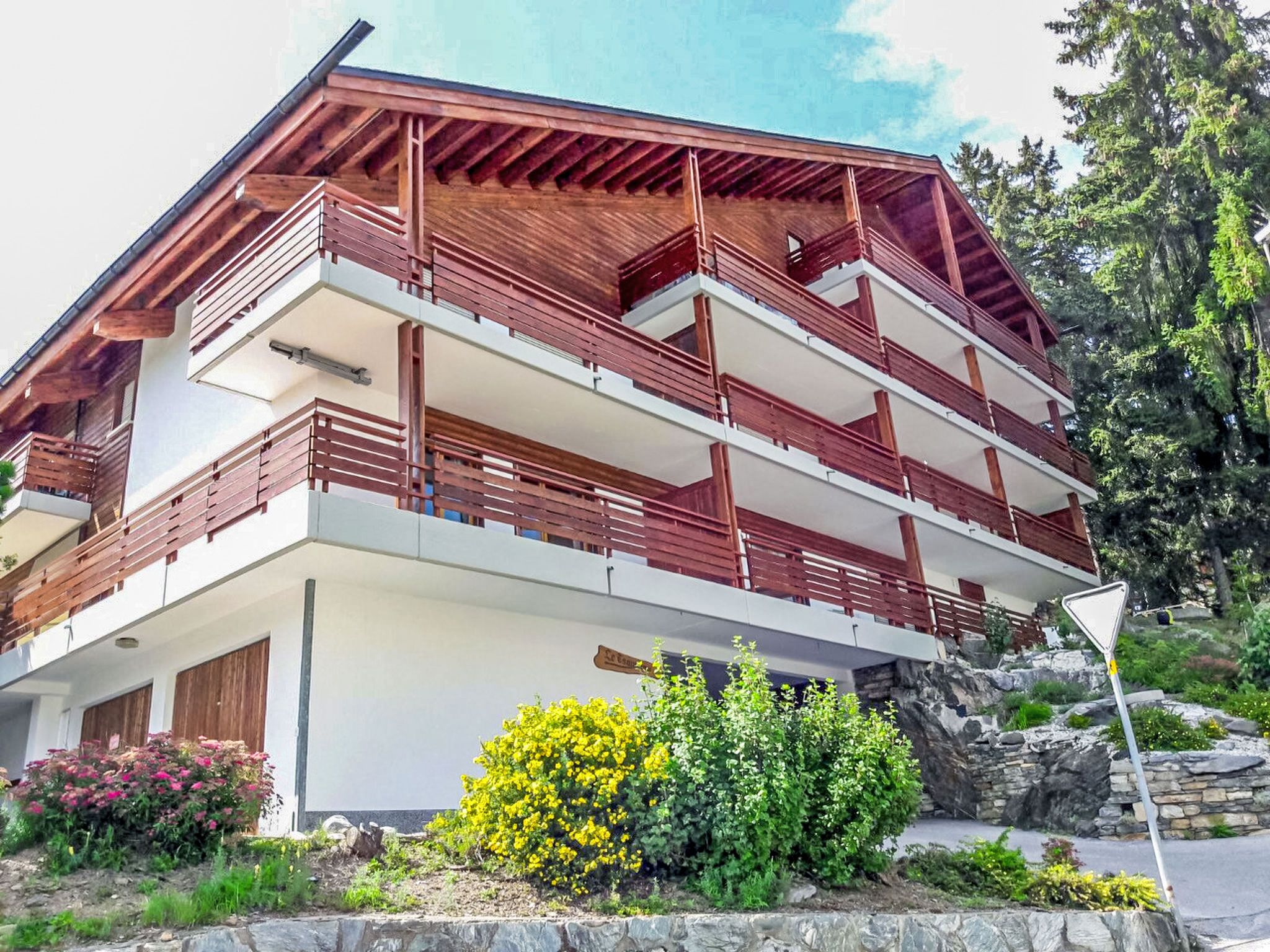 Komfortable Residenz Tsaumiau A. Oberhalb von Montana, im Ortsteil Violettes, 1.5 km vom Zentrum von Montana, 2.1 km vom See, 100 m vom Skigebiet, Richtung Osten. In der Anlage: Fahrstuhl, Skiraum, Zentralheizung, Waschmaschine, Wäschetrockner (zur Mitbenutzung, extra). Parkplatz (überdacht) beim Haus in 150 m Gemeinschaftsgarage. Einkaufsgeschäft 1.5 km, Supermarkt 1.6 km, Restaurant 1.5 km, Bäckerei 250 m, Bushaltestelle télé Violettes 200 m, Bahnstation Funiculaire Montana Gare 1.1 km, Badesee Moubra 2.8 km, See Grenon 2.1 km. Golfplatz (18 Loch) 3.9 km, Skisportanlagen, Skipisten, Skiverleih 100 m, Skibushaltestelle 200 m. Bekannte Seen in der Umgebung sind gut erreichbar: Lac de la Moubra 2.8 km, Etang Long 3.7 km. Bitte beachten: Gratis Skibus. Weitere Unterkünfte sind buchbar.