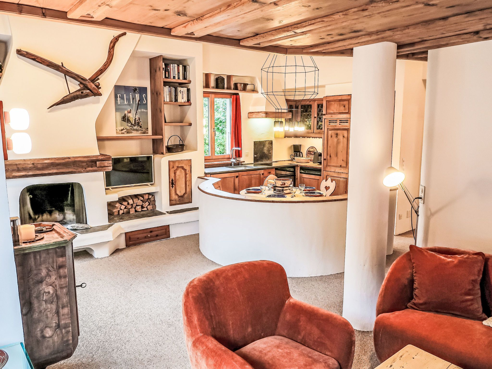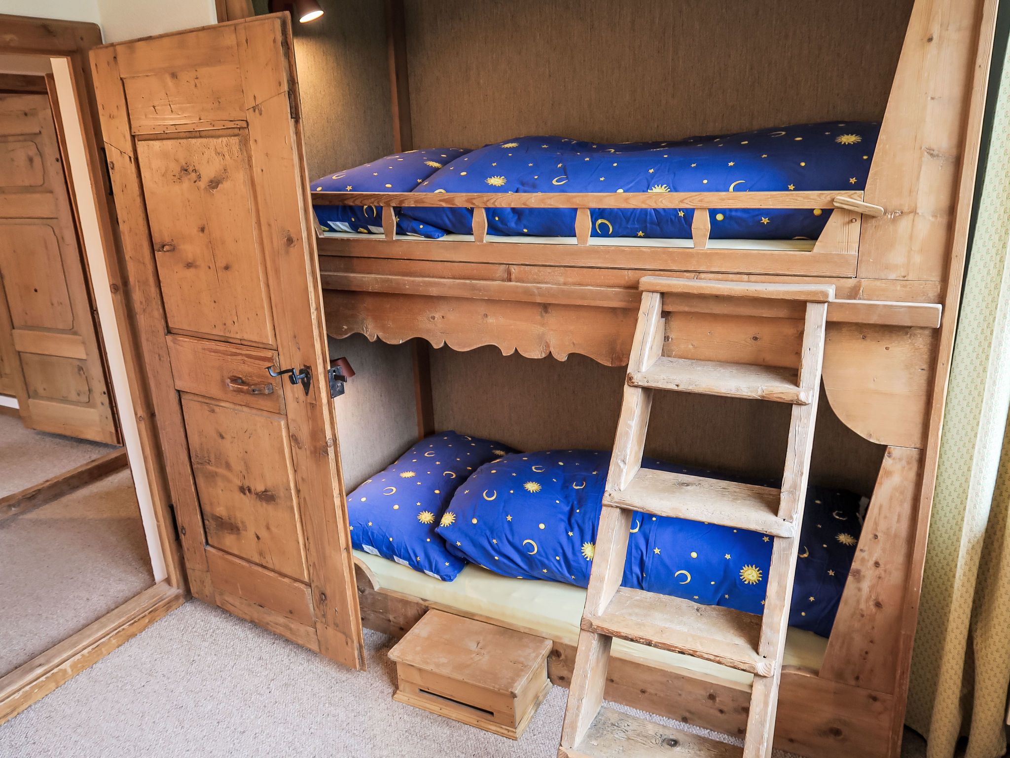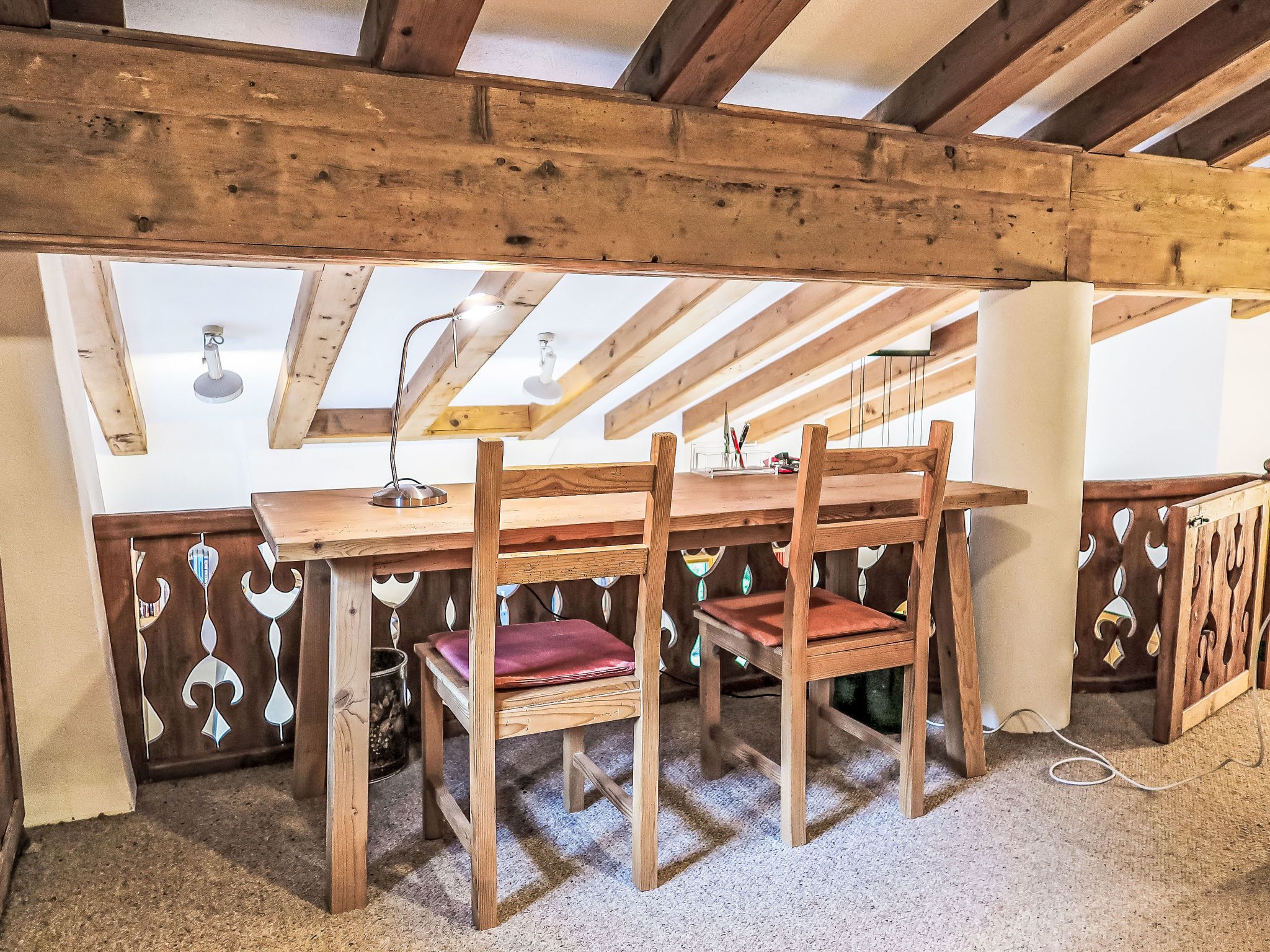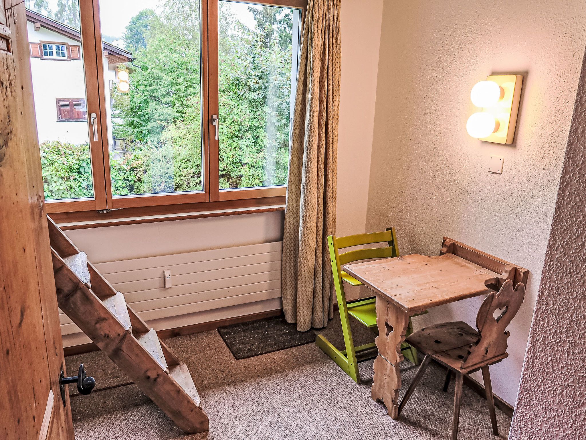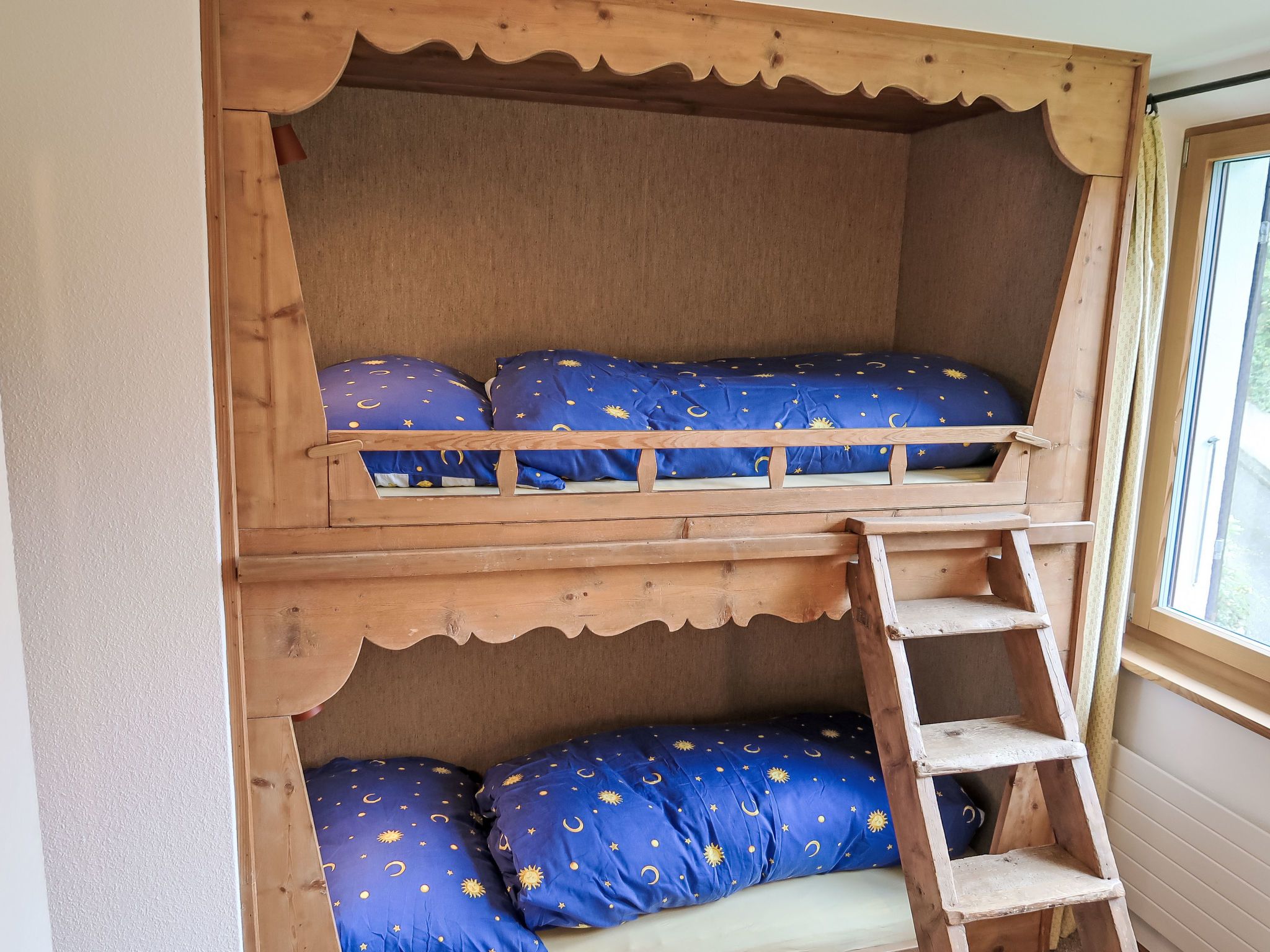 Villa Waldpark, 5-Zimmer-Maisonette-Wohnung 85 m2 auf 2 Stockwerken im 1. Stock. Komfortabel und gemütlich eingerichtet: Wohn-/Esszimmer mit Sat-TV (Flachbildschirm). Ausgang zum Balkon. 1 Zimmer mit 1 Doppelbett (160 cm, Länge 185 cm). 1 Kinderzimmer mit 1 x 2 Etagenbetten (90 cm, Länge 185 cm). Offene Küche (Backofen, Geschirrspüler, 4 Induktionskochplatten, Wasserkocher, elektrische Kaffeemaschine, Kapseln für die Kaffeemaschine (Nespresso) extra, Racletteofen, Fondue Set (Chinoise, Käse)) mit Esstisch. Bad/WC. Obergeschoss: Galerie. 1 Zimmer mit 1 Doppelbett (180 cm, Länge 185 cm). Dusche/WC. Balkon 10 m2, Südlage. Balkonmöbel, Liegestühle (1). Schöne Sicht auf die Berge und die Landschaft. Zur Verfügung: Waschmaschine. Internet (Wireless LAN, gratis). Garage Nr. 7 (1 Auto). Bitte beachten: geeignet für Familien. Nichtraucher-Unterkunft.