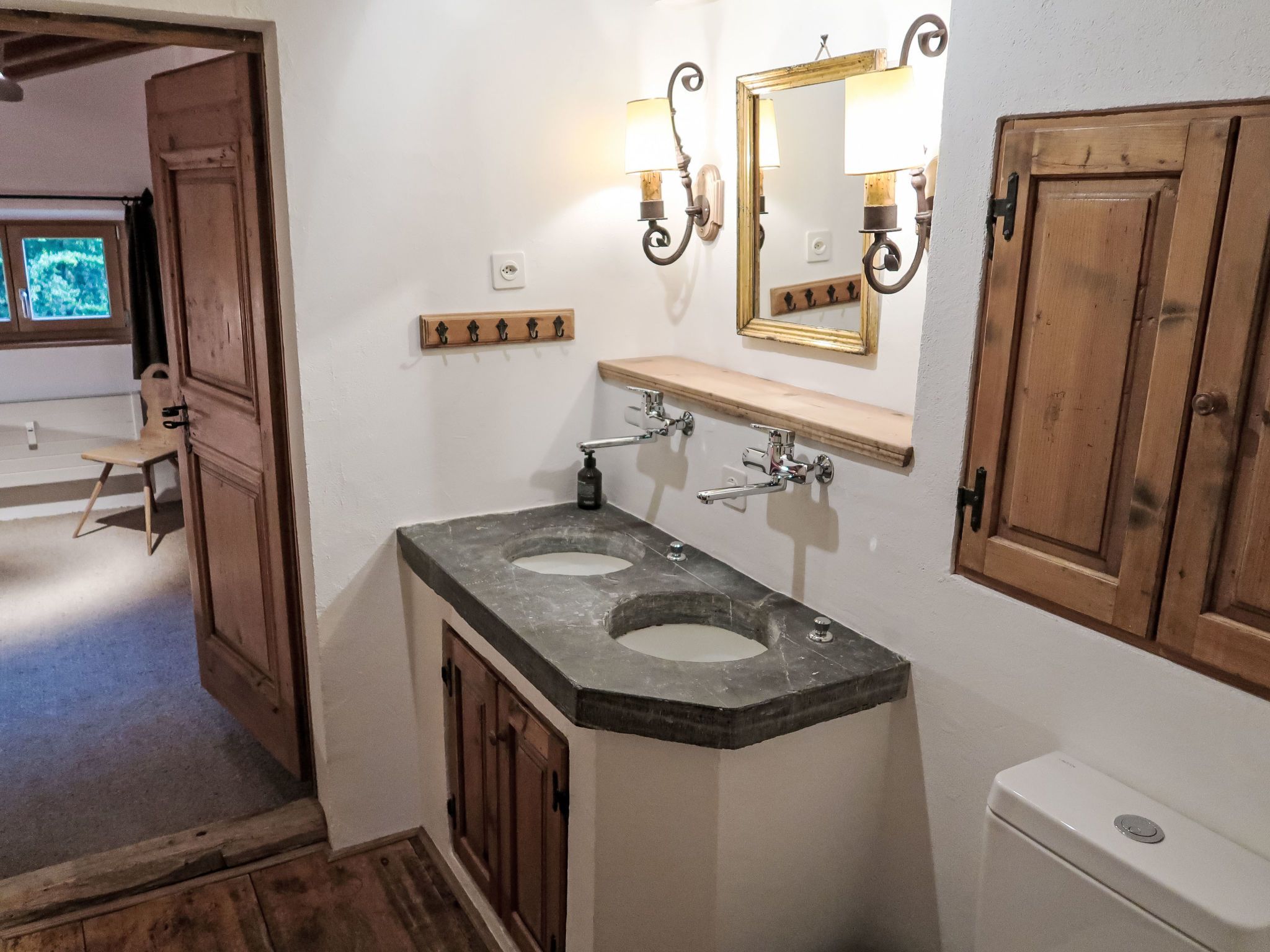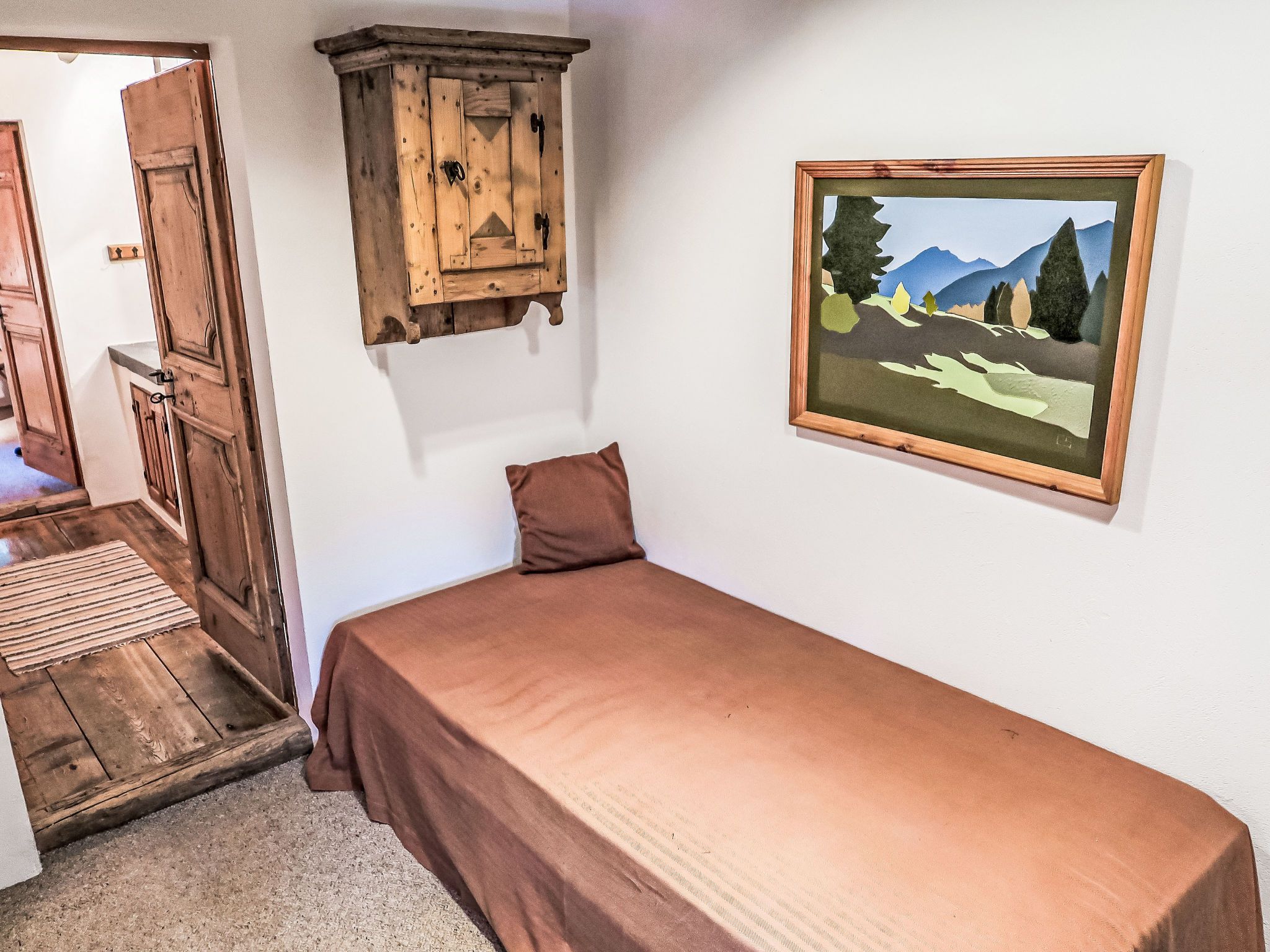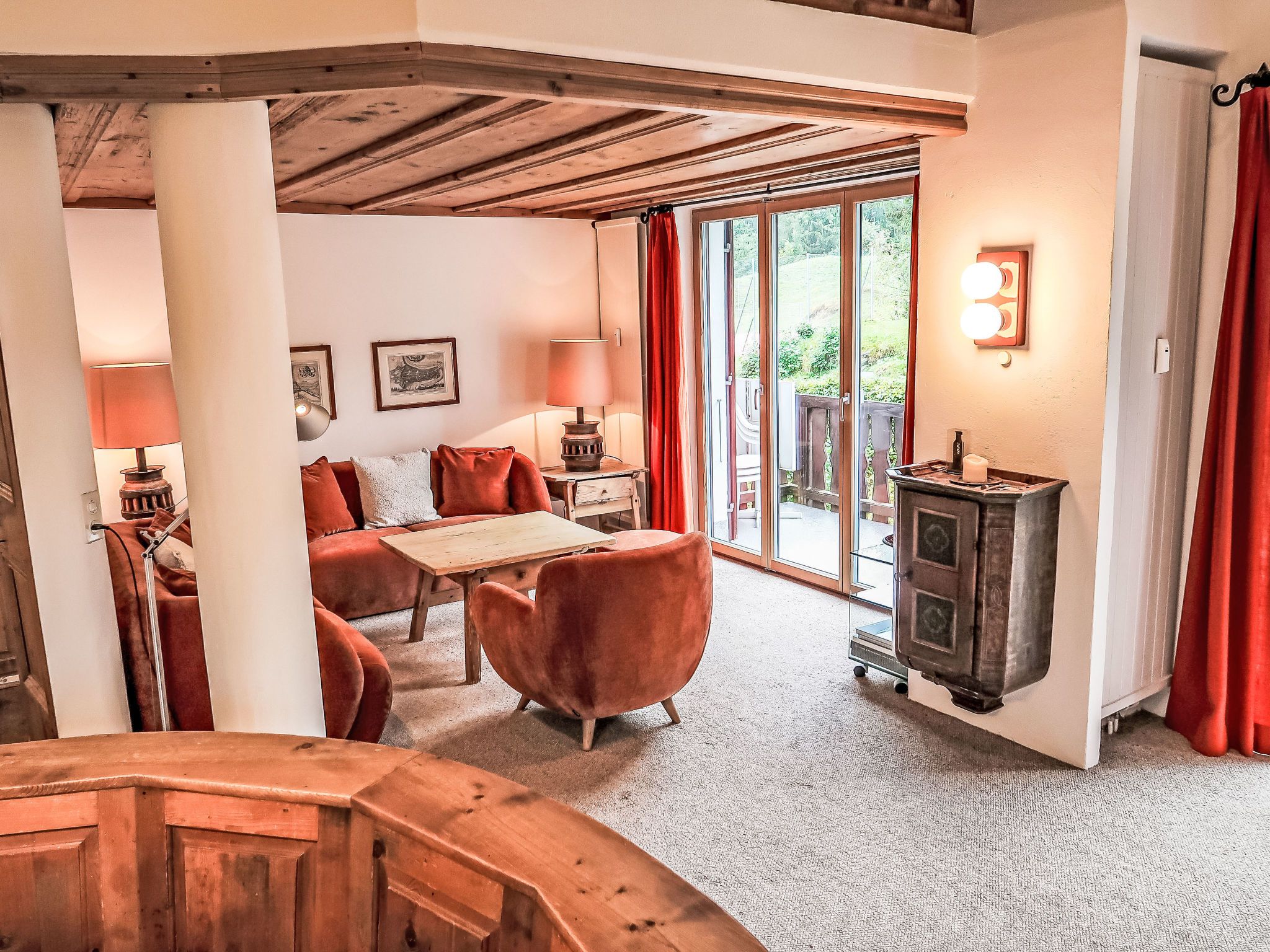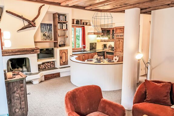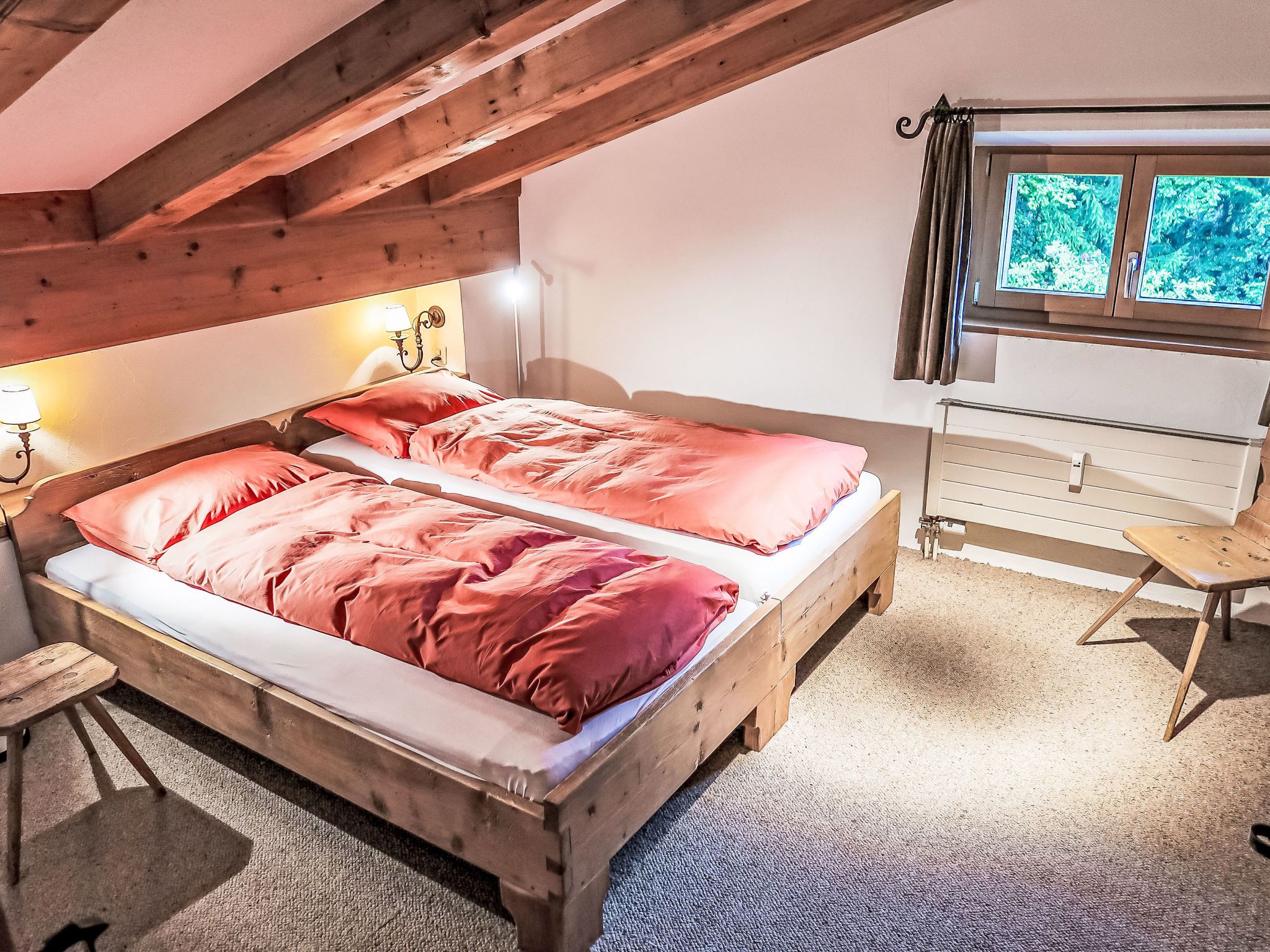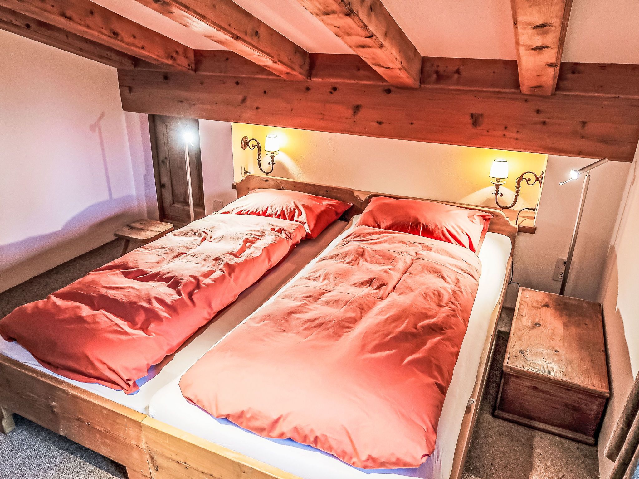 Villa Waldpark, 5-Zimmer-Maisonette-Wohnung 85 m2 auf 2 Stockwerken im 1. Stock. Komfortabel und gemütlich eingerichtet: Wohn-/Esszimmer mit Sat-TV (Flachbildschirm). Ausgang zum Balkon. 1 Zimmer mit 1 Doppelbett (160 cm, Länge 185 cm). 1 Kinderzimmer mit 1 x 2 Etagenbetten (90 cm, Länge 185 cm). Offene Küche (Backofen, Geschirrspüler, 4 Induktionskochplatten, Wasserkocher, elektrische Kaffeemaschine, Kapseln für die Kaffeemaschine (Nespresso) extra, Racletteofen, Fondue Set (Chinoise, Käse)) mit Esstisch. Bad/WC. Obergeschoss: Galerie. 1 Zimmer mit 1 Doppelbett (180 cm, Länge 185 cm). Dusche/WC. Balkon 10 m2, Südlage. Balkonmöbel, Liegestühle (1). Schöne Sicht auf die Berge und die Landschaft. Zur Verfügung: Waschmaschine. Internet (Wireless LAN, gratis). Garage Nr. 7 (1 Auto). Bitte beachten: geeignet für Familien. Nichtraucher-Unterkunft.