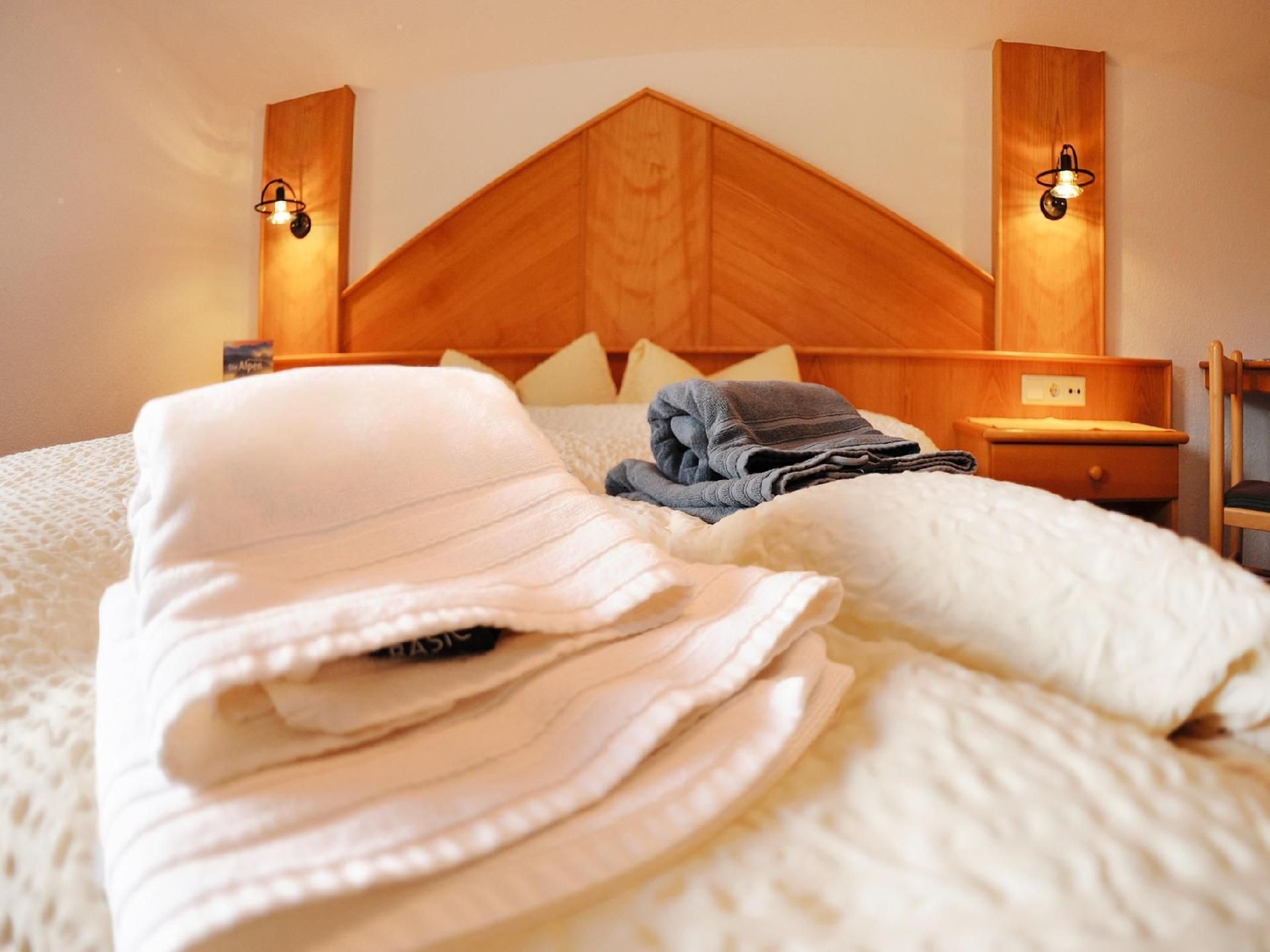 • Bezogene Bettwäsche, sowie Hand-, Bade- und Saunatücher