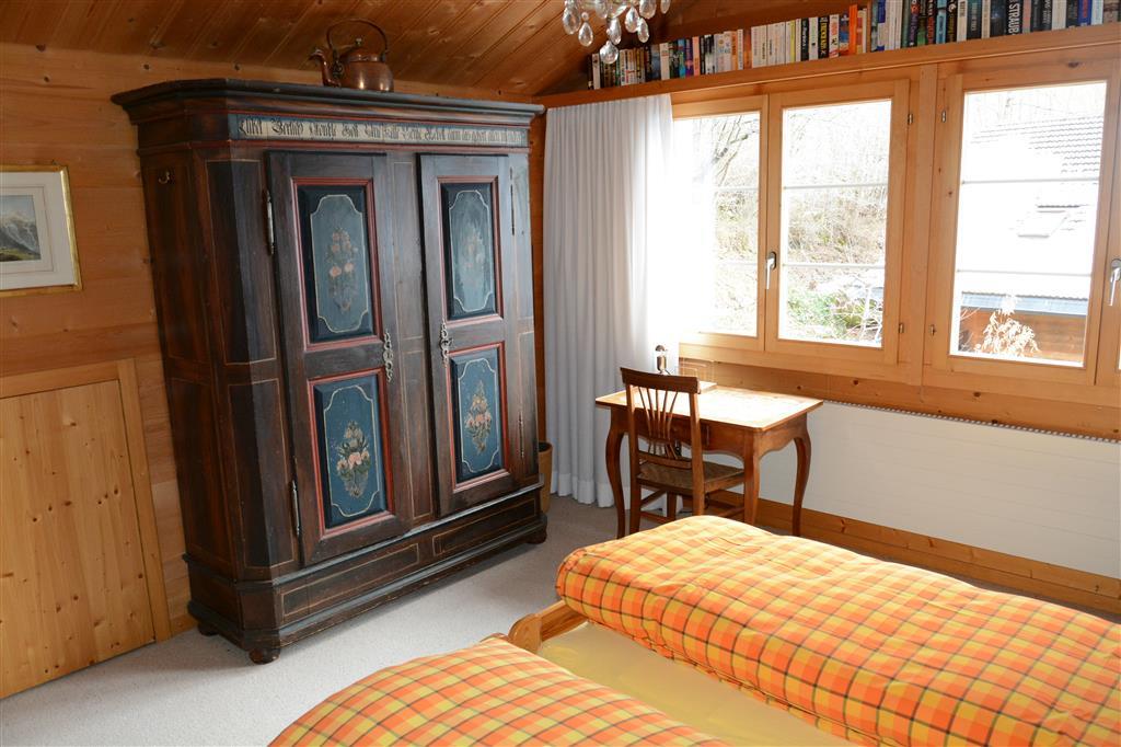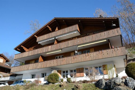 3-Zimmerwohnung (120m2) im 2. und 3. Stock eines Mehrfamilien-Chalets (Baujahr 1989). Ruhige Lage mit schöner Aussicht. Garage und Parkplatz beim Haus. Möblierter Balkon. Waschküche mit Waschmaschine und Wäschetrockner stehen zur gemeinschaftlichen Benutzung zur Verfügung.