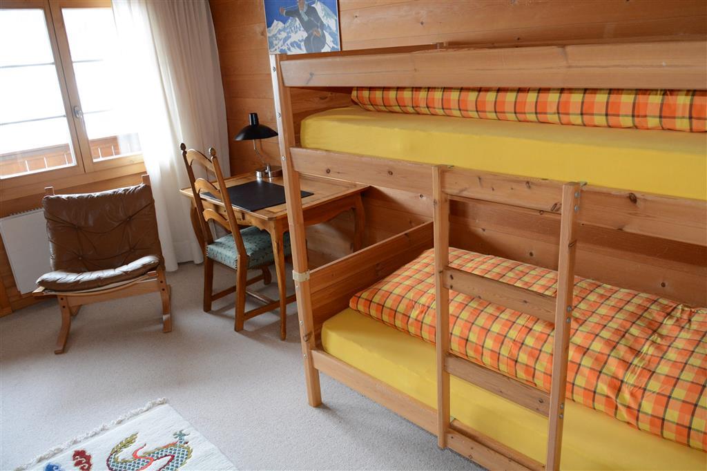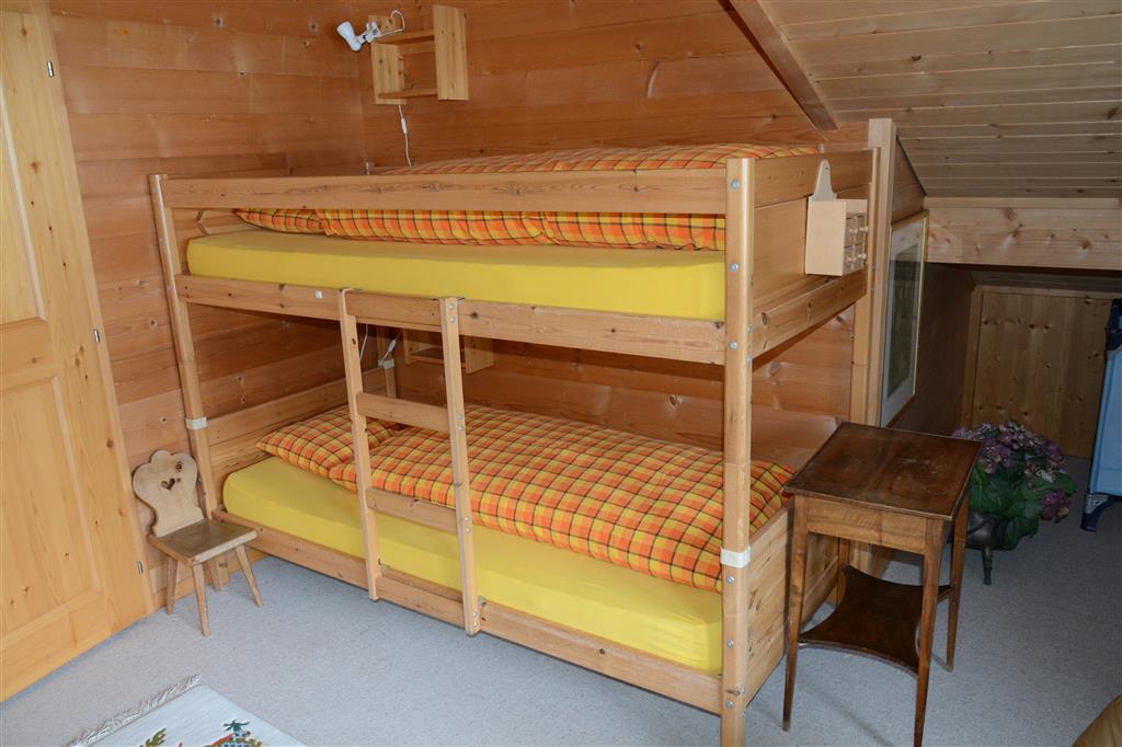 Obergeschoss (3. Stock): 1 Zimmer mit 2 Betten (2x90x200cm). 1 Zimmer mit 2 Etagenbetten (je 90x200cm). Ausgang zum Balkon. Bad/WC. WiFi. Kinderbett (60x120cm) inkl. Bettwäsche vorhanden.