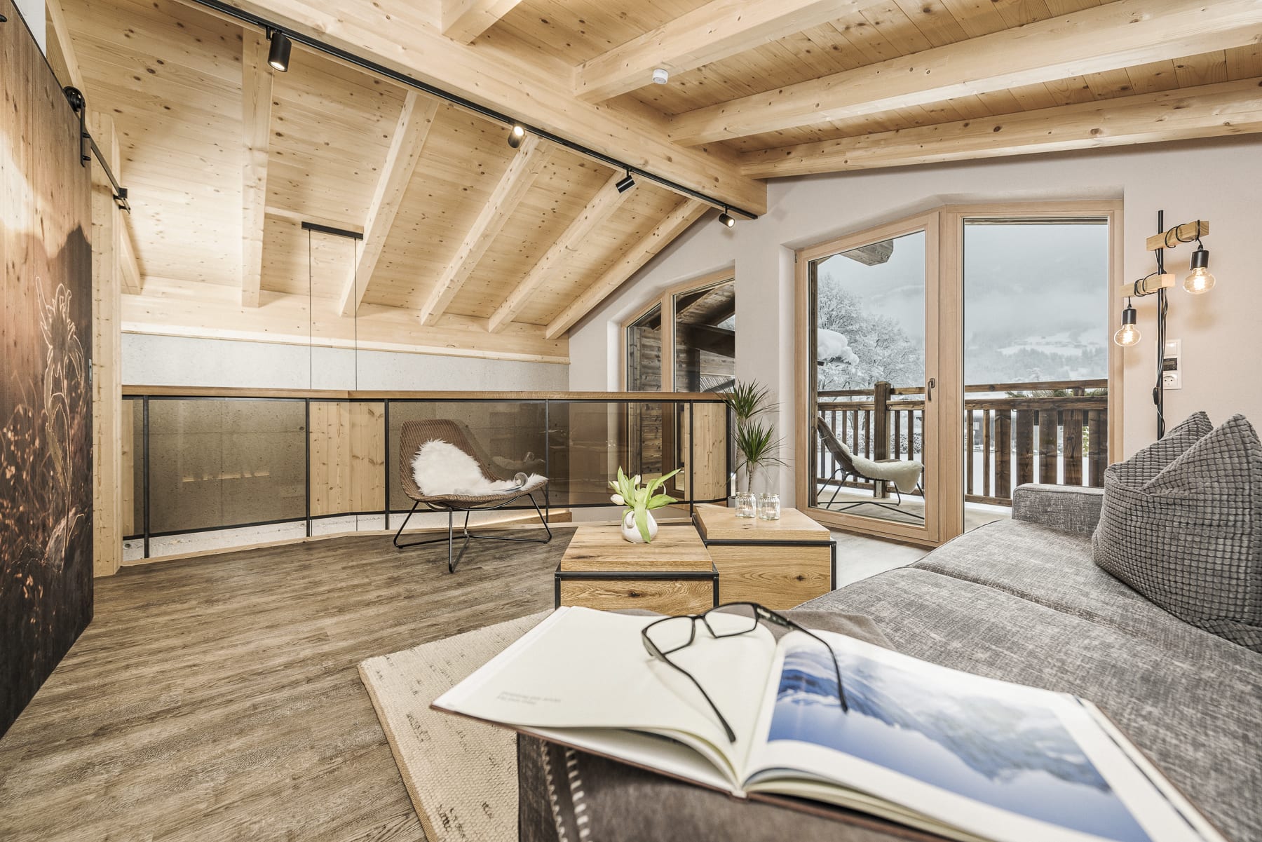 • Gallerie mit Panoramafenster und gemütlicher Schlafcouch für 5. und 6. Person