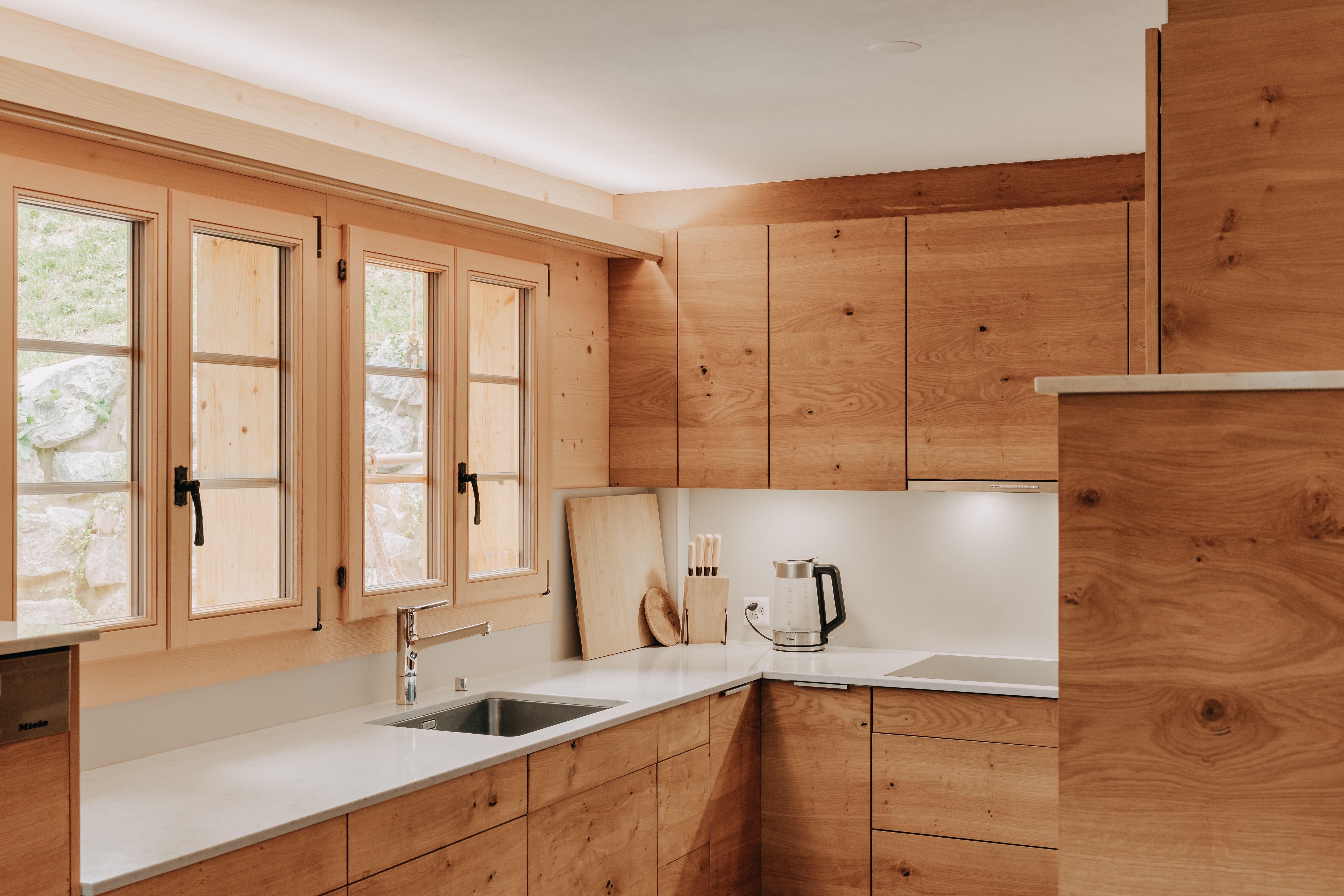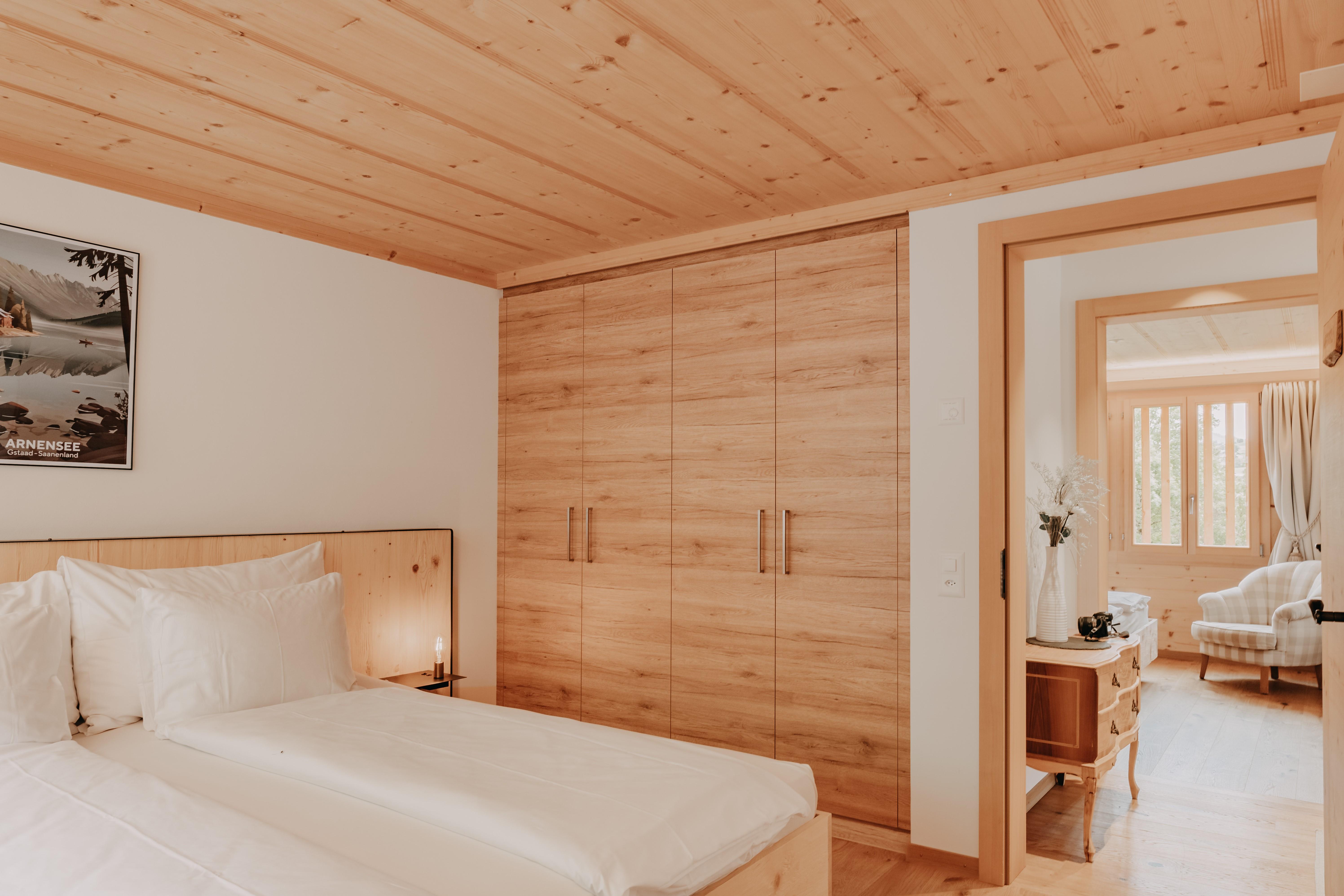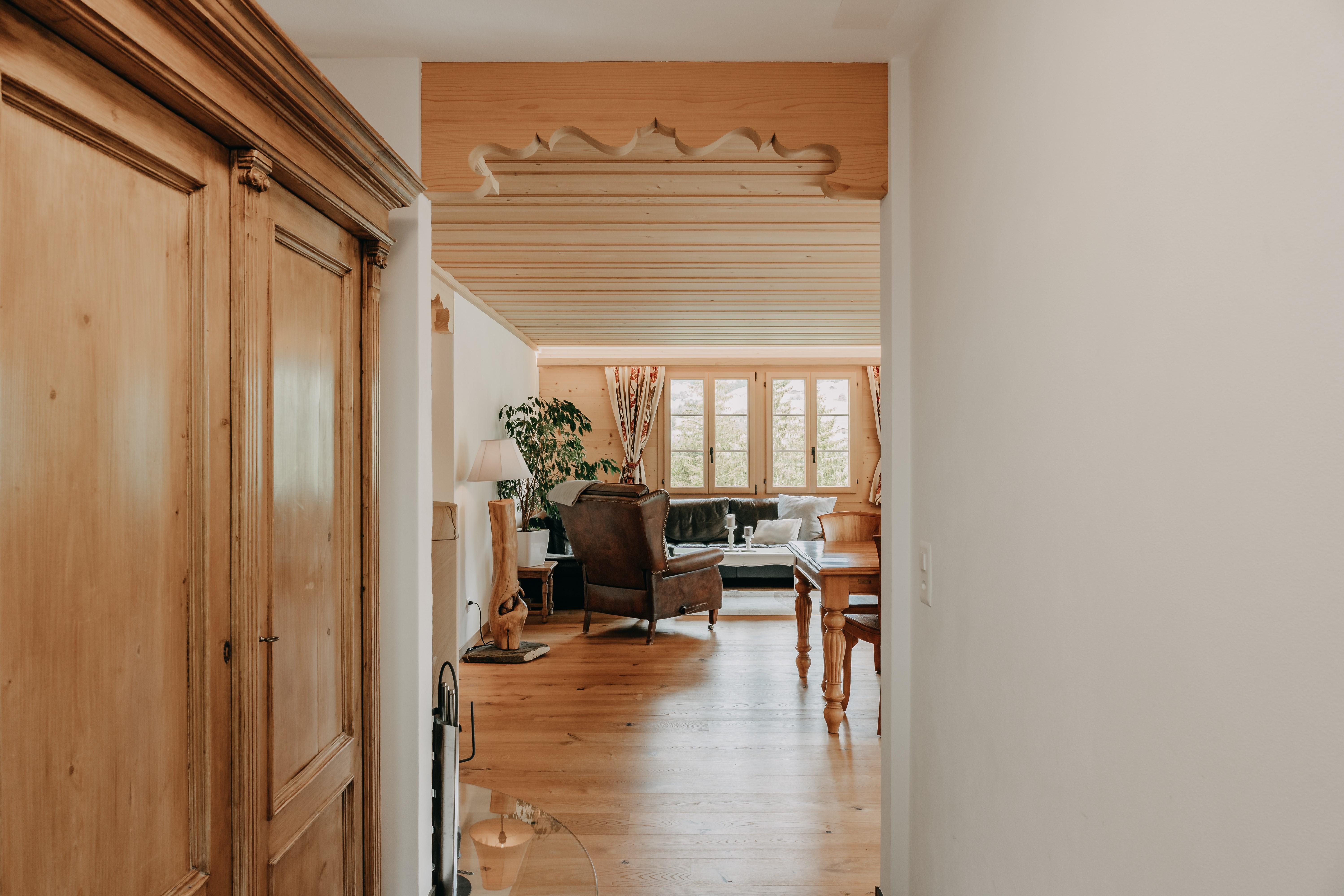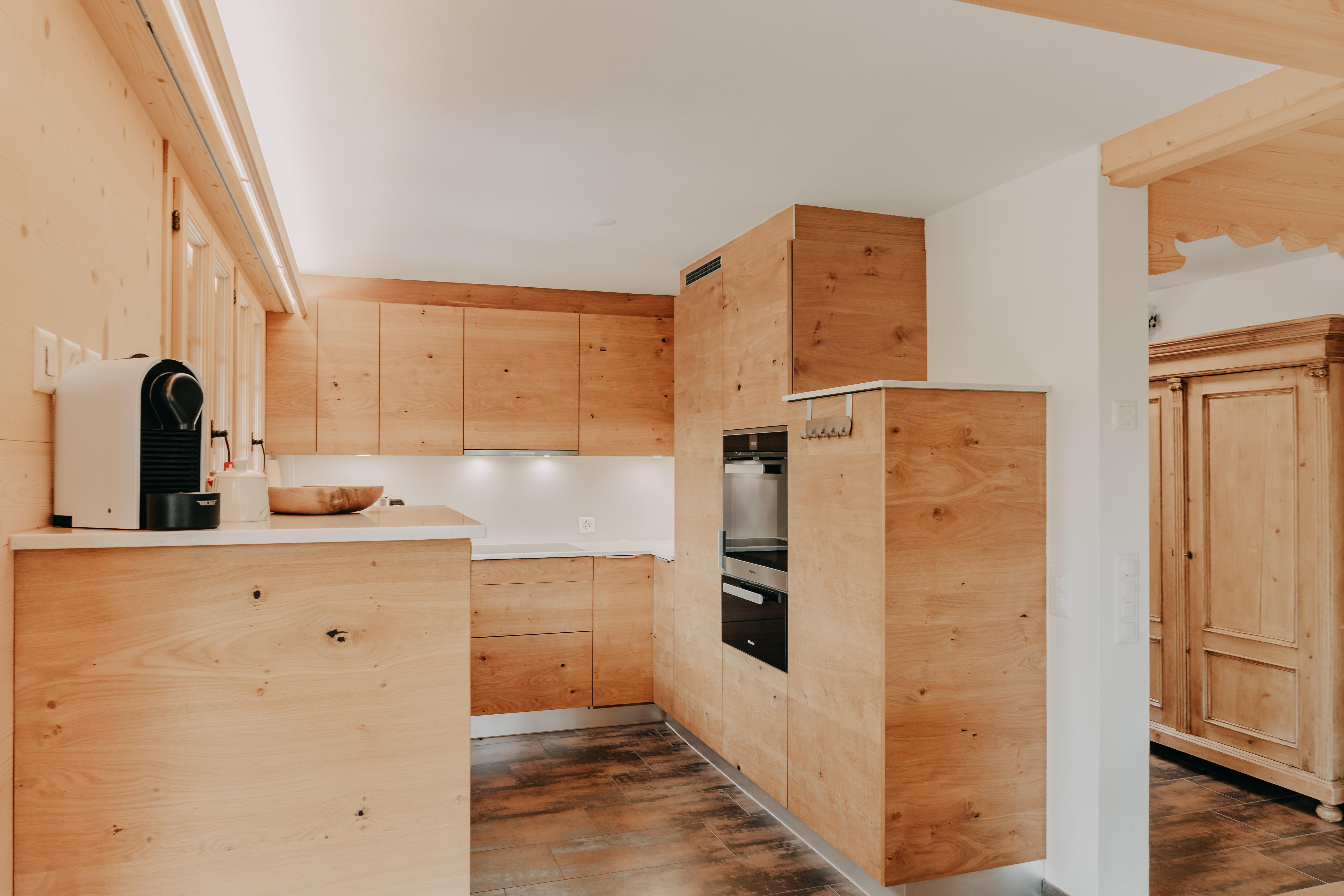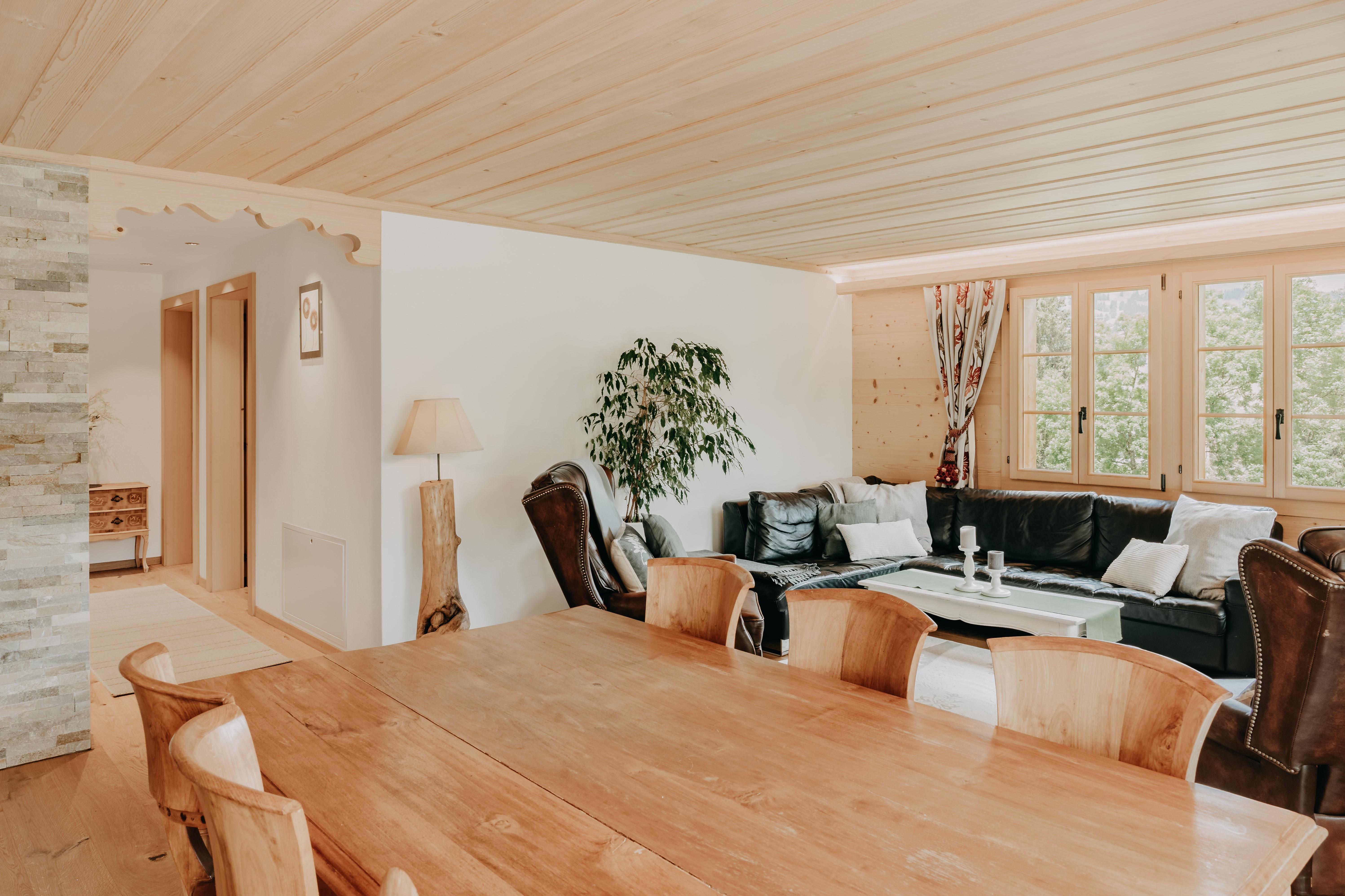 Liebevoll, heimelig und stilvoll eingerichtete Wohnung. Helles Wohn-/Esszimmer mit offener Küche (Induktionsherd, Backofen mit Wärmeschublade, grosser Kühlschrank mit Gefrierfach, Geschirrspülmaschine, Kapsel-Kaffeemaschine (Nespresso) sowie Fondue- und Raclette-Set), Esstisch, Schwedenofen, Sitzgruppe und TV. 2 Schlafzimmer mit je 1 Grand Lit (160x200cm). 1 Schlafzimmer mit 1 Kingsize Bett (200x200cm). 1 Badezimmer mit separater Dusche, Badewanne und WC. 1 separates WC. Die ganze Wohnung verfügt über eine in allen Zimmern individuell regulierbare Bodenheizung. WiFi.