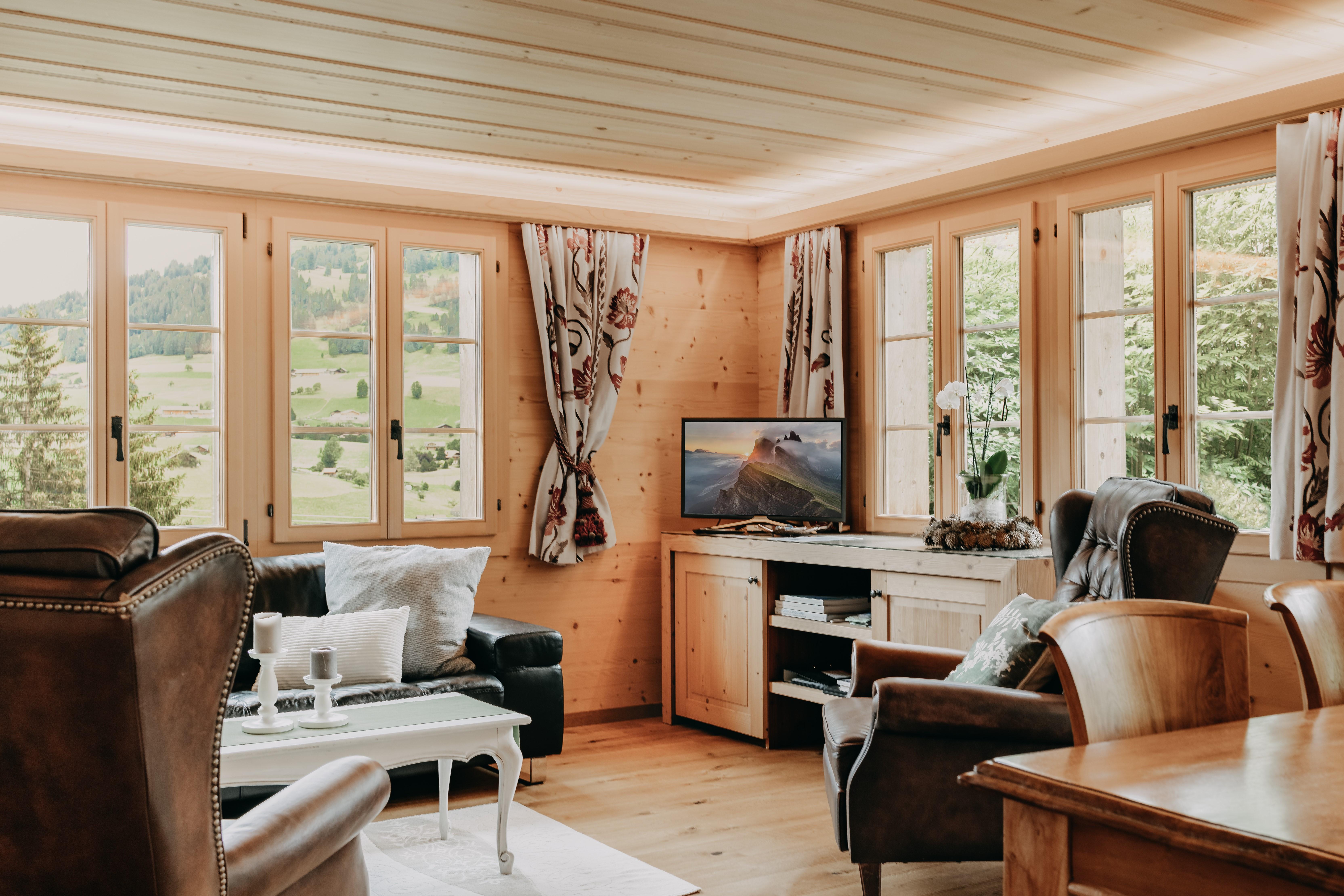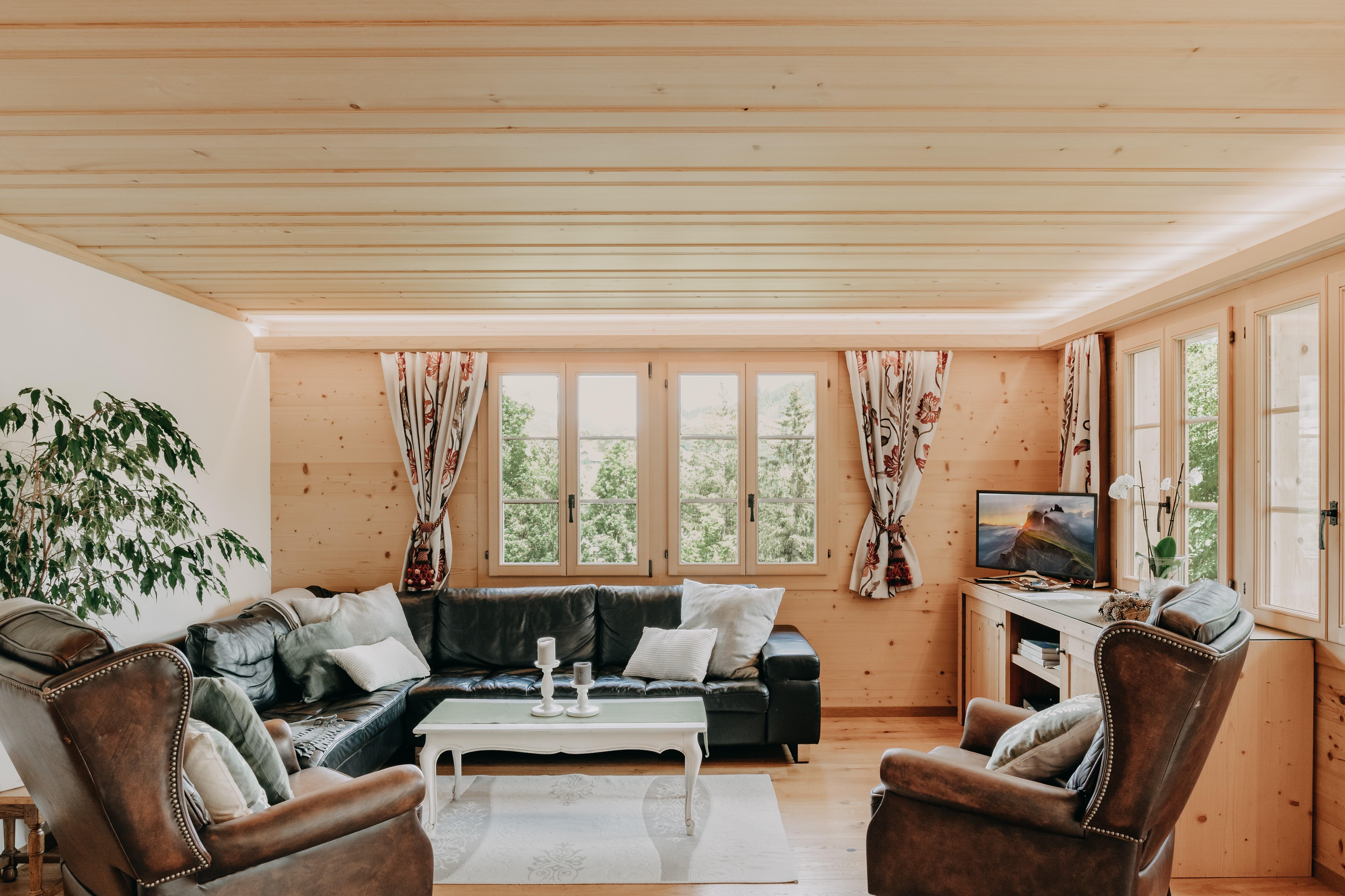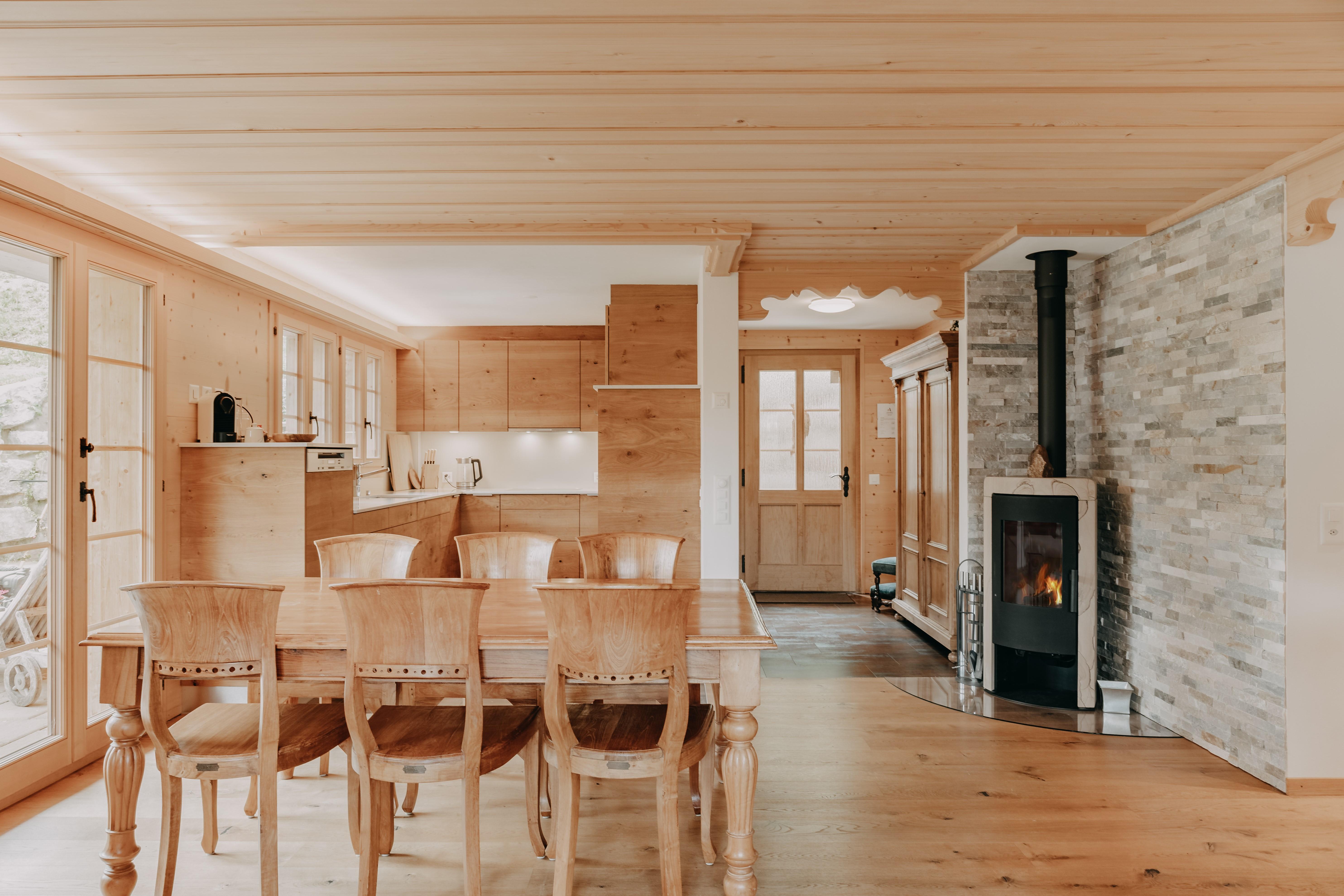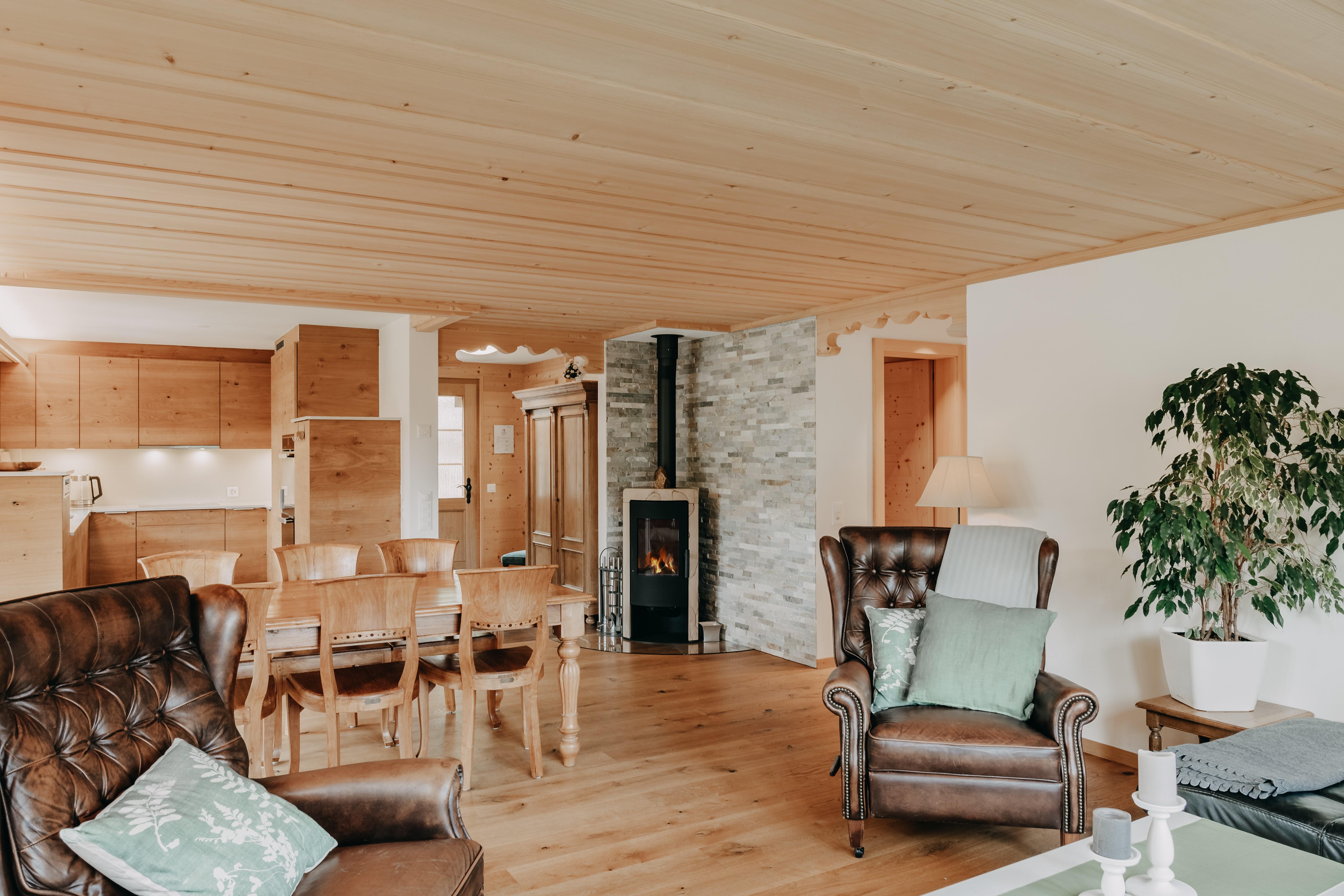 Abstellraum, Backofen, Betten bezogen, Cheminée, Fernseher/TV mit Flachbildschirm, Fondue-Set, Gefrierfach, Geschirrspülmaschine, Haarföhn, Handtücher vorhanden, Internetanschlussmöglichkeit, Kaffee-Maschine, Kühlschrank, Neuwertiges Zimmer/App., Nichtraucher Zimmer/App./Whg., Raclette-Set, Schwedenofen, Terrasse, Trockner, Waschmaschine, Wasserkocher, Wohn-/Schlafräume getrennt