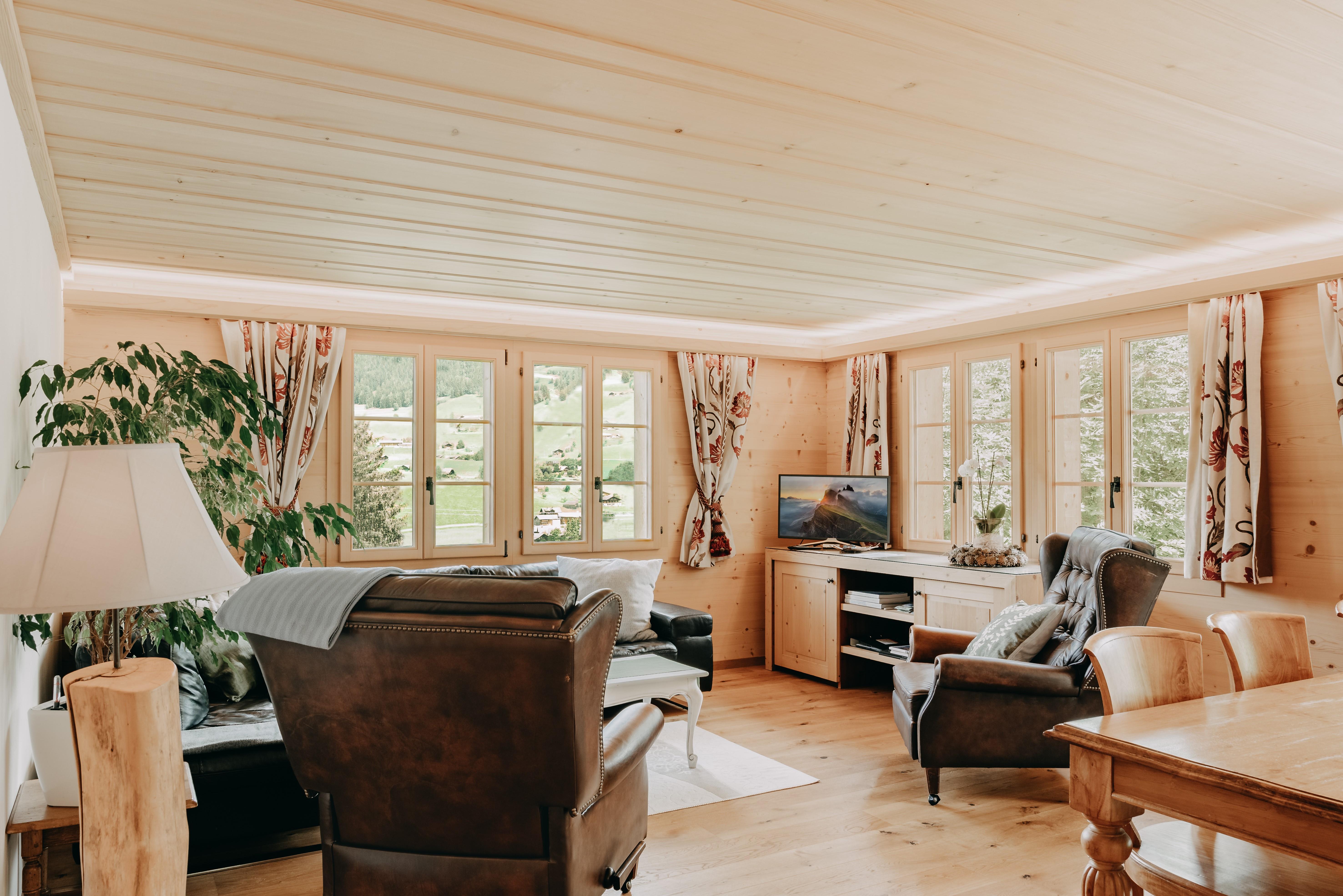 Das Chalet befindet sich in erhöhter Hanglage und ist 2 km vom Bahnhof Gstaad entfernt. Für die Autoanfahrt im Winter sind Allradantrieb (4x4) oder Schneeketten ein Muss.