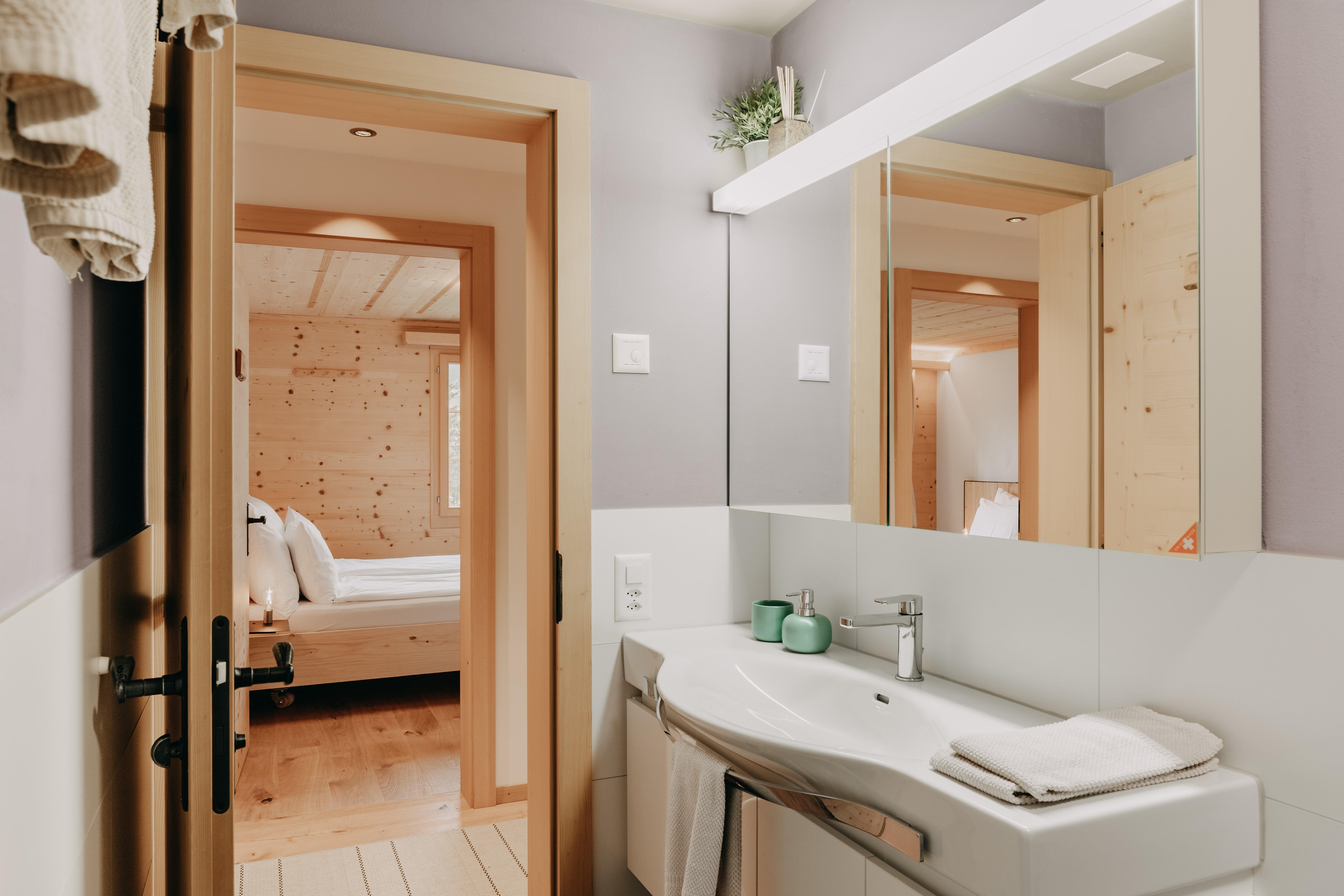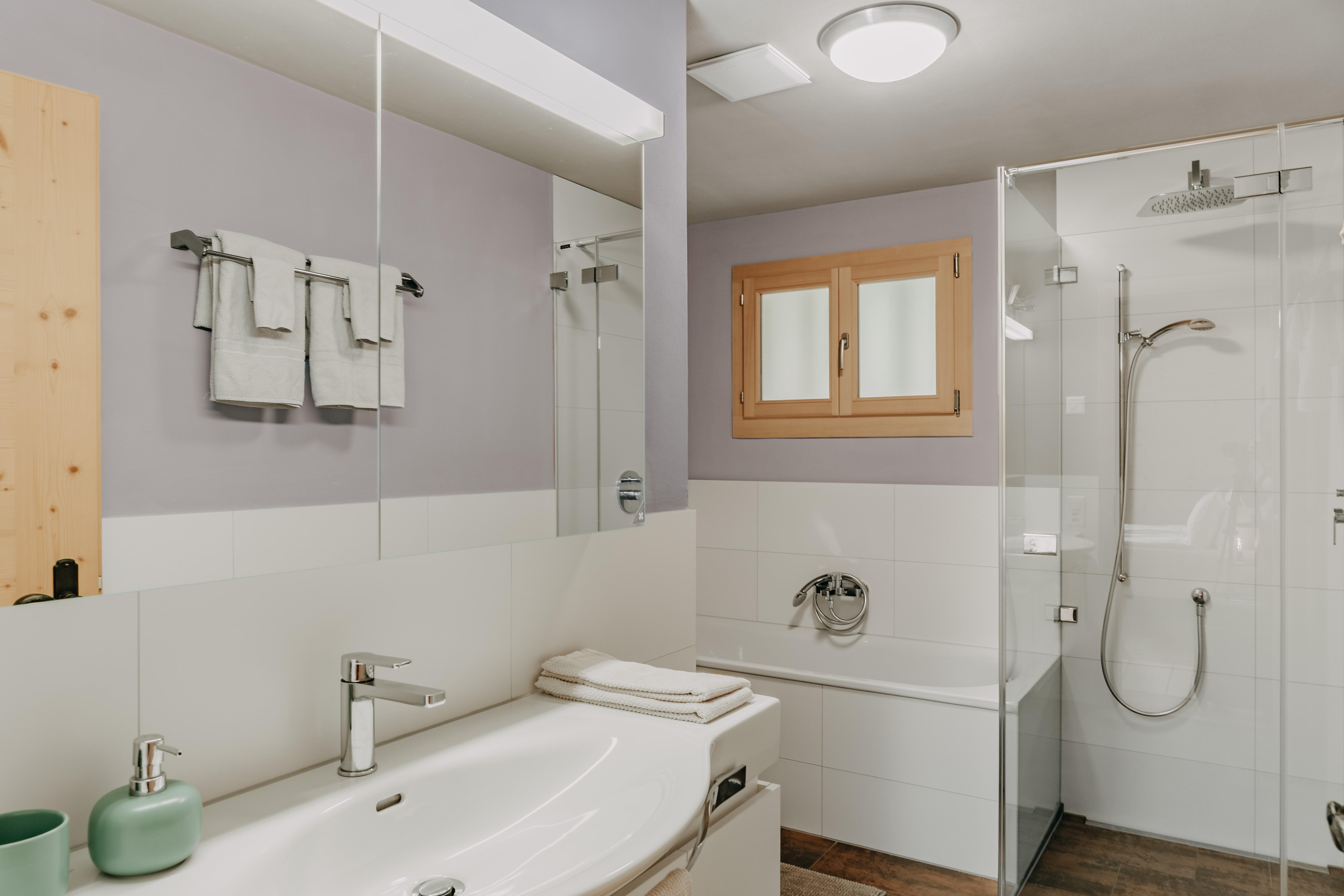 Die 4-Sterne-Klassifikation der Wohnung bezieht sich nur auf eine Belegung von 4 Personen. Für 6 Personen sind gemäss den Richtlinien vom Schweizer Tourismus-Verband grundsätzlich zwei Nasszellen notwendig.