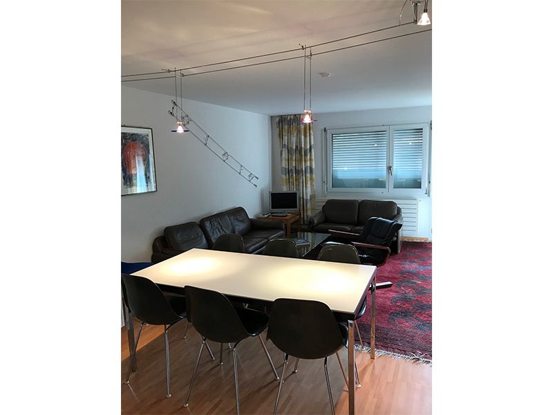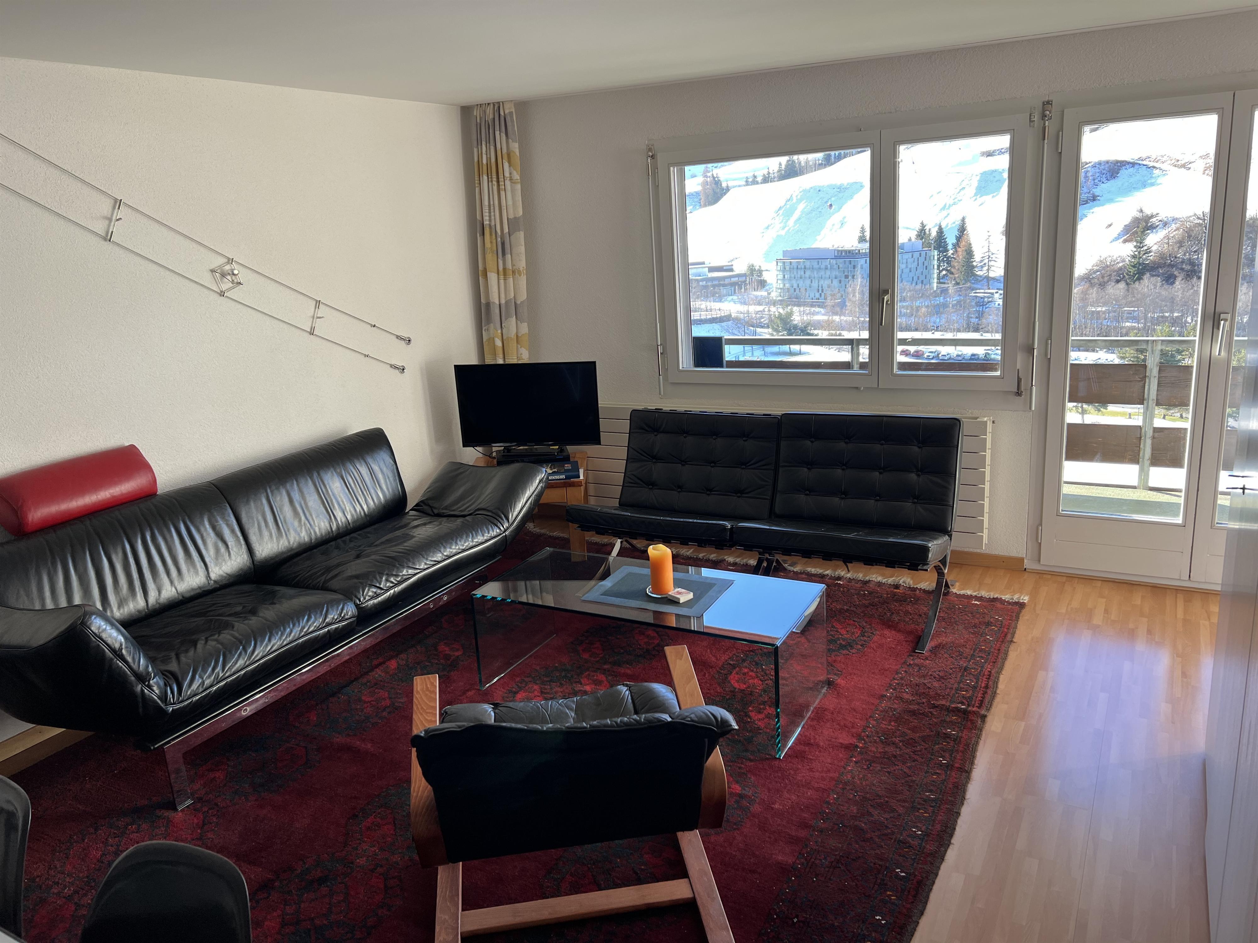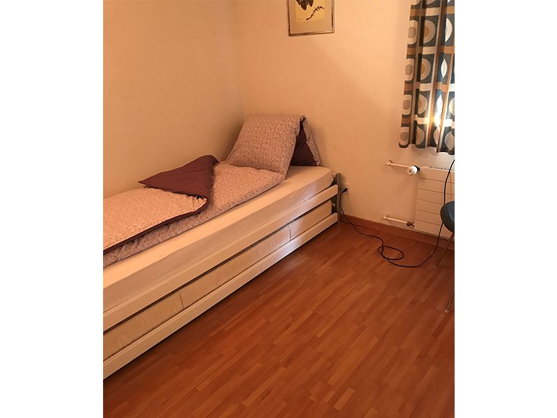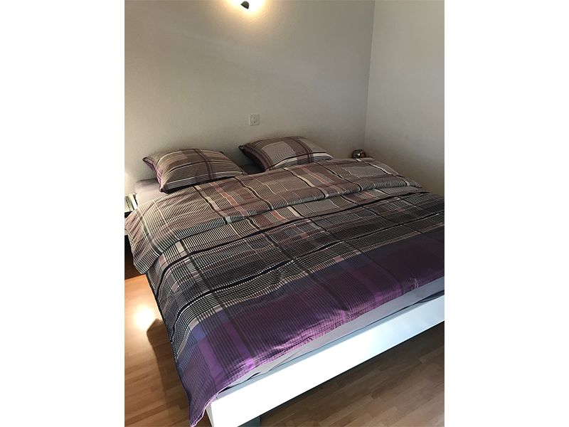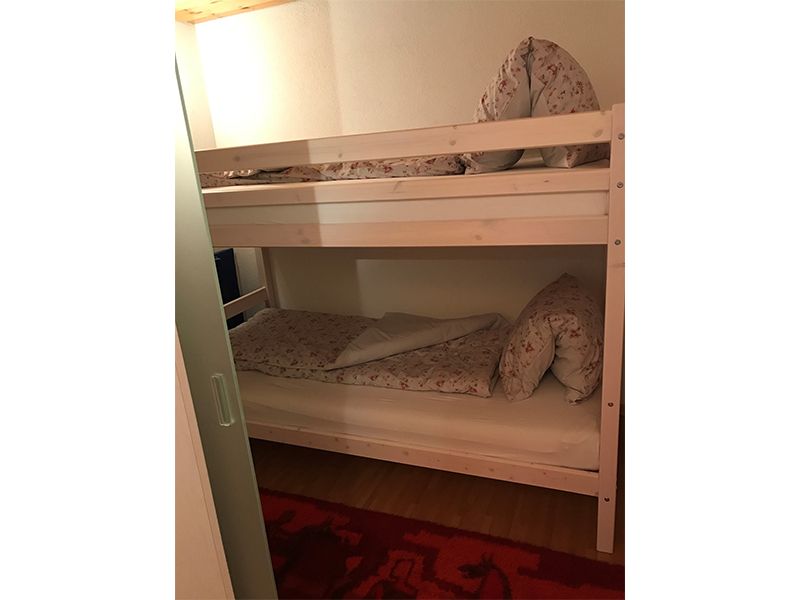 4 Zimmerwohnung ca. 65 m2 im 1. Stock in Mehrfamilienhaus. 1 Schlafzimmer mit 1 Doppelbett, 1 Schlafzimmer mit Französischem Bett und 1 Schlafzimmer mit Etagenbett, insgesammt 6 Betten. Bettwäsche, Küchentücher und Frottéewäsche vorhanden. Wohnküche mit Backofen, Kühlschrank, Geschirrspülmaschine, Kaffeemaschine, Wasserkocher, Mikrowelle und Toaster. Racletteofen und Fondue Caquelon. Bad/WC. Haartrockner. Haustiere nicht erlaubt. Nichtraucherwohnung. Waschmaschine und Wäschetrockner im Haus. Fernseher und Radio. Balkon. Parkplatz. Skiraum. Kinderspielplatz.
