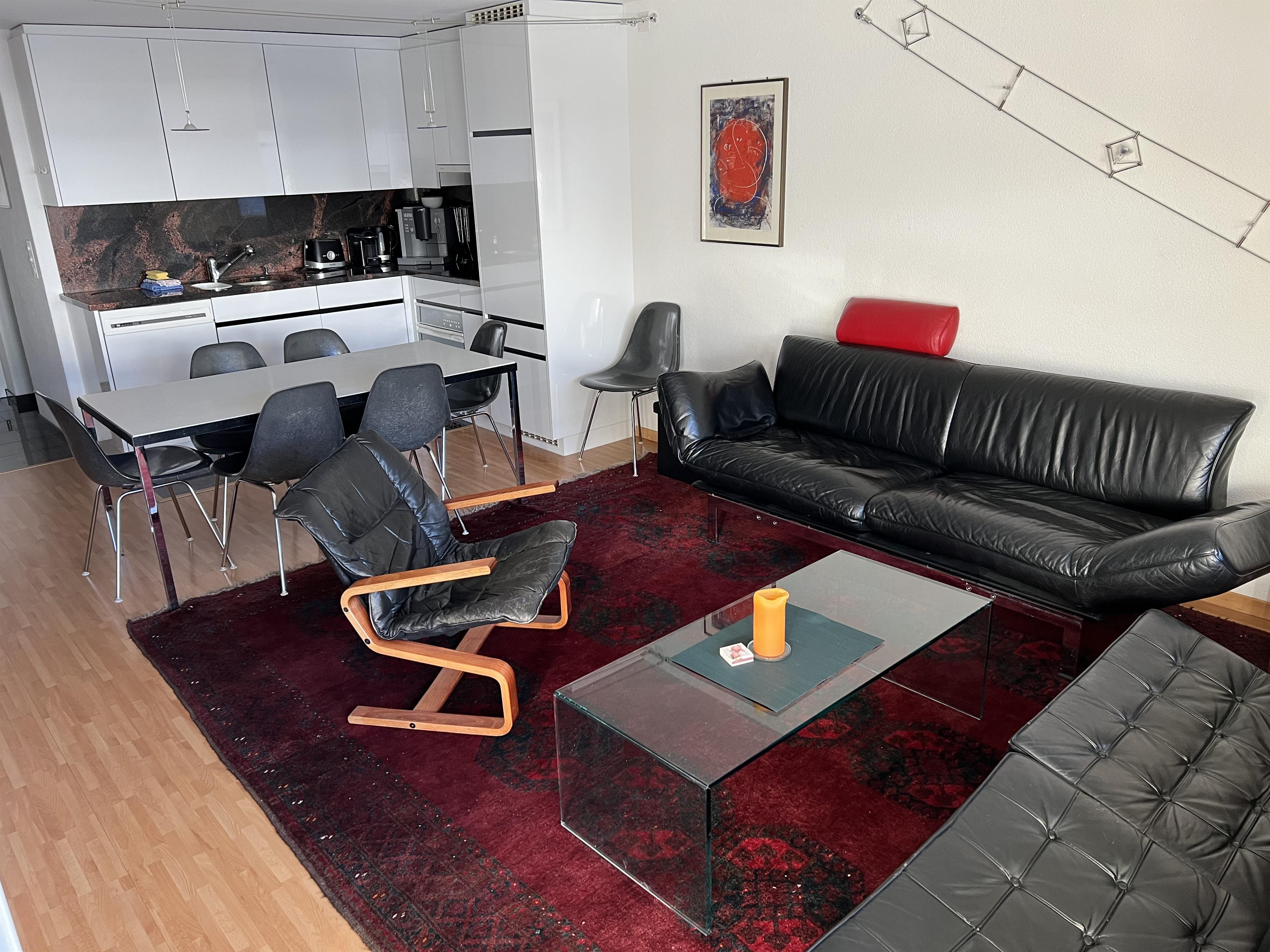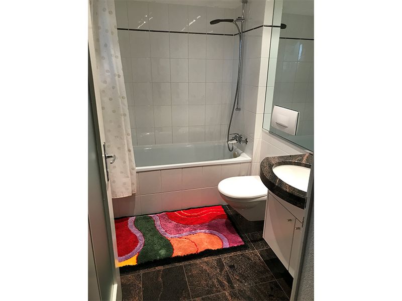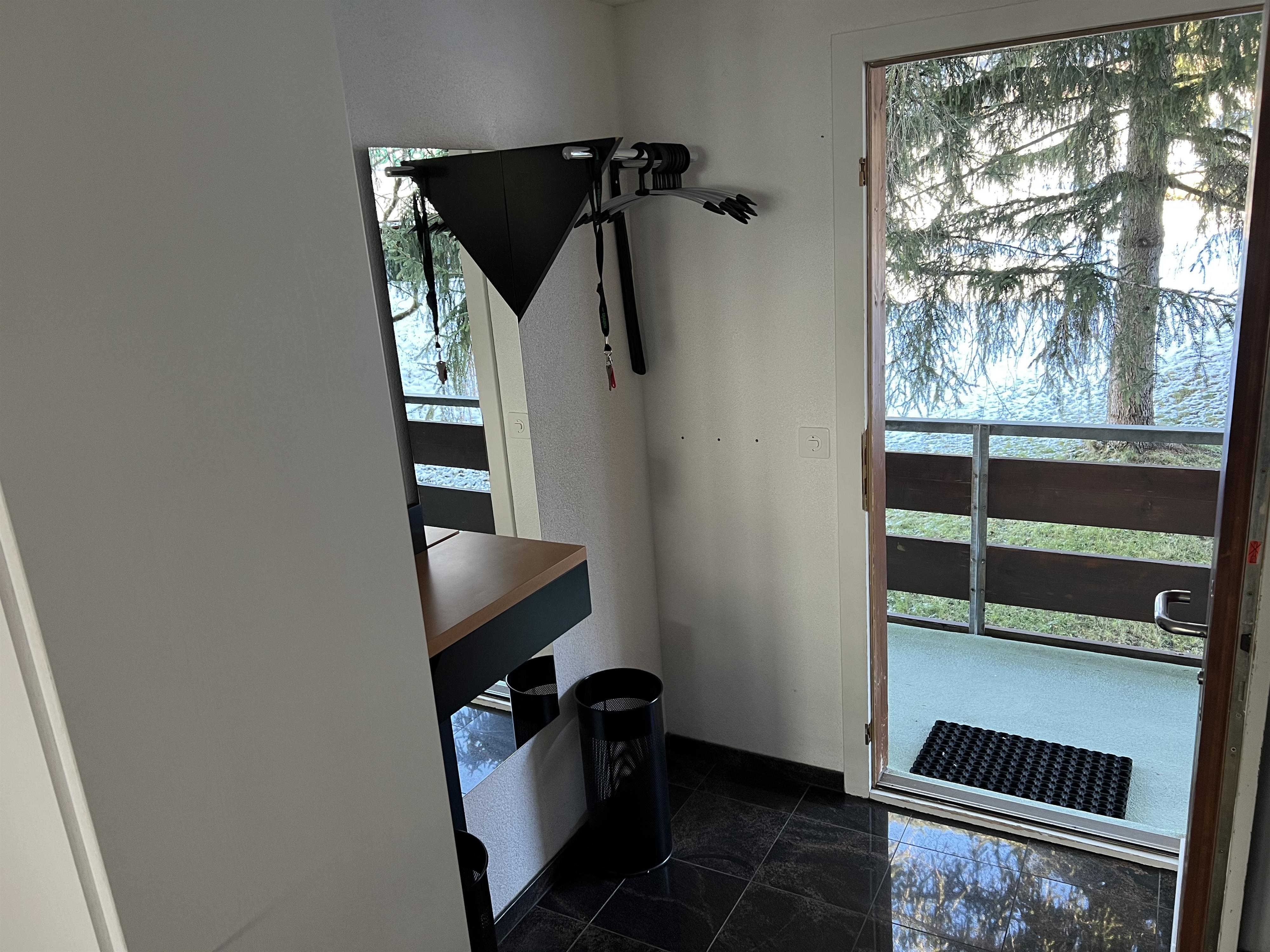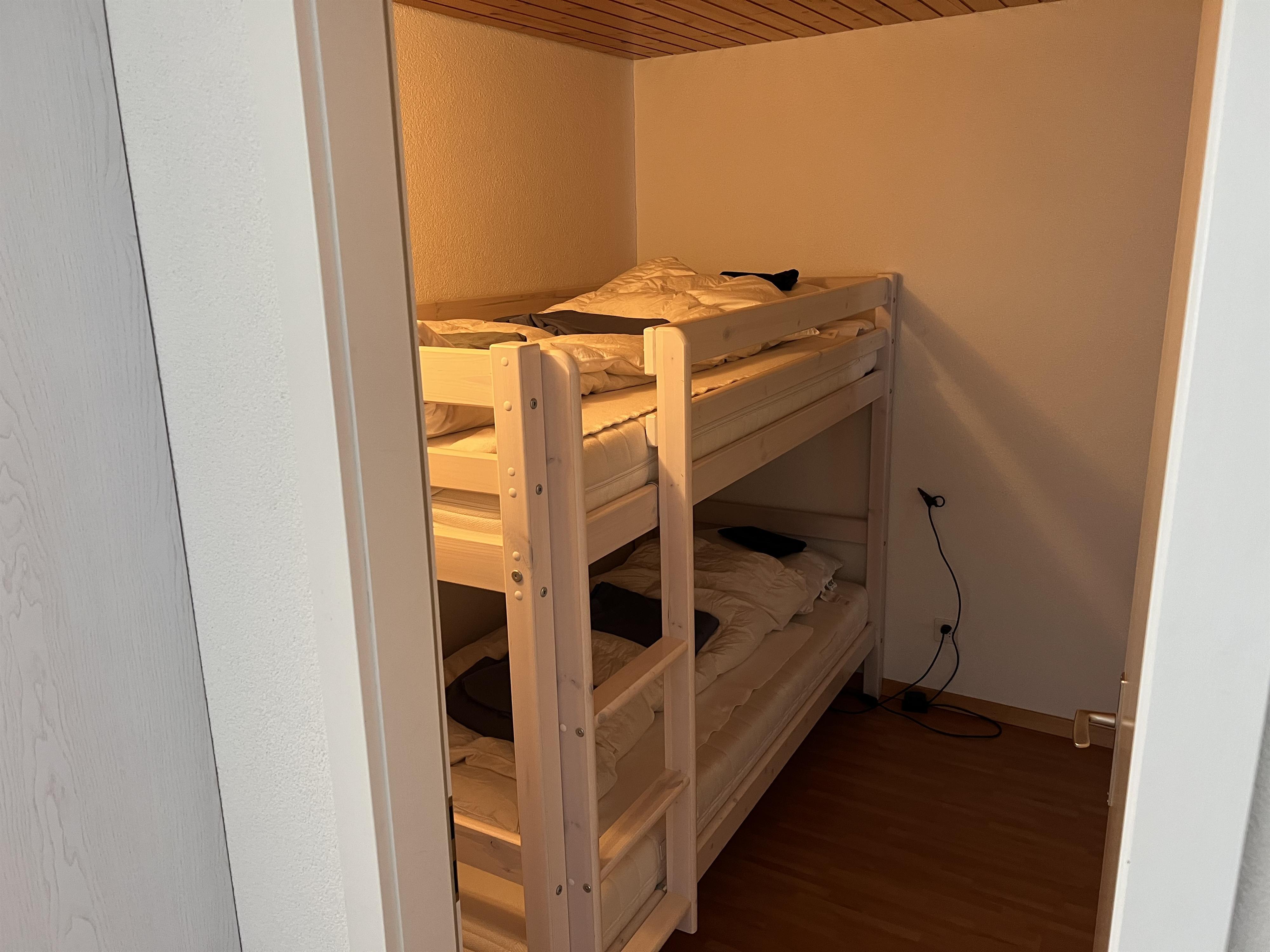 4 Zimmerwohnung ca. 65 m2 im 1. Stock in Mehrfamilienhaus. 1 Schlafzimmer mit 1 Doppelbett, 1 Schlafzimmer mit Französischem Bett und 1 Schlafzimmer mit Etagenbett, insgesammt 6 Betten. Bettwäsche, Küchentücher und Frottéewäsche vorhanden. Wohnküche mit Backofen, Kühlschrank, Geschirrspülmaschine, Kaffeemaschine, Wasserkocher, Mikrowelle und Toaster. Racletteofen und Fondue Caquelon. Bad/WC. Haartrockner. Haustiere nicht erlaubt. Nichtraucherwohnung. Waschmaschine und Wäschetrockner im Haus. Fernseher und Radio. Balkon. Parkplatz. Skiraum. Kinderspielplatz.