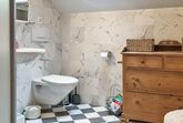 Badezimmer: Ein Badezimmer mit Dusche und Toilette.