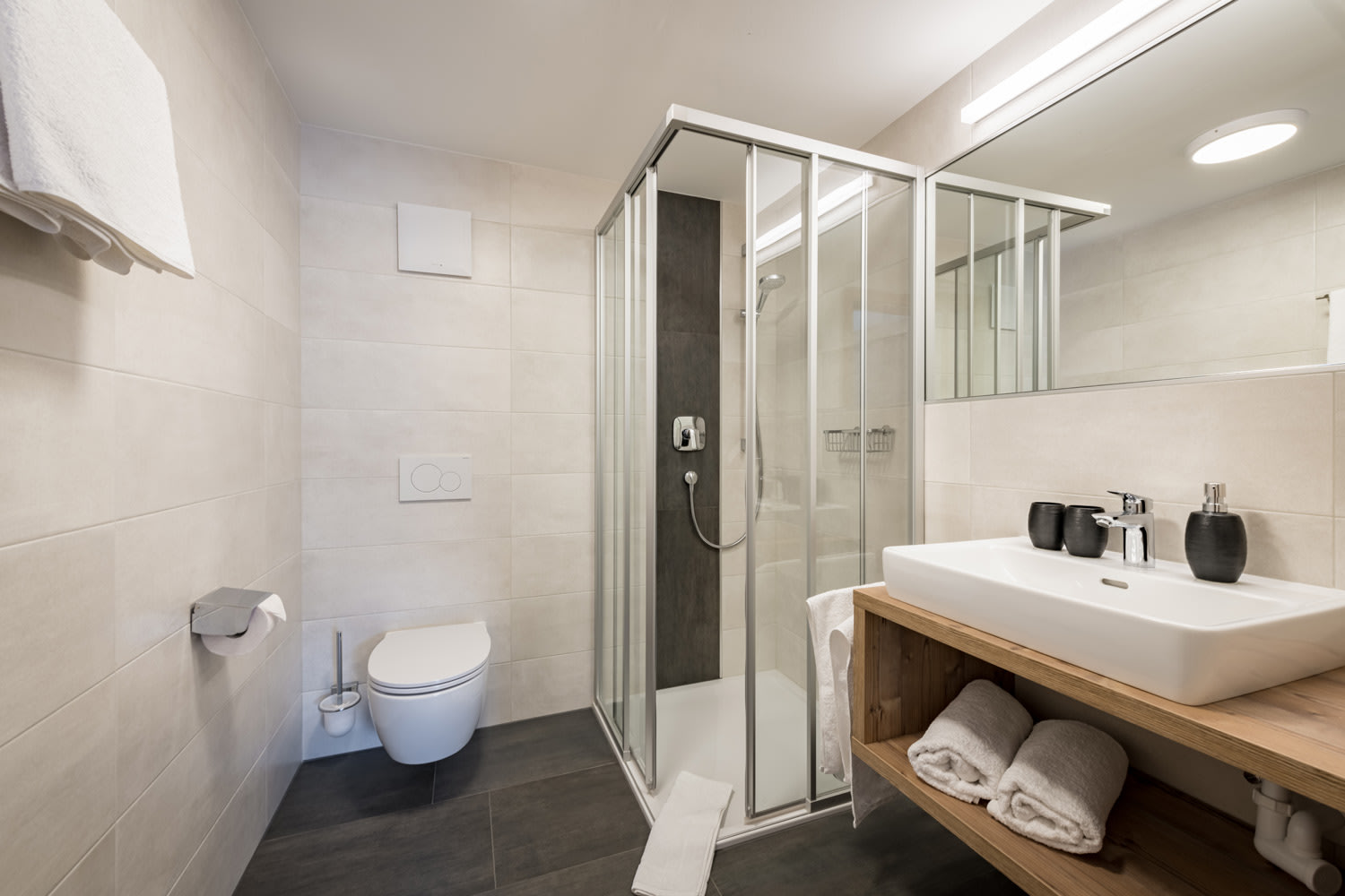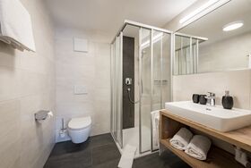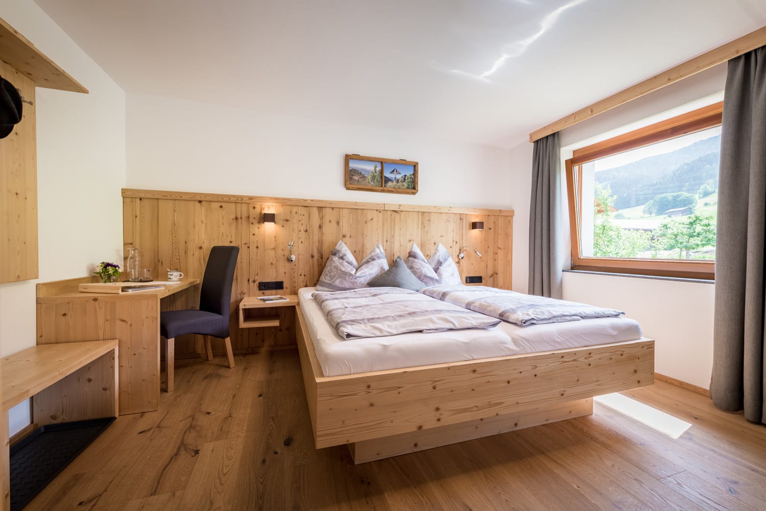 Gemütliches Doppelzimmer mit DU/WC, SAT-TV, Schreibtisch, Balkon, Verdunkelungsvorhänge und Fußbodenheizung.