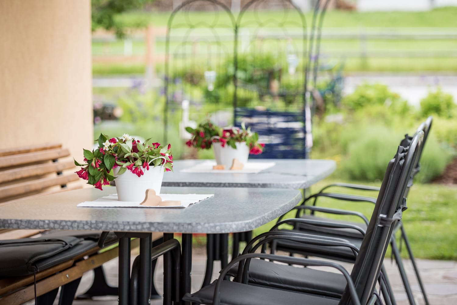 Ein schöner Obstgarten mit bäuerlicher Blumen- und Kräuterbepflanzung umgibt unser Nichtraucherhaus.