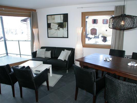 Die helle Wohnstube ist mit einem Schwedenofen (Holz steht zur Verfügung) und einem Flachbildfernseher mit SAT-Empfang ausgestattet. Von hier aus gelangt man zum Südbalkon (8 m2) mit tollem Blick auf den alten Dorfteil und auf die Unterengadiner Dolomiten. Die moderne Küche verfügt nebst einer Geschirrspülmaschine auch über eine Espresso-Kaffeemaschine (Kapselsystem Tassimo). Die 2 grosszügigen Schlafzimmer sind mit je 2 Einzelbetten mit Qualitätsmateratze & Lattenrost ausgestattet. Zwei sanitäre Räume (1 x Bad/WC/Lavabo + 1 x Dusche/WC /Lavabo) tragen zum hohen Wohnkomfort bei. Selbstverständlich stehen den Gästen ein reservierter Garagenplatz in der Autoeinstellhalle und ein Gratis-WLAN zur Verfügung.