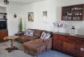 • Wohnzimmer mit Sofa Garnitur, Ausgang in den Garten