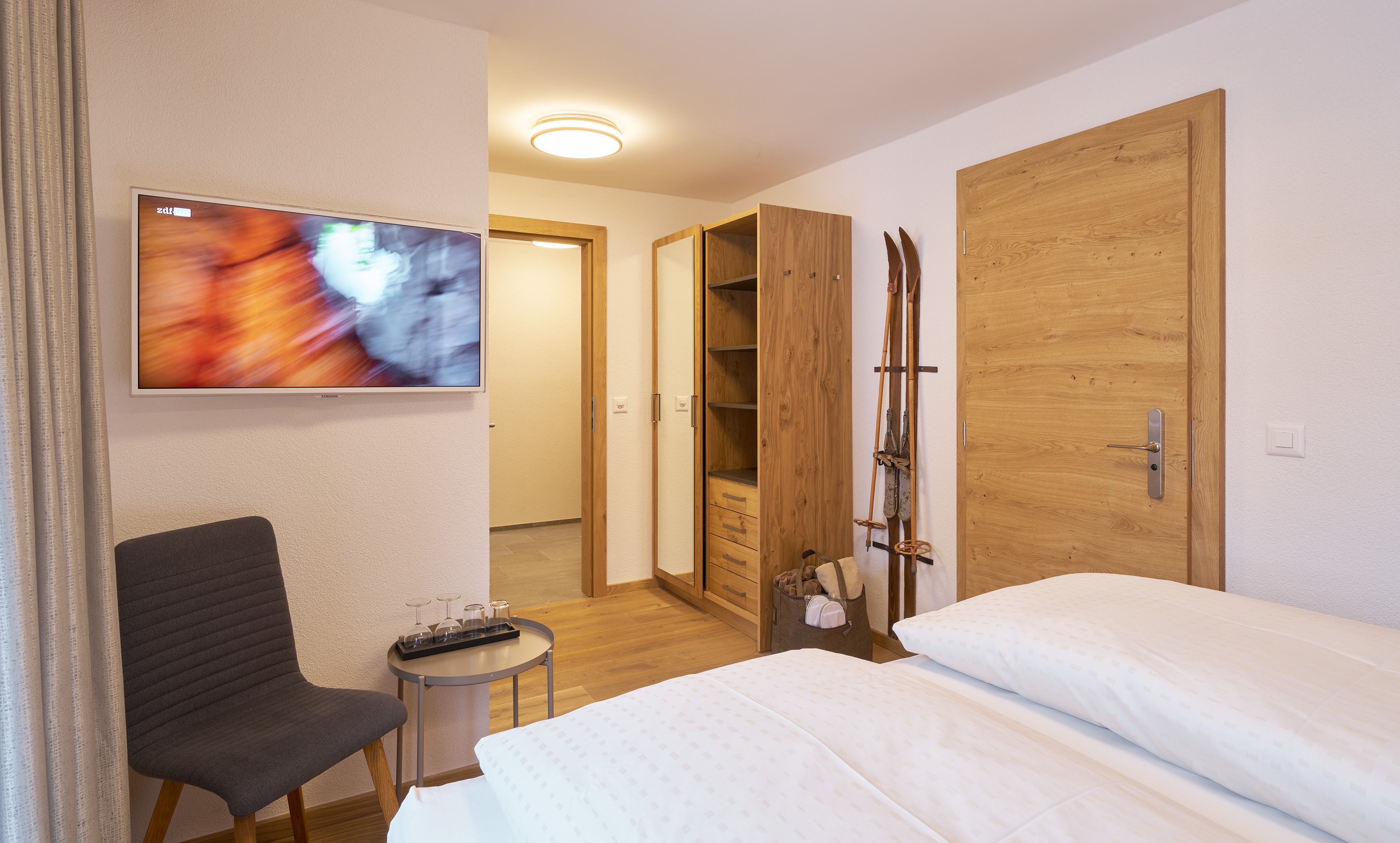 Unsere Grischuna Apartments sind im alpinen Chic gestaltet, befinden sich in der ersten und zweiten Etage und bieten komfortabel Raum für 4 Personen. Vom Balkon aus, ausgestattet mit Photovoltaikgeländer - geniessen Sie einen eindrücklichen Blick auf Dorf und Berge.