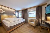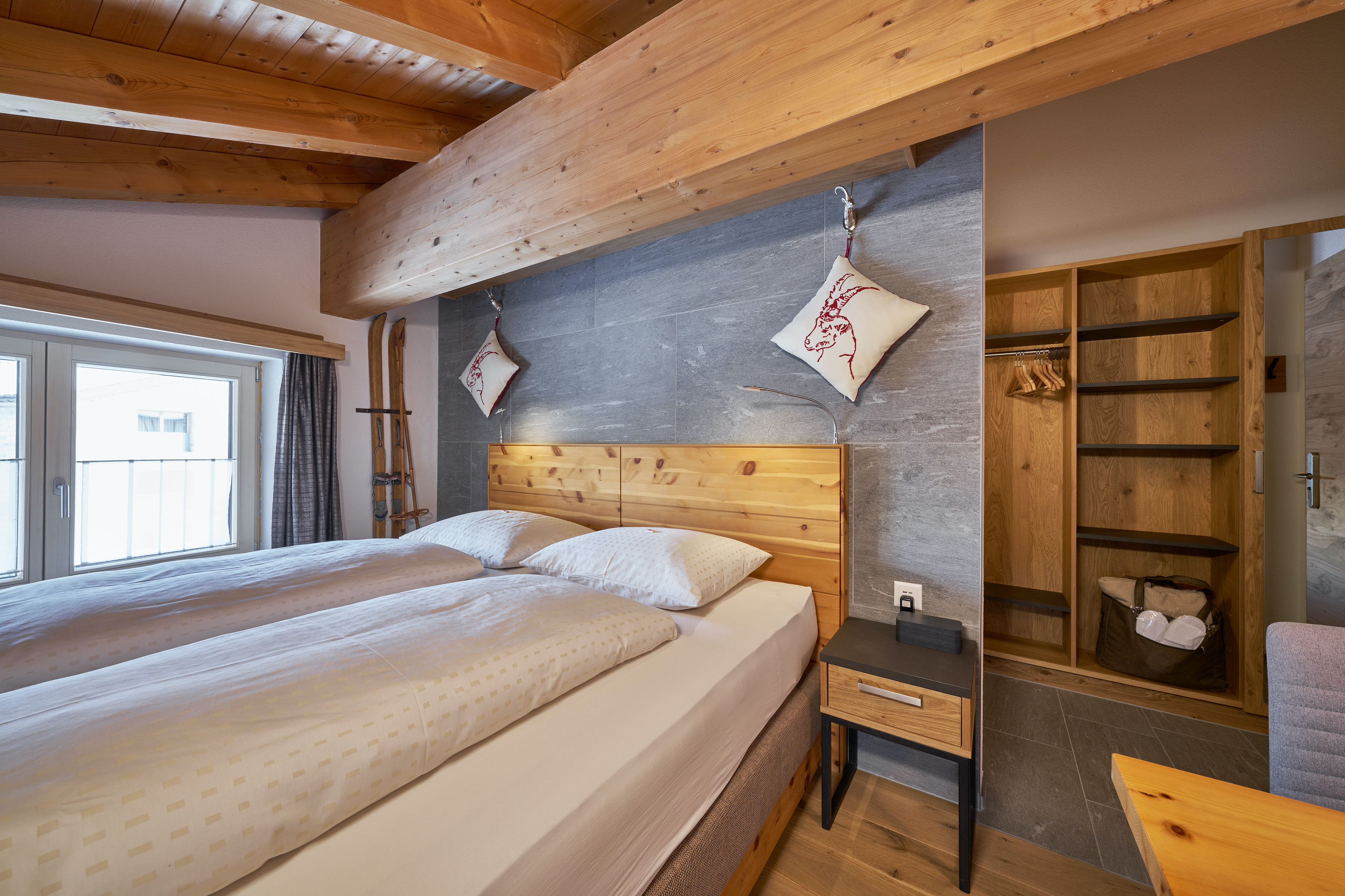Unsere grosszügigen Grischuna Apartments Superior sind im alpinen Chic gestaltet, befinden sich in der ersten und zweiten Etage und bieten komfortabel Raum für 4 Personen. Vom Balkon aus - ausgestattet mit Photovoltaikgeländer - geniessen Sie einen eindrücklichen Blick auf Dorf und Berge.