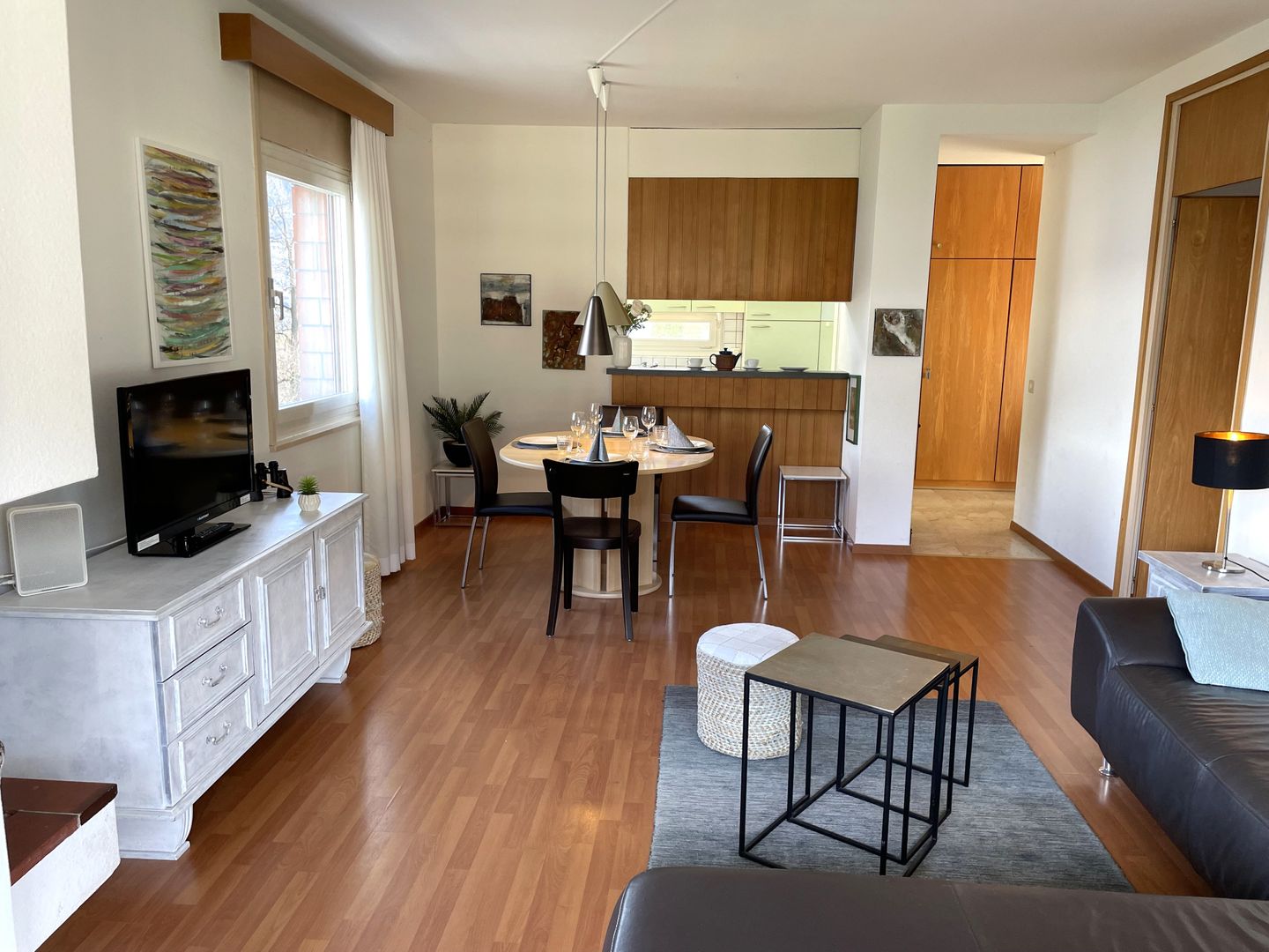 Die 3.5 Zimmer-Wohnung ist ideal für aktive Feriengäste und für Familien mit Kindern. Die Wohnung besteht aus einem Wohn- Esszimmer mit gemütlicher Sofagarnitur und Esstisch, sowie einer separaten, kleinen Küche mit praktischer Durchreiche.