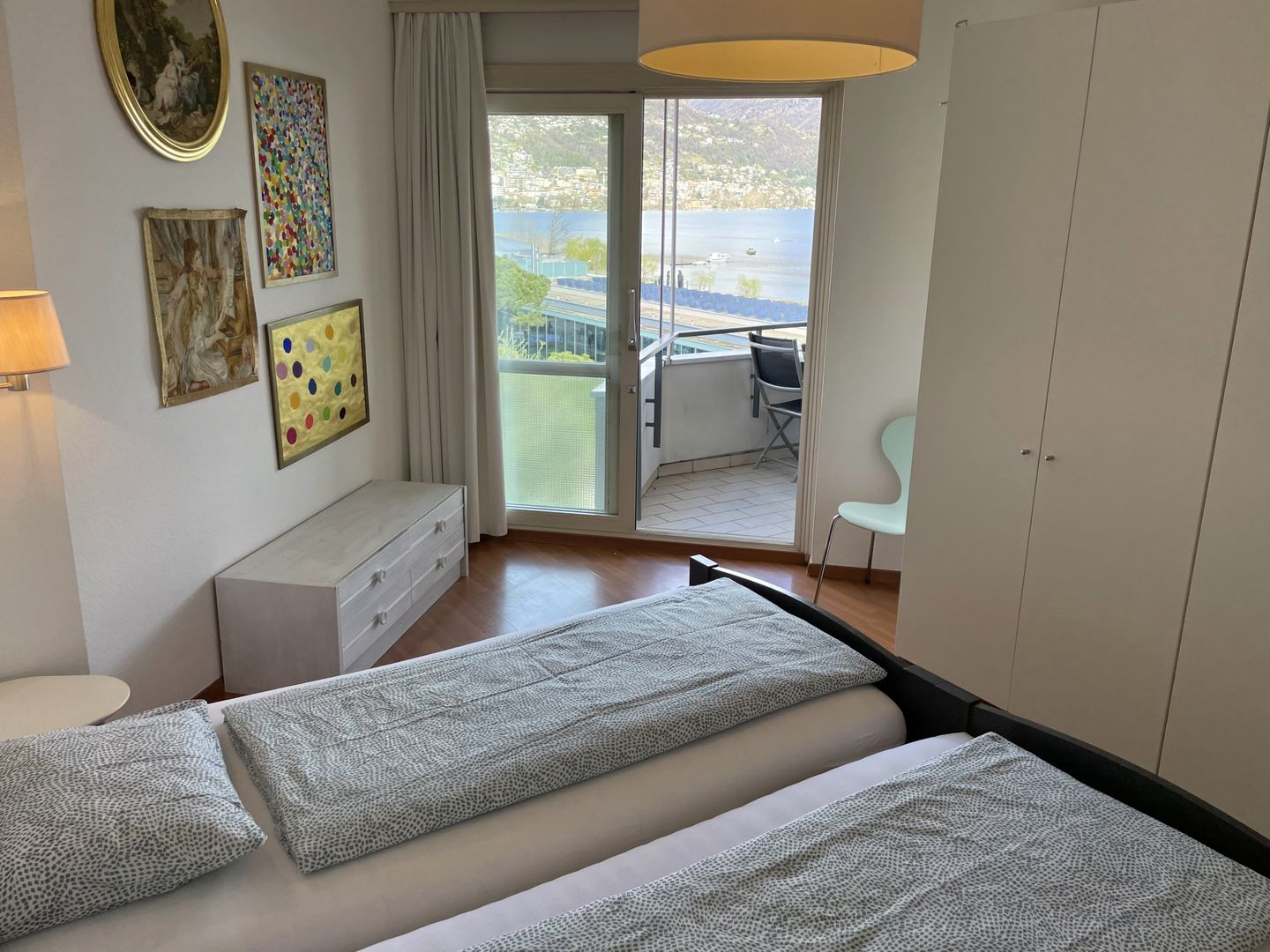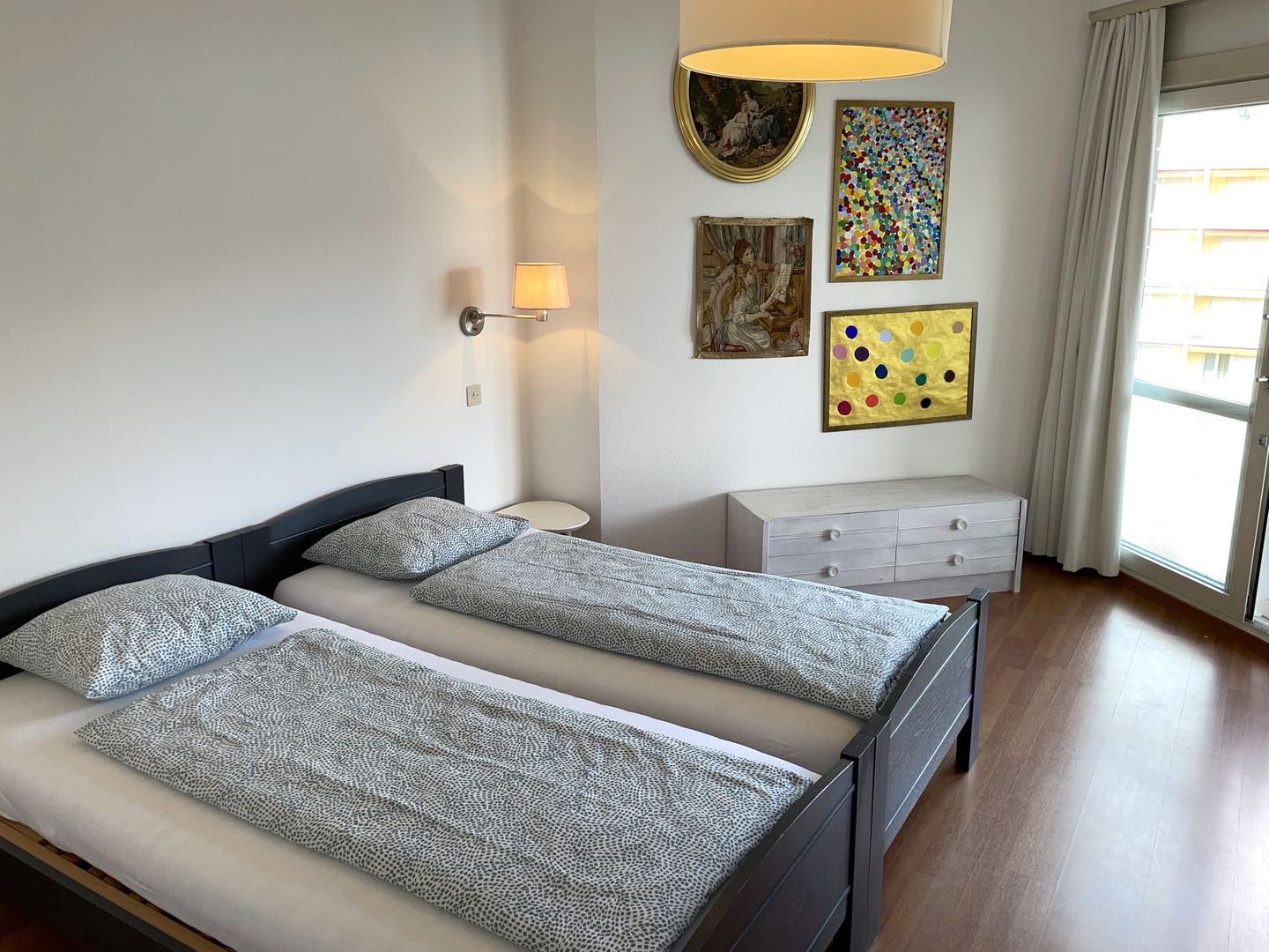 Weiters verfügt die Wohnung über ein Doppelschlafzimmer und ein Schlafzimmer mit zwei Einzelbetten, Bad/WC, sowie über ein separates WC. Vom Wohnzimmer und dem Hauptschlafzimmer haben Sie direkten Zugang auf den grosszügigen, möblierten Balkon von wo Sie eine fabelhafte Aussicht auf die Bucht von Locarno und auf das Badezentrum von Locarno geniessen. Ein Parkplatz in der Tiefgarage steht zur Verfügung.