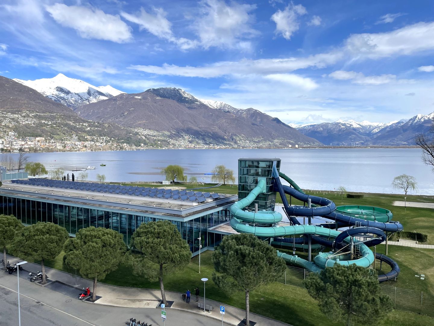 Die Wohnung befindet sich im obersten Stockwerk des Appartementhauses «Del Parco» gegenüber dem Strandbad Lido di Locarno mit Thermalbad und SPA Welt. Es führt ein schöner Fussweg am Seeufer entlang in die Stadt sowie in die Natur des Maggia Deltas, zum 9-Loch-Golfpaltz von Locarno und zum ruhigeren Strandbad del Popolo. Das Zentrum von Locarno erreichen Sie fussläufig in ca. 15 Minuten. Die Stadt hat einen ganz besonderen Charme und viele Sehenswürdigkeiten zur Auswahl. Die Seepromenade, die Piazza Grande, sowie die schöne Altstadt und die Nähe zu Ascona ziehen die Gäste immer wieder an. Eine Bushaltestelle befindet sich direkt vor dem Haus.