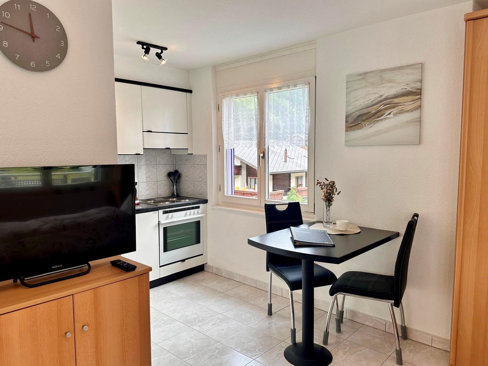 Abstellraum, Backofen, Balkon, Balkonmöbel, Bettwäsche vorhanden, Bügeleisen, Doppelbett, DVD-Player, Elektroherd, Fernseher, Feuerlöscher, Fondue-Set, Gefrierfach, Gefriermöglichkeit, Geschirrspülbecken, Haarföhn, Handtücher vorhanden, Haustiere mit Rücksprache gestattet, Kaffee-Maschine, Kindersicherungen für Steckdosen, Kühlschrank, Neuwertiges Zimmer/App., Ohne Teppich, Raclette-Set, Radio, Ruhiges Zimmer/Appartement, Satellitenfernsehen, Sitzgruppe, Studio, Tisch- und Küchenwäsche, Toaster, Toilettenwäsche, Trockner, Video/DVD, Waschmaschinenbenutzung, Wasserkocher, WiFi, Wohn-/Schlafräume kombiniert, Wohnküche