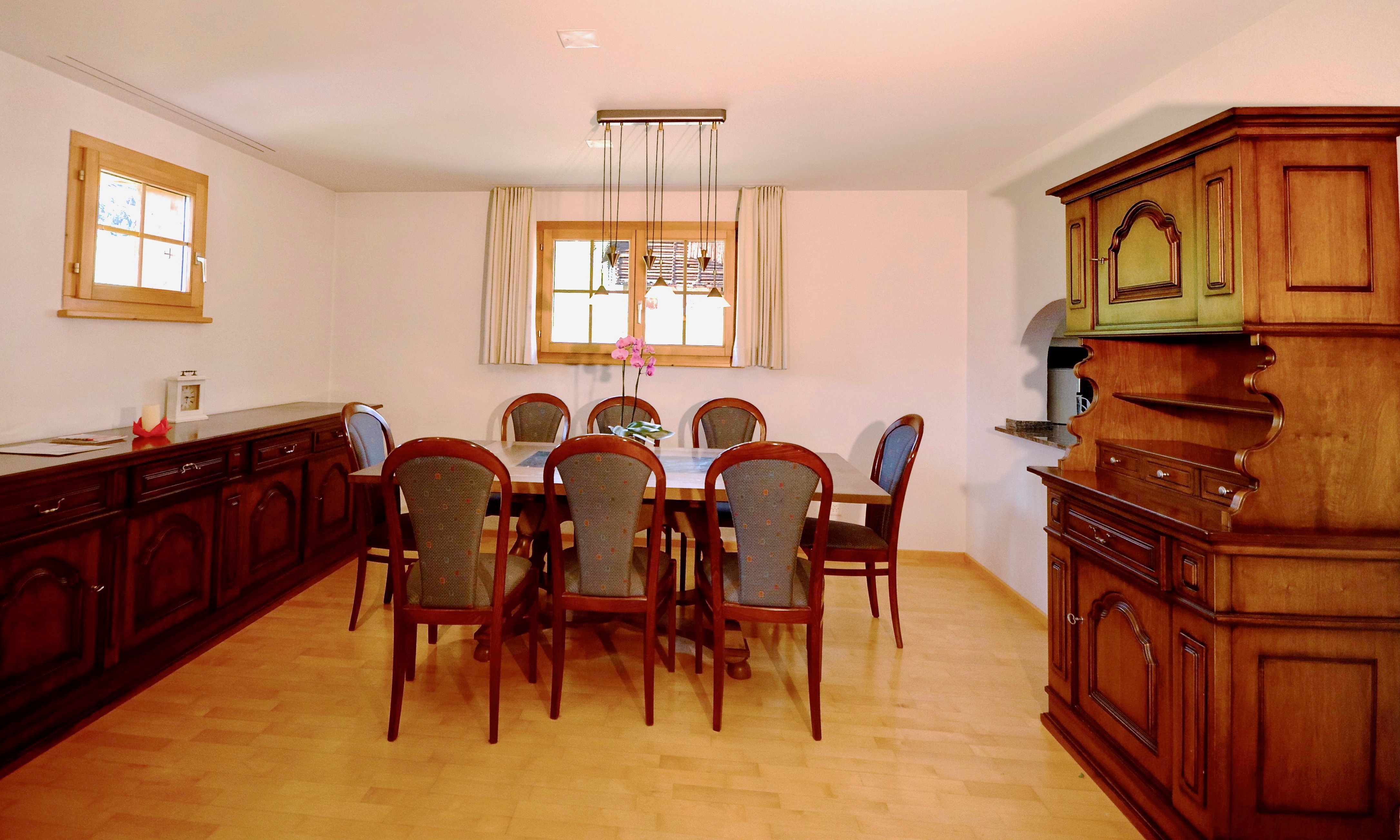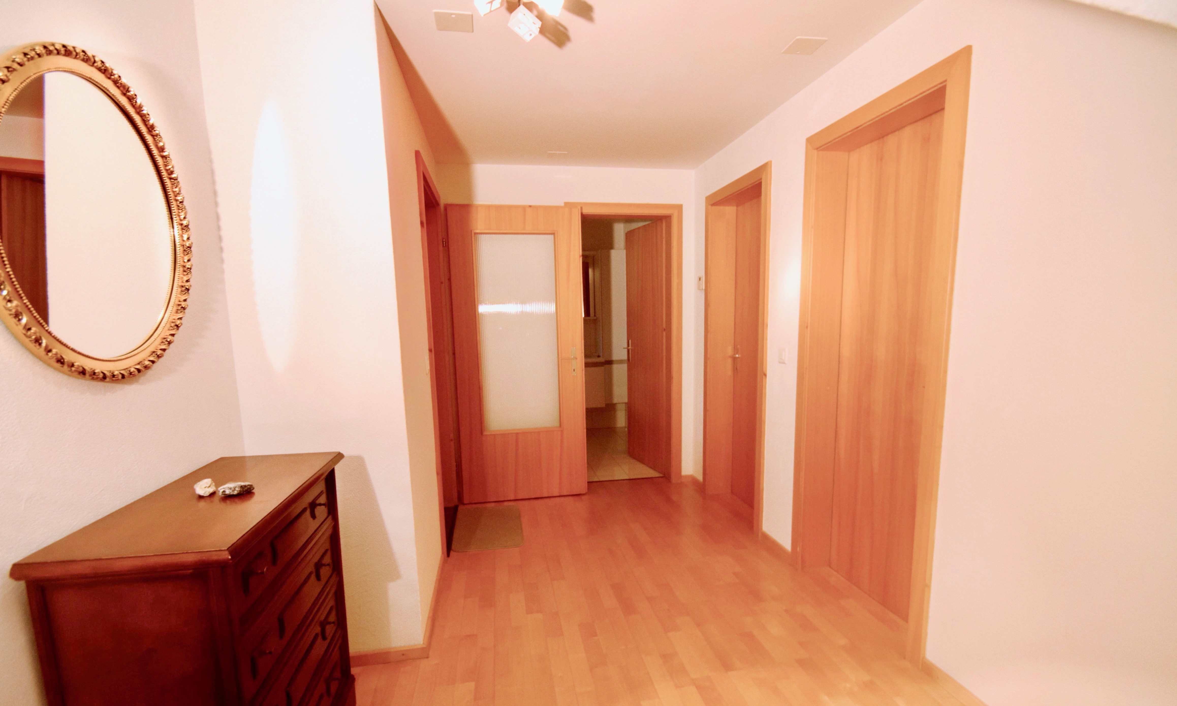 Helle, schön möbilierte 5 1/2 Zimmer-Maisonette-Wohnung auf zwei Stockwerken mit schöner Küche mit grossem Kühl- und Tiefkühlschrank. Durchreiche zum Esszimmer. Wohnzimmer mit 8 Sitzgelegenheiten, TV, Stereoanlage. Internet und W-LAN sind vorhanden. Balkon mit Südsicht. 2 Schlafzimmer mit je 2 Einzelbetten, 1 Schlafzimmer mit Französischem Bett, 1 Schlafzimmer mit Doppelbett, 1 Bad, separates WC, sowie Dusche/WC im oberen Stock. Auf Anfrage Kinderbett vorhanden (im Preis inbegriffen). Bodenbelag: Parkett, Steinplatten, Oberer Stock Spannteppich