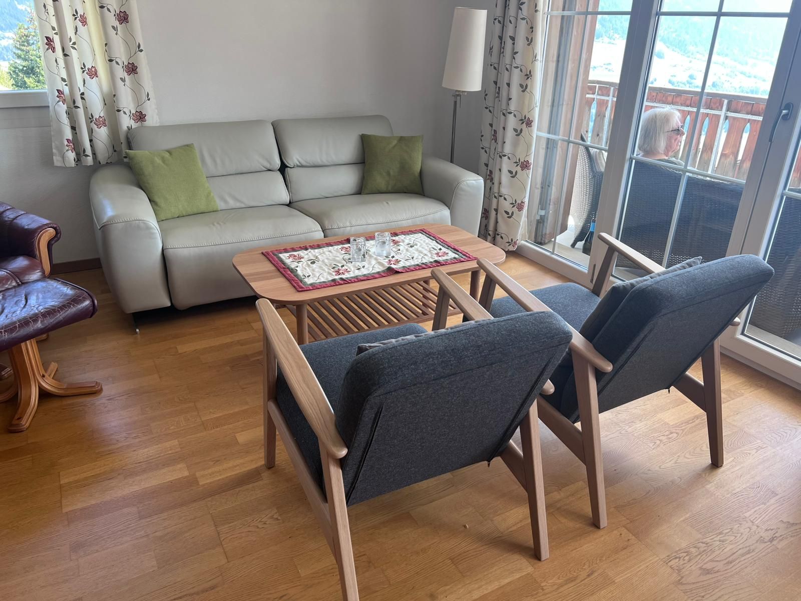 Helles Wohnzimmer mit gemütlichen Sofas, Schwedenofen und Balkonzugang, Flachbild-TV mit Swisscom TV und DVD-Player, Radio, Spiele. WIFI kostenlos vorhanden.Küche: