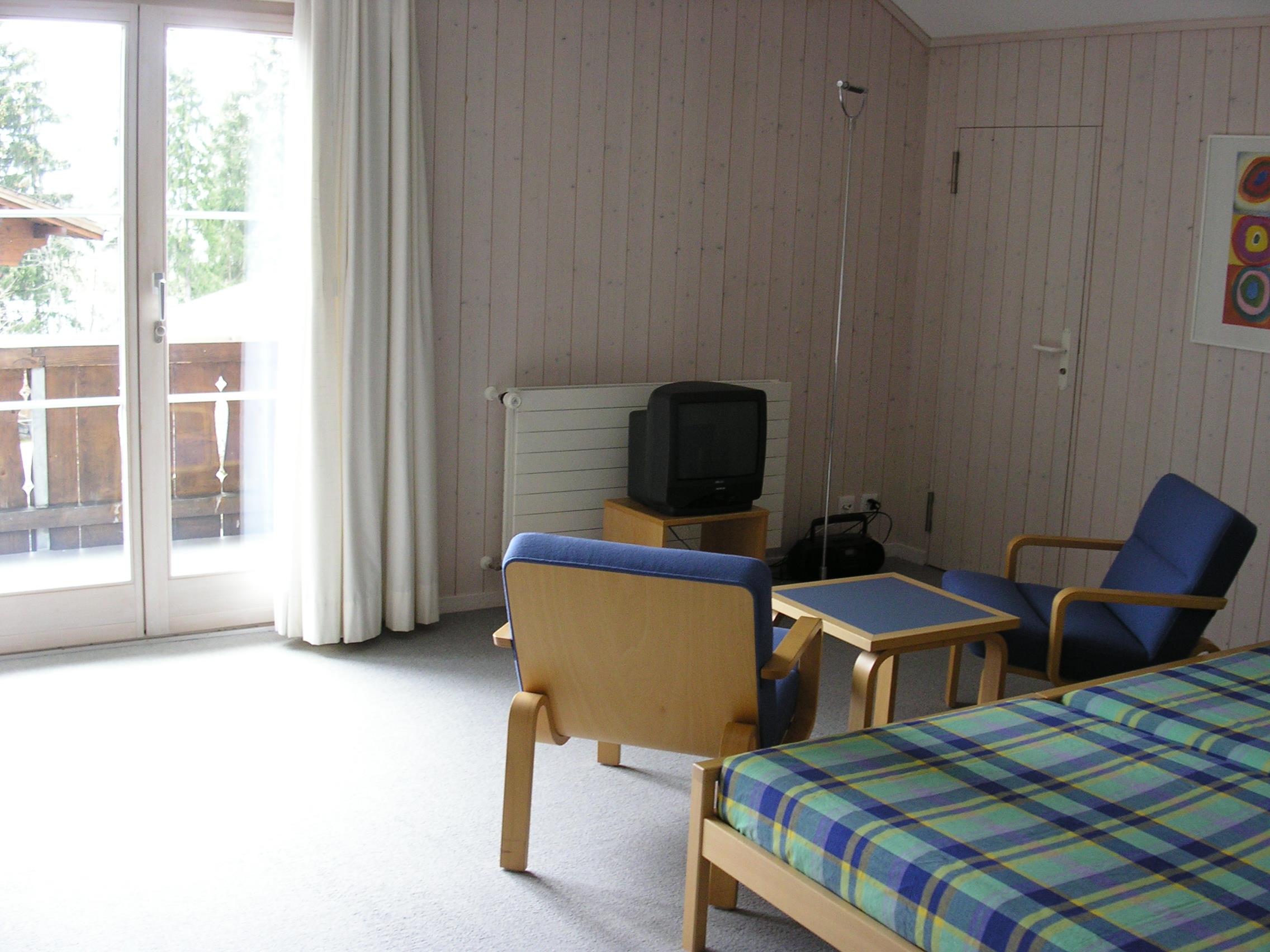 1,5-Zimmerwohnung (47m2) im 3. Stock eines 1960 erbauten Chalets. Schöne, sonnige Lage mit Ausblick auf die Berge. Grosse Liegewiese (nicht zur alleinigen Benutzung). 10 Gehminuten bis zu den Bergbahnen. Wenige Schritte vom Ortszentrum mit guten Einkaufsmöglichkeiten. Waschmaschine und Wäschetrockner stehen zur gemeinschaftlichen Benutzung zur Verfügung.