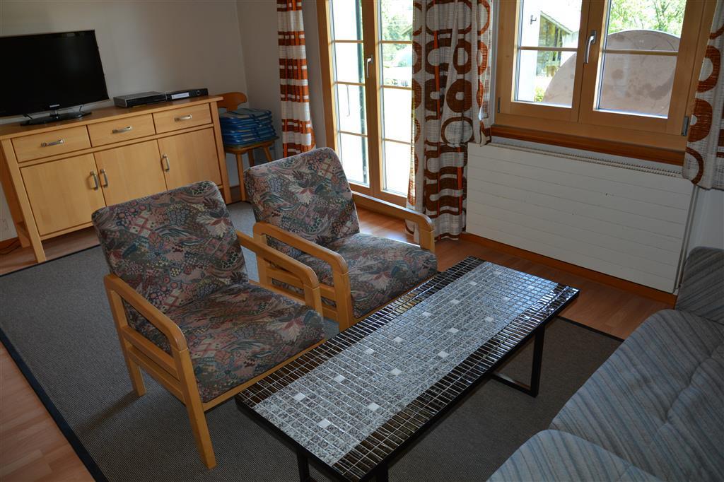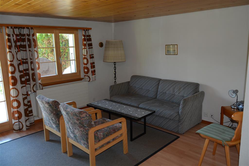 3-Zimmerwohnung (56m2) im Erdgeschoss eines 3-Familienhauses. Garten mit Liegewiese und möbliertem Gartensitzplatz. Ruhige und sonnige Lage mit herrlicher Aussicht aufs Saanenland. Parkplatz vorhanden.