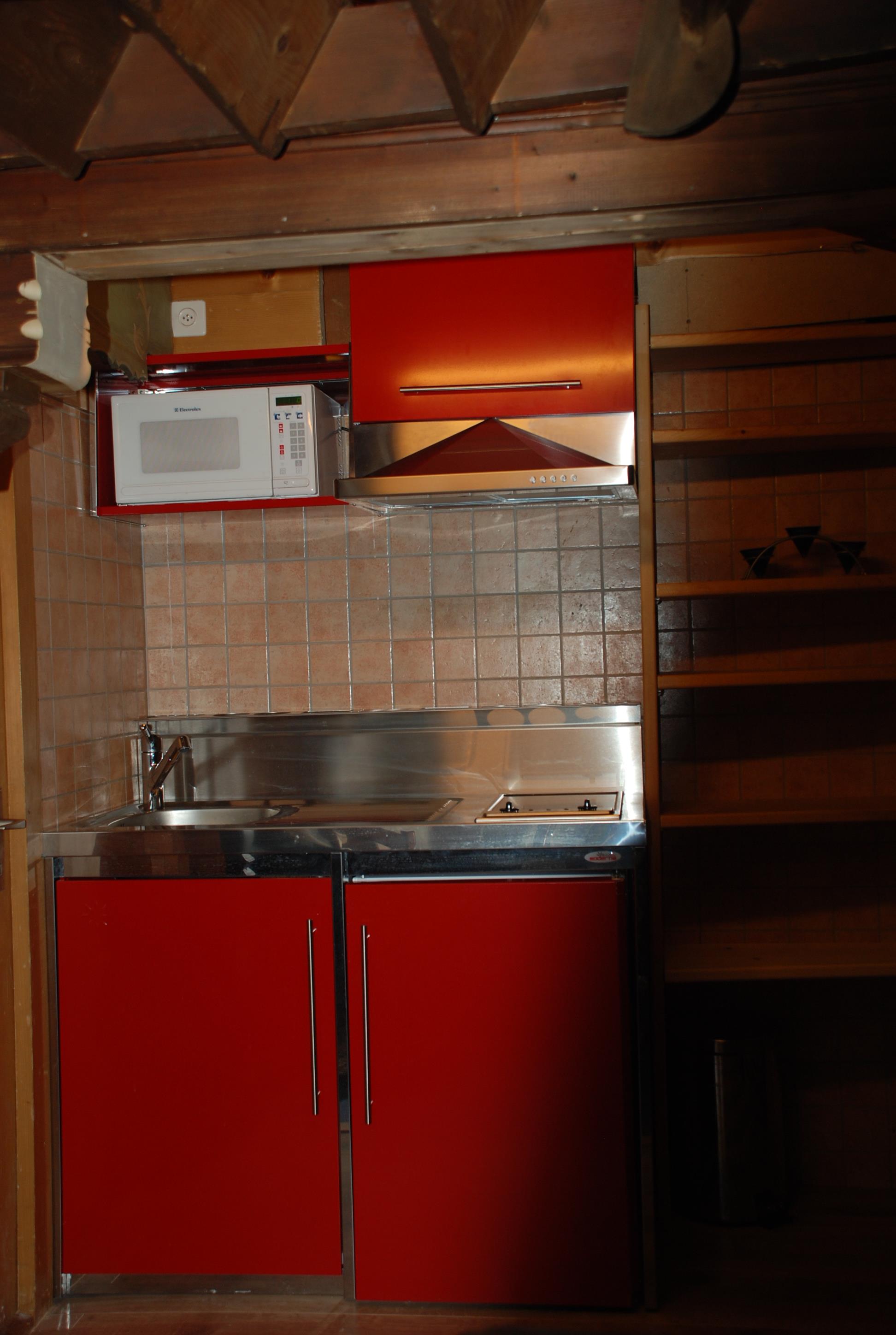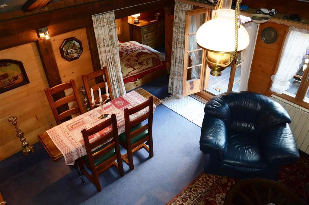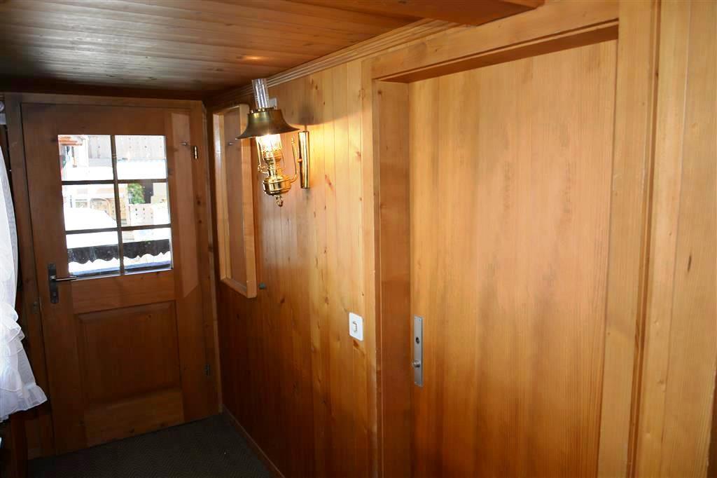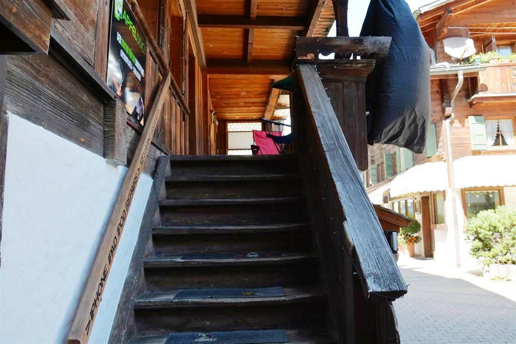 Wohn-/Esszimmer mit 2 Sesseln, Salontisch, Esstisch und Flachbildschirm-TV. WiFi. Kleine offene Küche mit Kitchenette (2 Herdplatten, Kapsel-Kaffeemaschine (Nespresso), Fondue- und Raclette-Set). Ein vom Wohnzimmer mit einem Vorhang abgetrenntes kleines Schlafzimmer in Dachschräge mit Doppelbett (180x200cm), kleinem Schrank und Kommode. 2 Einzelbetten (90x190cm) auf der Galerie (nicht für Kleinkinder geeignet). Eine schmale Klapptreppe ohne Geländer führt auf die Galerie. 1 Badezimmer mit WC und Dusche. Kleiner Balkon mit Gartenmöbeln, Abstellraum für Ski- und Sportgeräte.