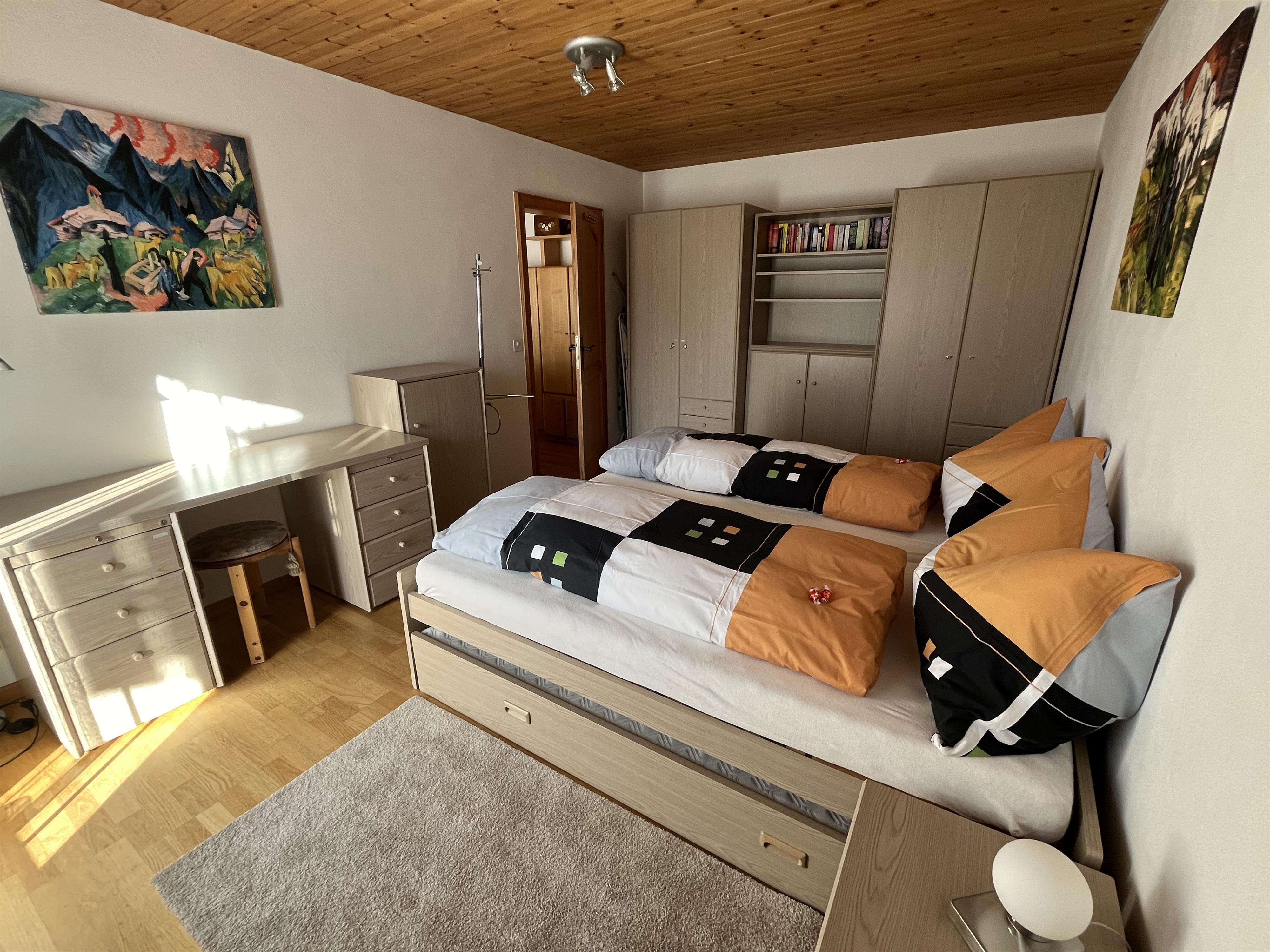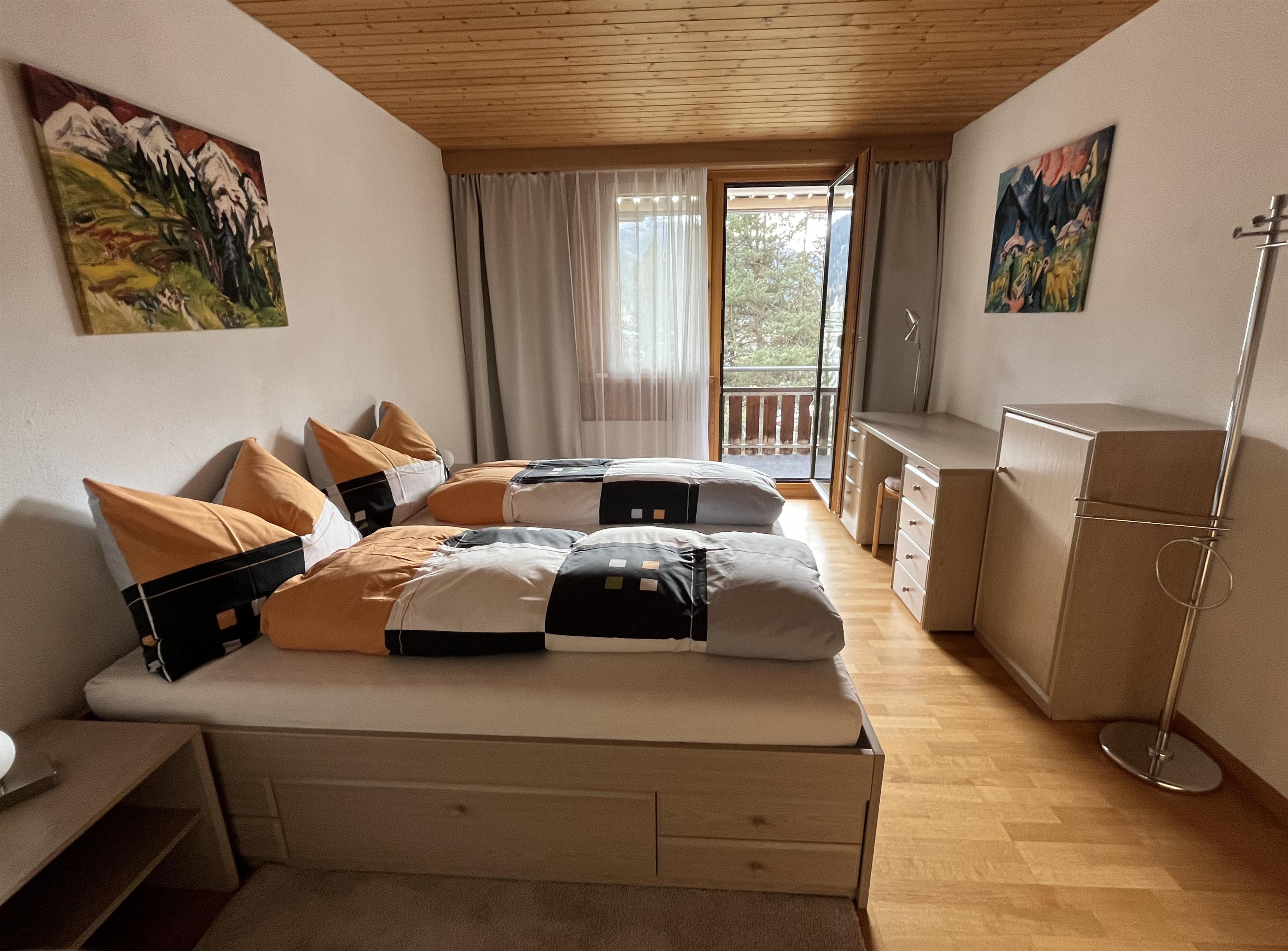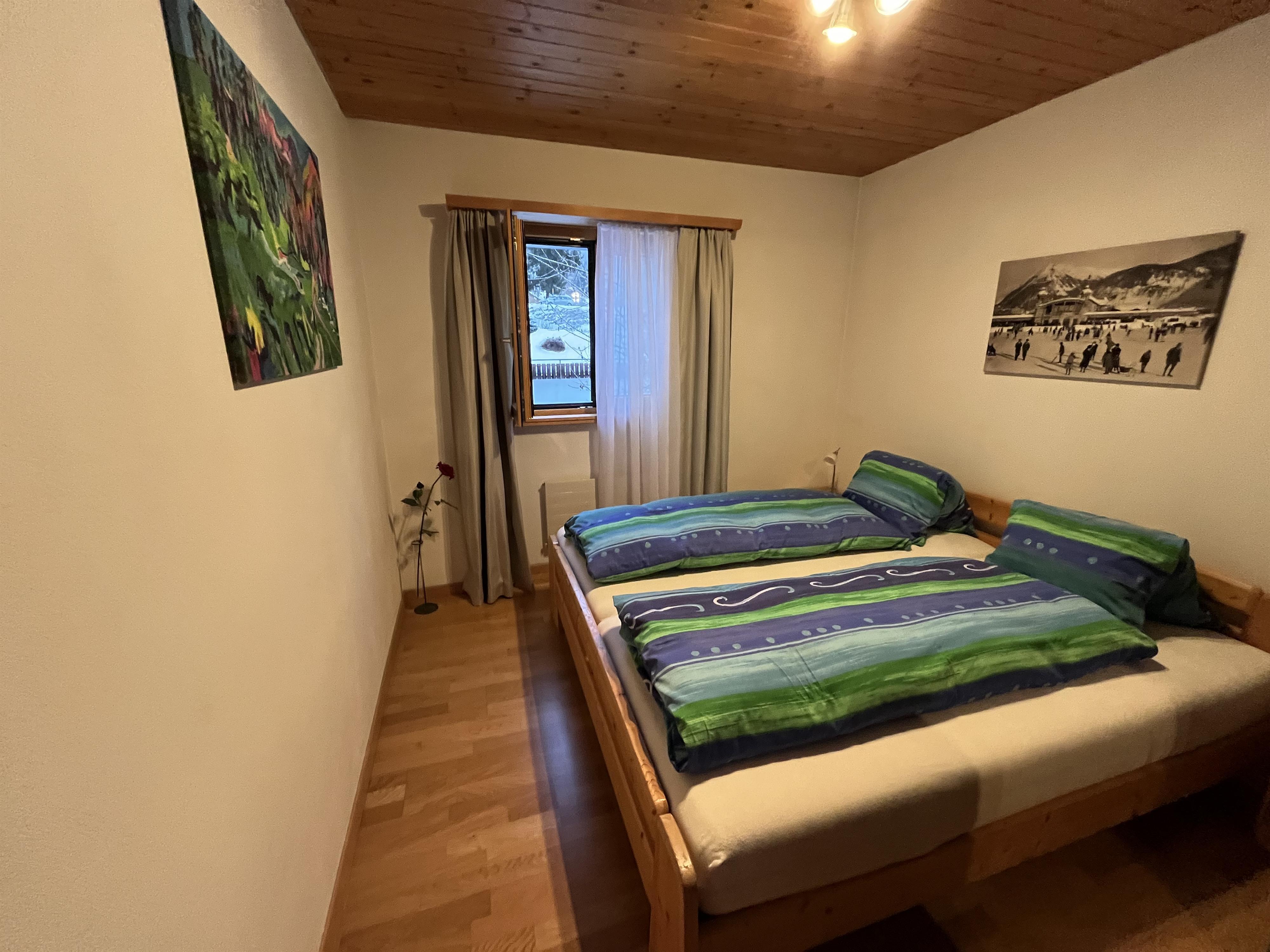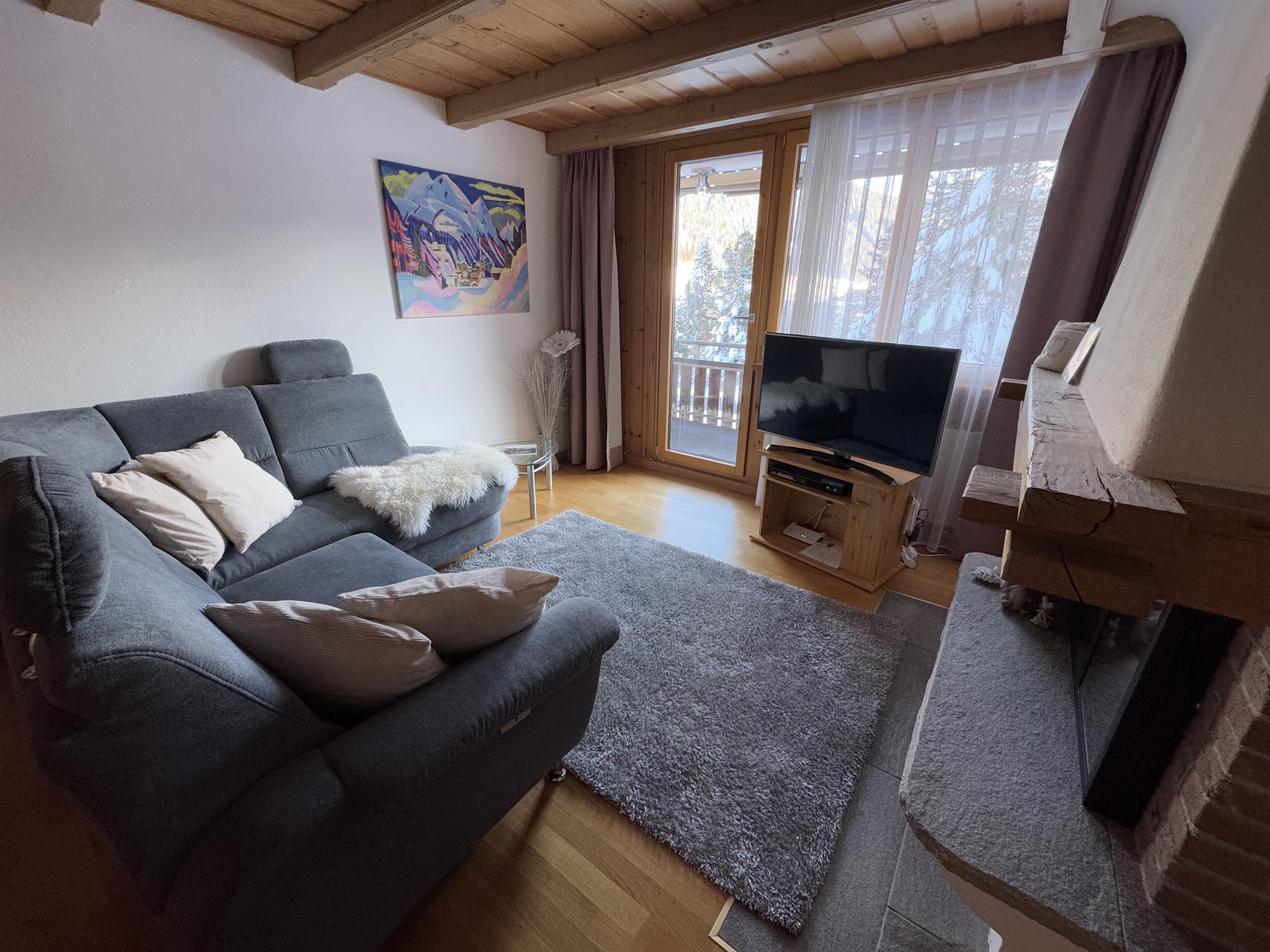 Schöne helle, gepflegte und allergikerfreundliche 3 ½-Zimmerwohnung (74 m2) mit Cheminée, grossem sonnigen Südbalkon und freier Panoramasicht in die traumhafte Davoser Bergwelt an ruhiger und dennoch zentraler Lage. Das Zentrum mit Einkaufsmöglichkeiten, Restaurants etc. sowie die Langlaufloipen liegen in Gehdistanz. Wander- und Bikewege beginnen direkt vor der Haustüre. Alle Bergbahnen sowie Kongresszentrum, Hallenbad, Eisstadion, Bahnhof etc. sind mit dem Bus innert weniger Minuten bequem erreichbar. Die gut frequentierte Busstation „Spital“ erreichen Sie in knapp zwei Gehminuten. Die gemütliche Nichtraucherwohnung eignet sich für vier Personen, verfügt über gratis WLAN und ist hervorragend ausgestattet. Wohnzimmer mit offenem Kamin, Esstisch, Sofa, Kabel-TV, DVD- und CD-Player, Radio, Spiele. Wohn-Essküche komplett eingerichtet inkl. Geschirrspüler, Glaskeramikherd, Backofen, Mikrowelle, Kaffeemaschine, Toaster, Eierkocher, Saftpresse; Fondue- und Raclette-Geschirr etc. Ein Schlafzimmer mit Doppelbett, ein Schlafzimmer mit zwei Einzelbetten (wahlweise als Doppelbett) und Pult. Südbalkon mit Relaxliegen, Stühlen und Balkontisch. Bad/WC mit Badewanne. Waschmaschine, Tumbler, Ski- und Veloraum zur Mitbenützung. Bügeleisen, Haartrockner. Haustiere sind nicht erlaubt. Parkplatz oder Garage inklusive (Einzelgarage (H 2.08m, B 2,20m, T 4,80m)