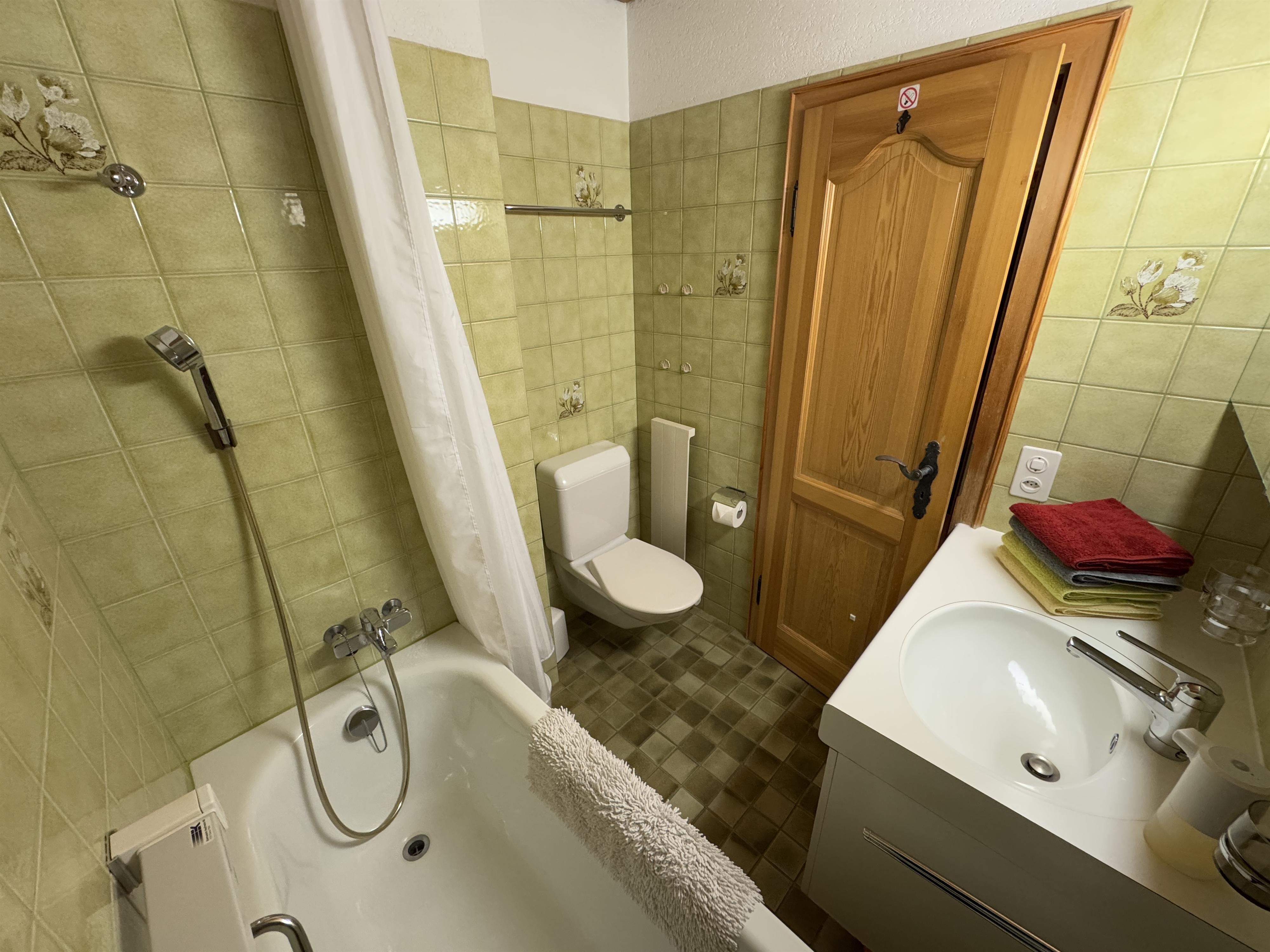 Bad, WC, Badewanne, Badezimmer Anzahl: 1, Fließendes Kalt- und Warmwasser, Fön/Haartrockner, WC