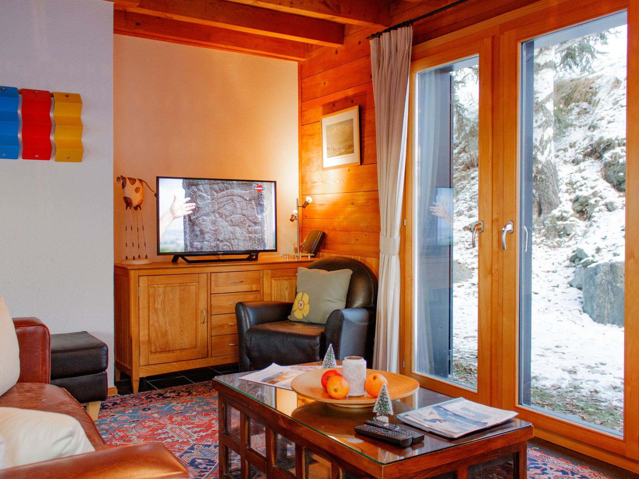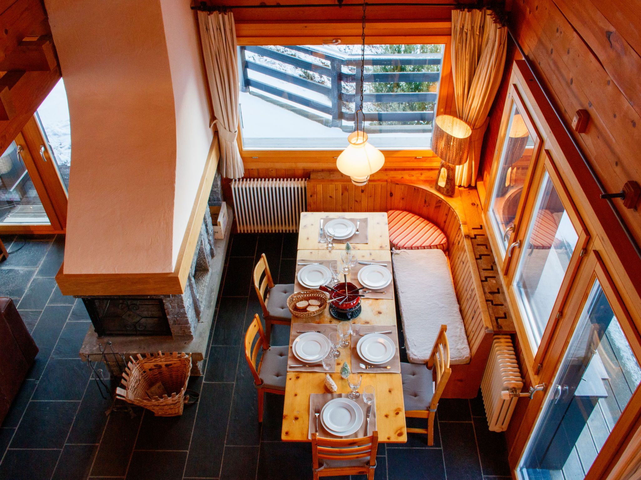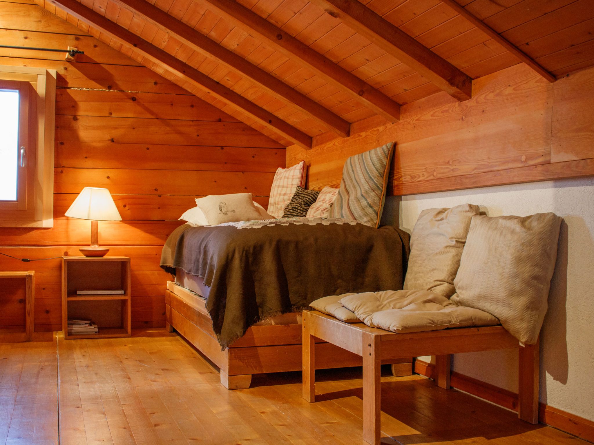 Crettamour, 5-Zimmer-Chalet 170 m2 auf 3 Stockwerken. Komfortabel und geschmackvoll eingerichtet: Eingang. Wohn-/Esszimmer mit offenem Kamin, Kabel-TV und DVD. Ausgang zur Terrasse. Offene Küche (Backofen, Geschirrspüler, 4 Glaskeramikplatten, Toaster, Wasserkocher, Mikrowelle, elektrische Kaffeemaschine, Kapseln für die Kaffeemaschine (Nespresso) extra, Racletteofen, Fondue Set (Käse)). Dusche/WC. Heizung. Unteres Geschoss: 1 Zimmer mit 2 Betten (75 cm, Länge 190 cm). 1 Zimmer mit 1 franz. Bett (1 x 160 cm, Länge 200 cm). 1 Zimmer mit 2 Betten (90 cm, Länge 190 cm). Bad/WC. Obergeschoss: 1 Zimmer mit 2 Betten (90 cm, Länge 190 cm). Balkon, Nordlage, grosse Terrasse, Westlage. Terrassenmöbel, Gartengrill. Sehr schöne Sicht auf die Berge und das Tal. Zur Verfügung: Waschmaschine, Wäschetrockner, Kinderhochstuhl, Babybett bis 2 Jahre. Internet (WLAN, gratis). Parkplatz (2 Autos) in 50 m. Bitte beachten: Nichtraucher-Unterkunft.
