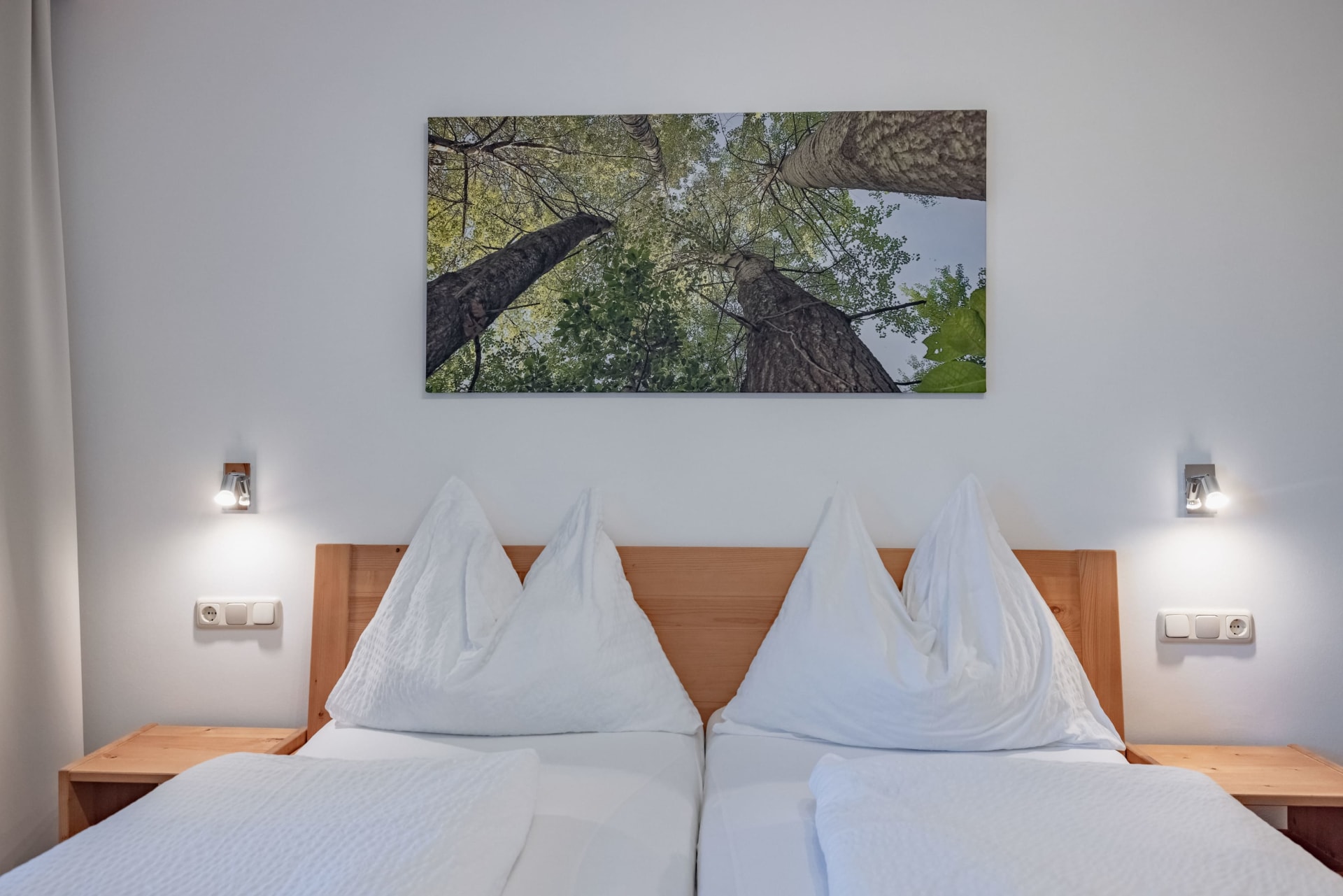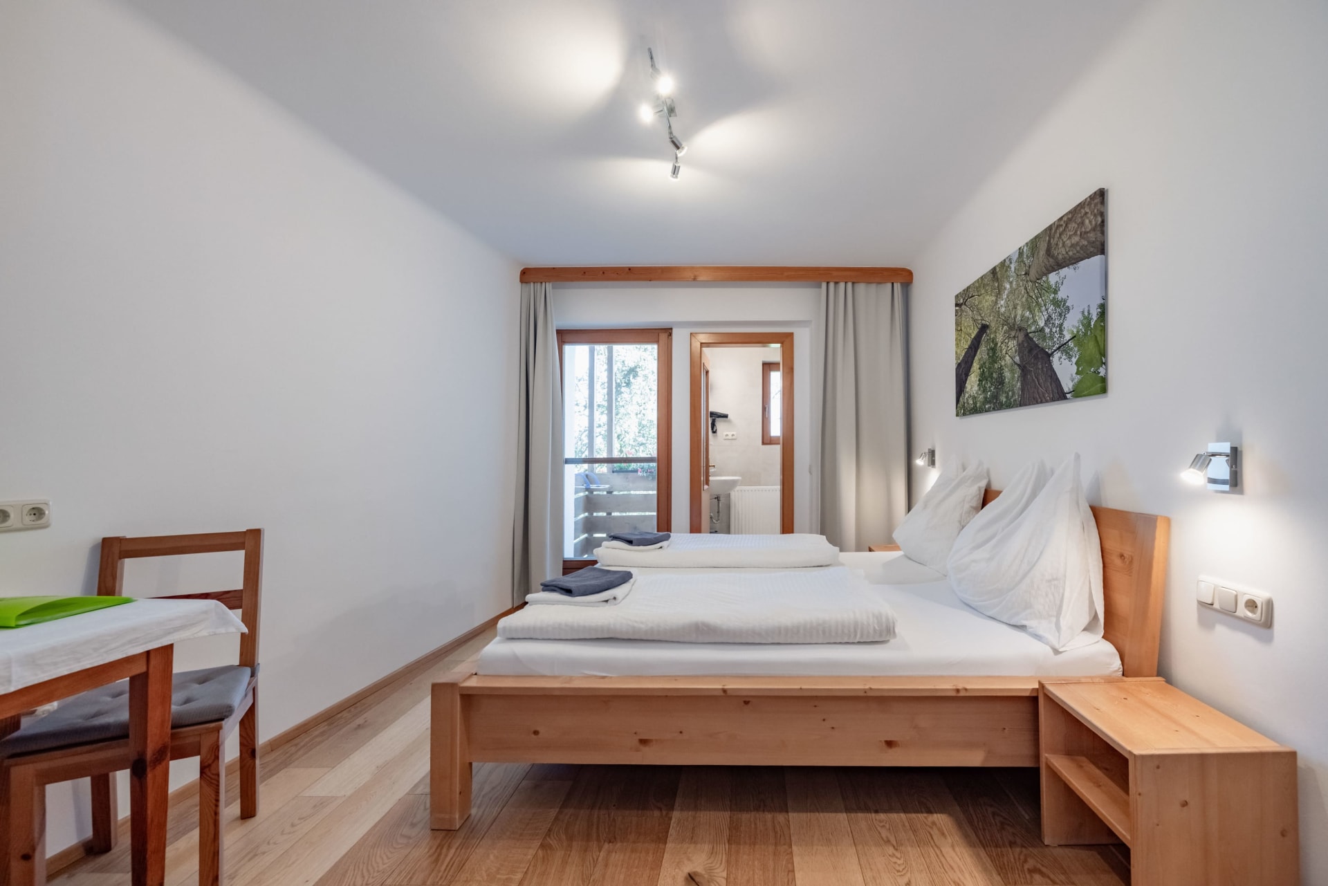Gemütlich eingerichtetes Familienzimmer bestehend aus 2 Schlafräumen, DU/WC und Balkon nach Osten ausgerichtet.