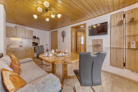 Unsere Monteurwohnung hat neben einer gemütlichen Wohnküche mit Küchenzeile, Cerankochfeld und Minibackofen eine wohnliche Sitzgruppe und Sat- Tv, sowie einen Balkon, das Schlafzimmer ist ausgestattet mit Doppelbett und Schrank