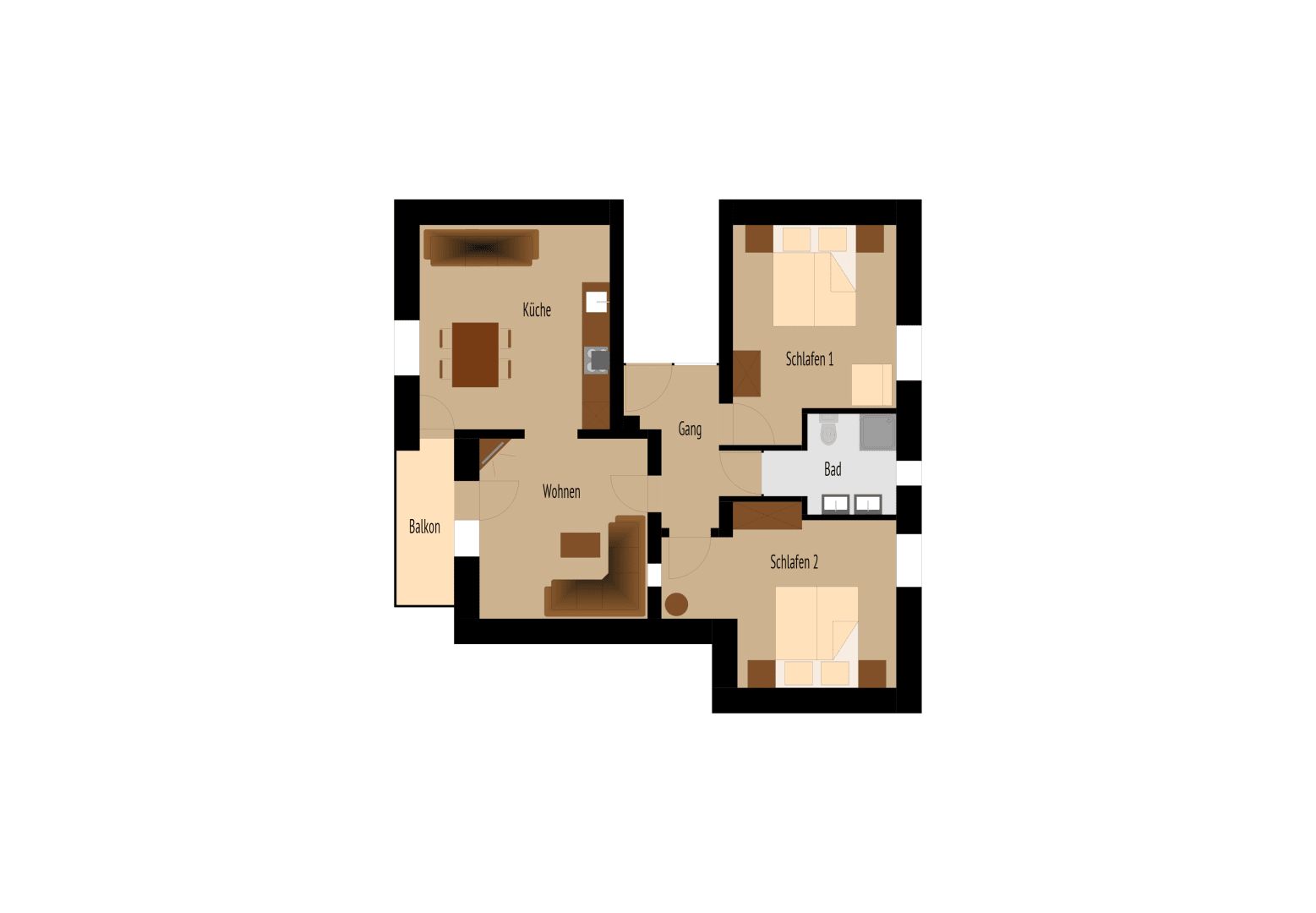 Das Appartement Himmelschlüssel befindet sich im Obergeschoß des Haus Hermann und bietet Ihnen das komplette Stockwerk als Wohnfläche: