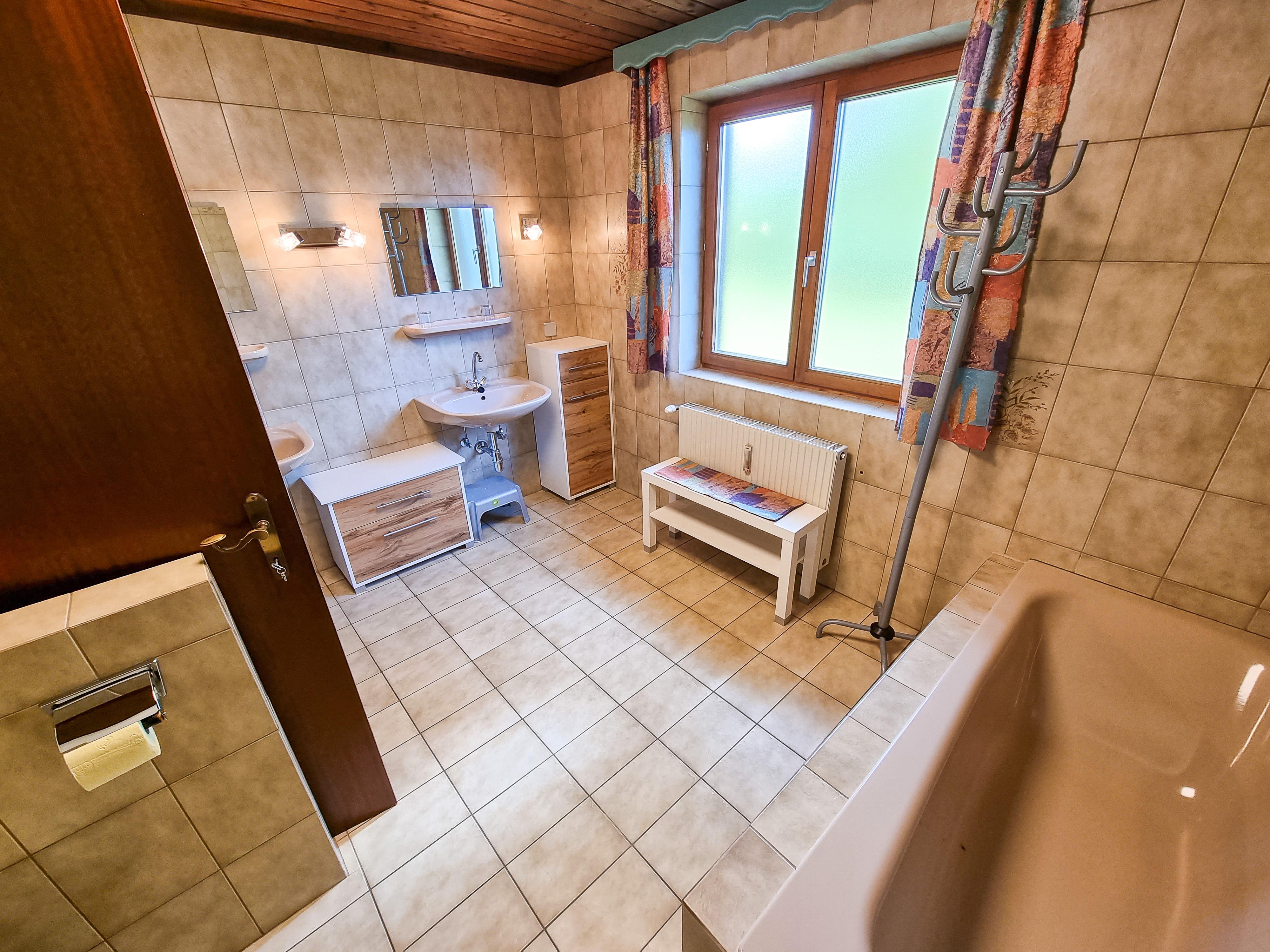 Willkommen im Apartment TOP 1, Deinem perfekten Rückzugsort für einen erholsamen Aufenthalt für bis zu 5 Personen. Das 78m² Apartment befindet sich im Erdgeschoss und bietet ein gemütliches Wohnzimmer mit Satelliten-TV sowie eine voll ausgestattete Küche. Das Badezimmer verfügt über Dusche, Badewanne und WC. Genieße den Komfort einer eigenen Unterkunft und entspanne in ruhiger Umgebung. Vom Wohnzimmer aus hast Du Blick auf Wiese und die Berge.